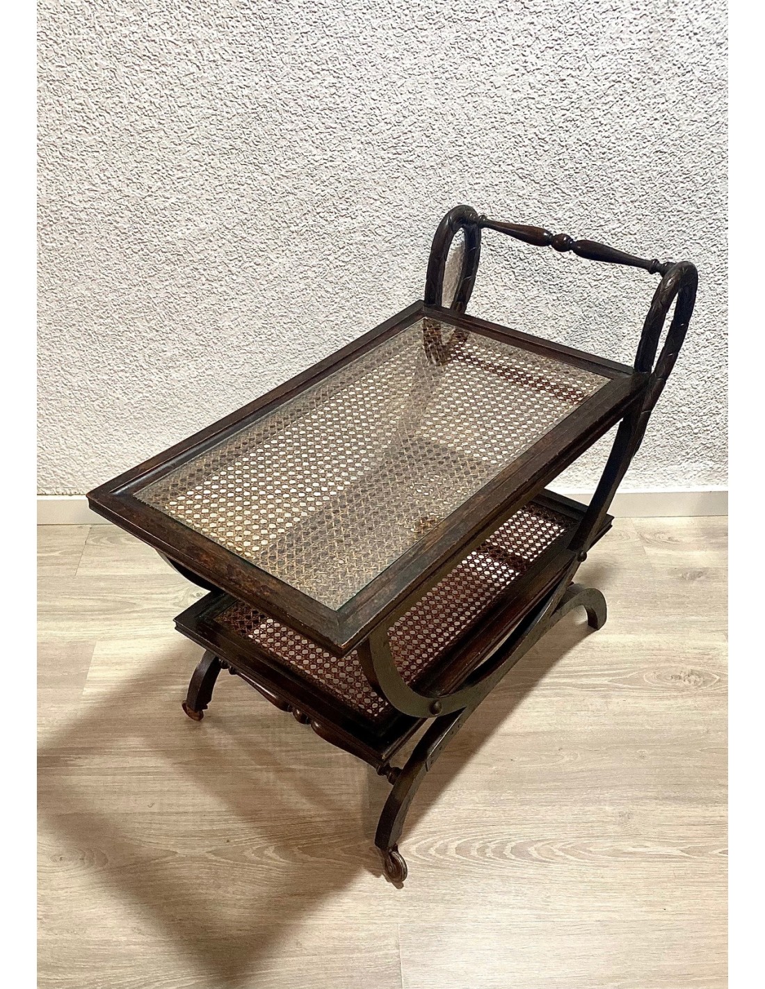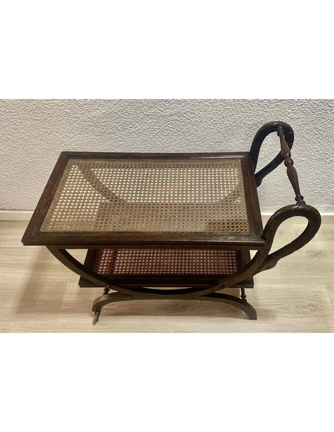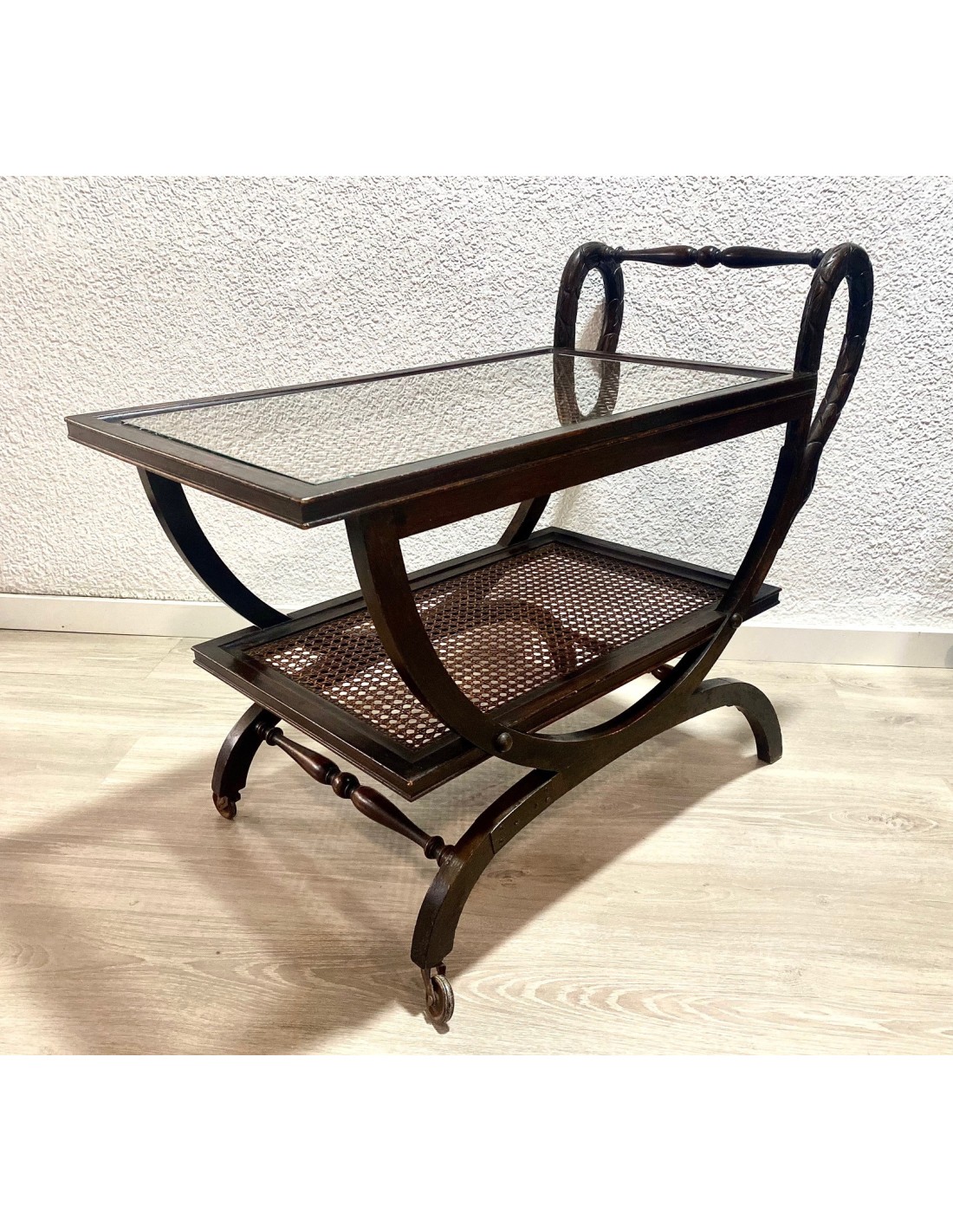 Wood drinks trolley or bar cart, early 20th Century.