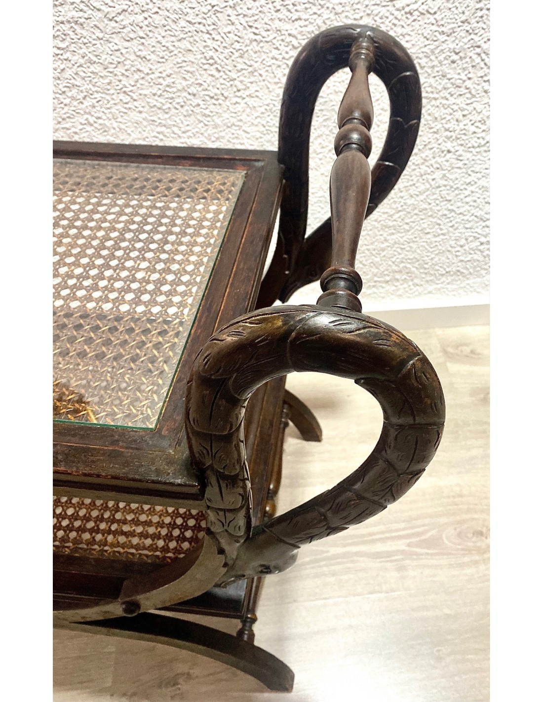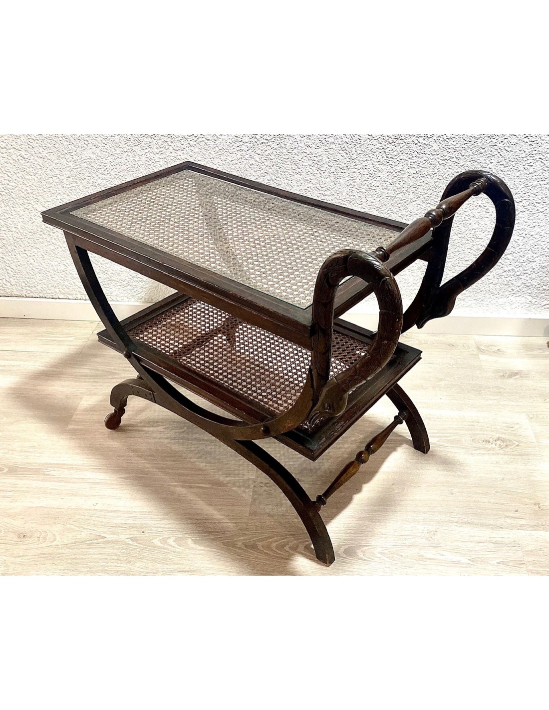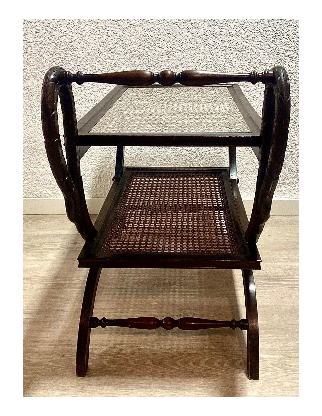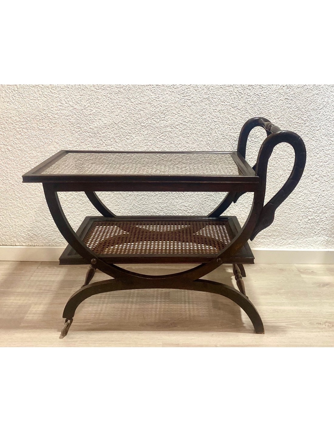 Wood drinks trolley or bar cart, early 20th Century.