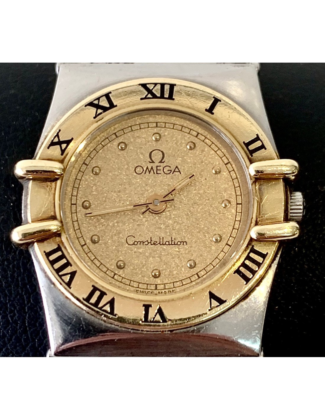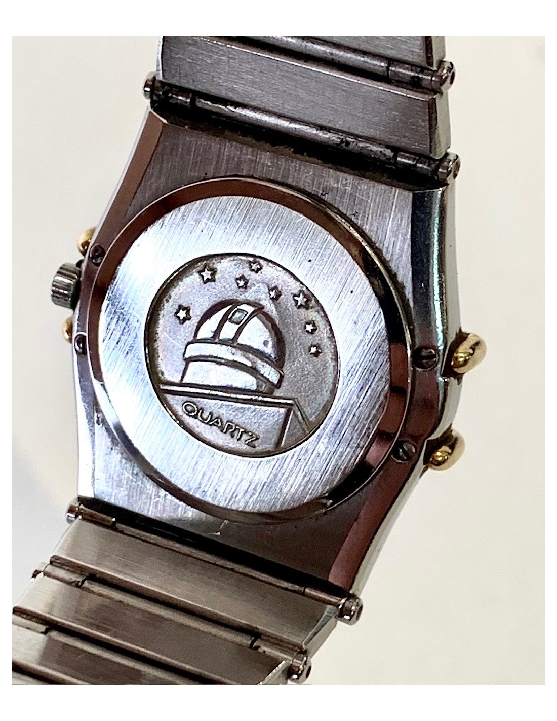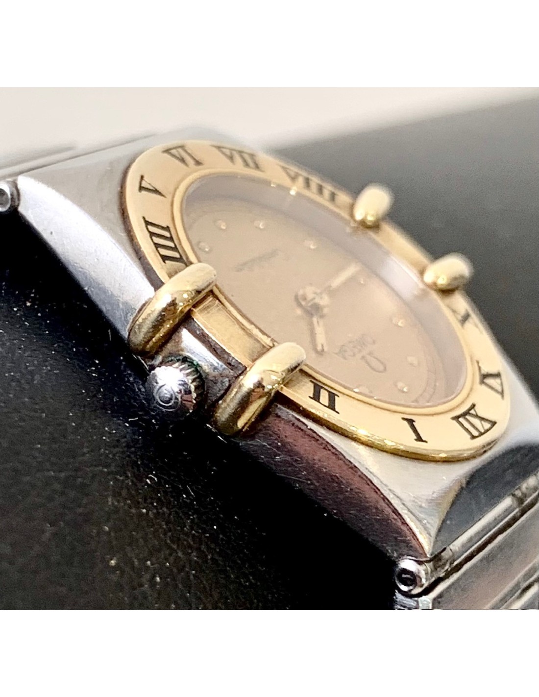 Omega Constellation women's watch, Swiss-made quartz movement, produced in 1990/95, steel case marked with the Omega logo and 18-karat gold, steel bracelet marked with the reference and serial number, scratch-resistant sapphire crystal, crown with the original Omega logo, and Omega logo on the inner workings. In perfect working order, very good condition.
