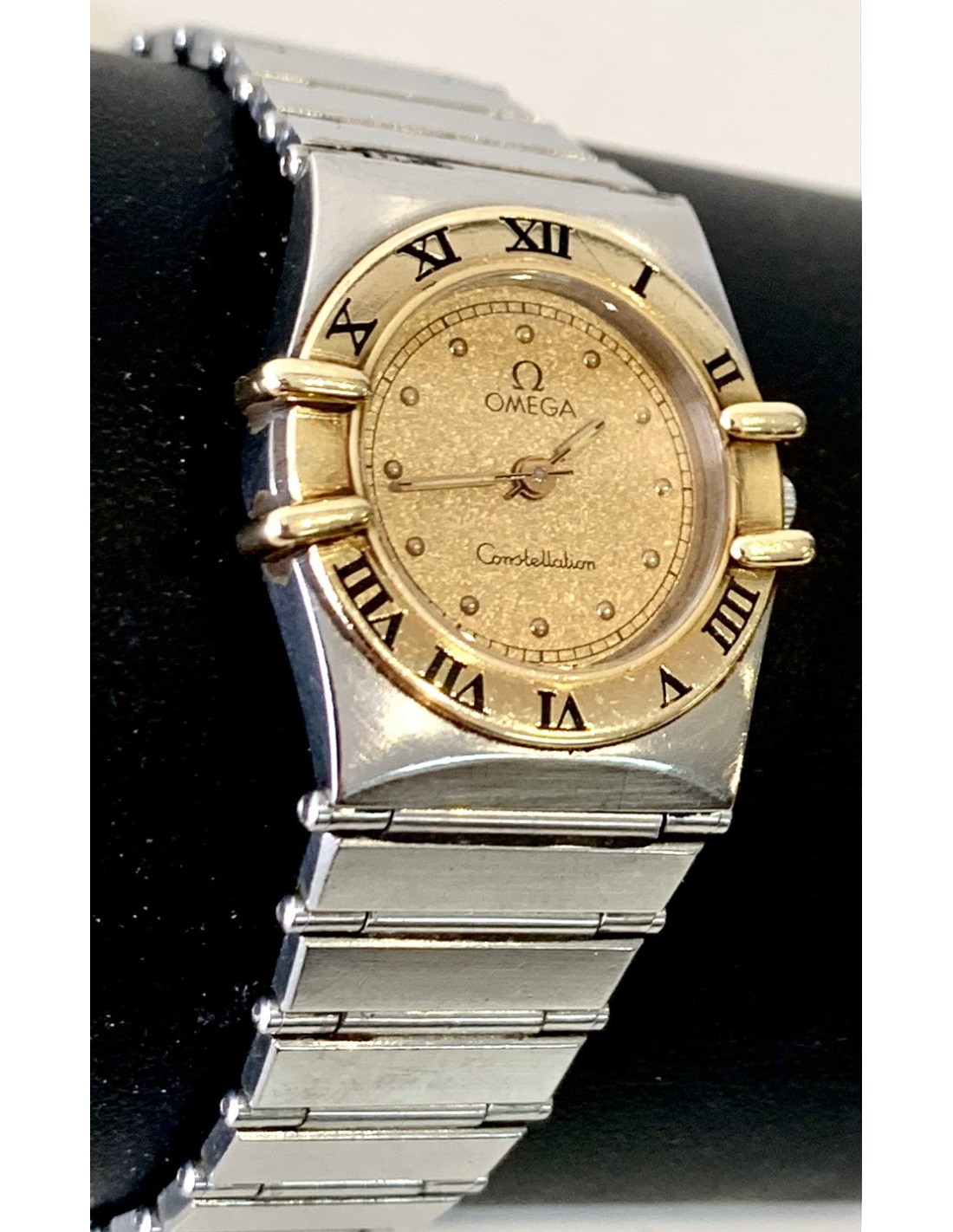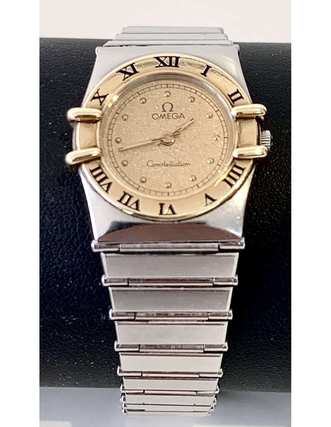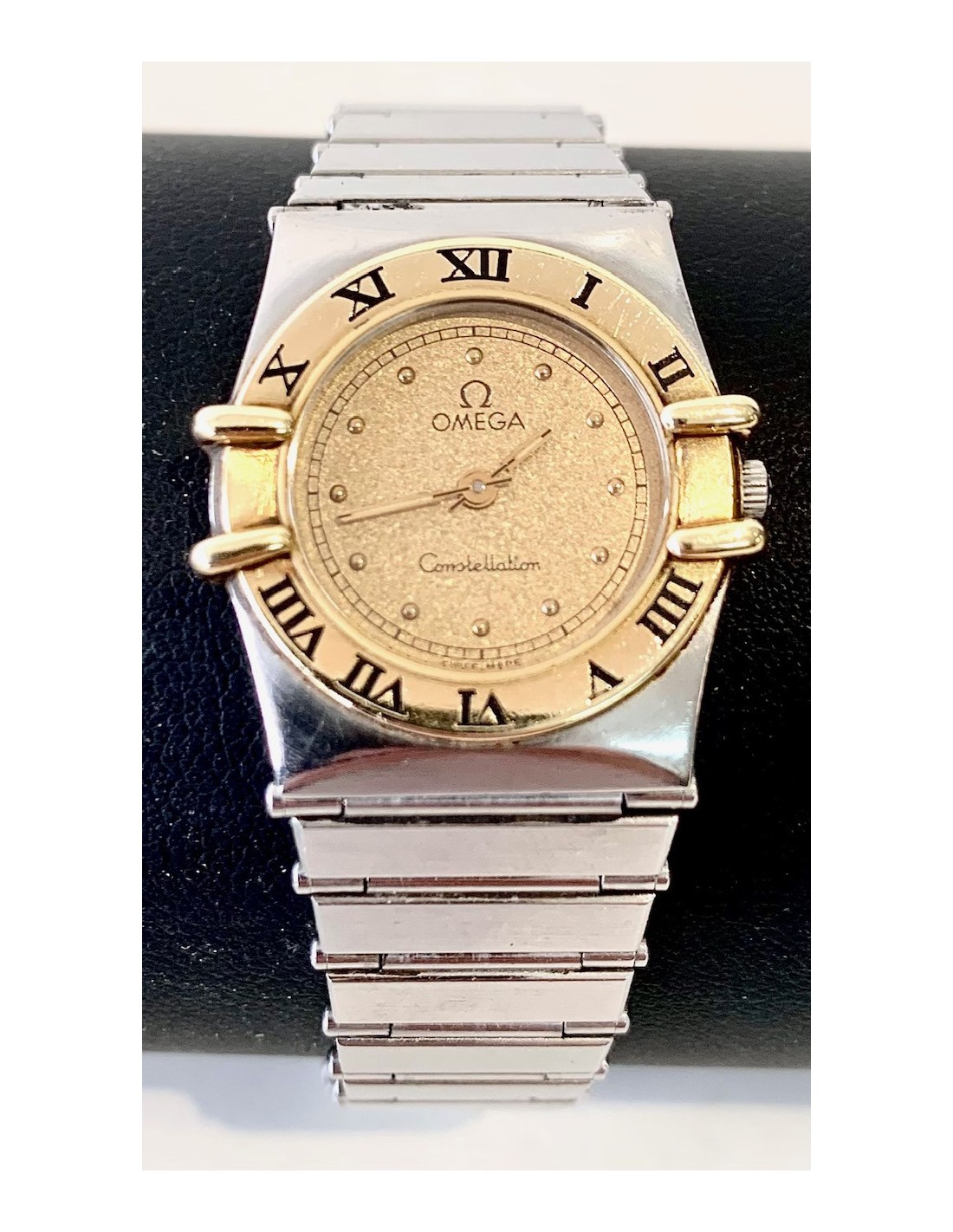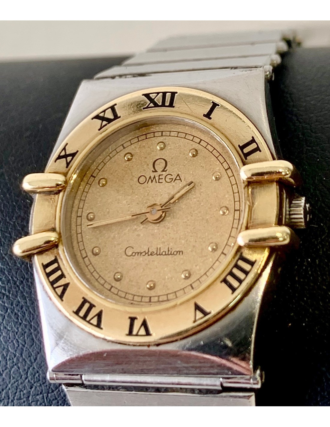 Omega Constellation women's watch, Swiss-made quartz movement, produced in 1990/95, steel case marked with the Omega logo and 18-karat gold, steel bracelet marked with the reference and serial number, scratch-resistant sapphire crystal, crown with the original Omega logo, and Omega logo on the inner workings. In perfect working order, very good condition.