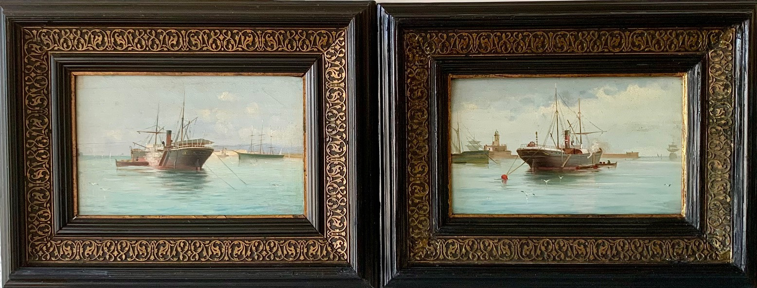 Pareja de marinas, “Vistas de puerto”, siglo XIX.