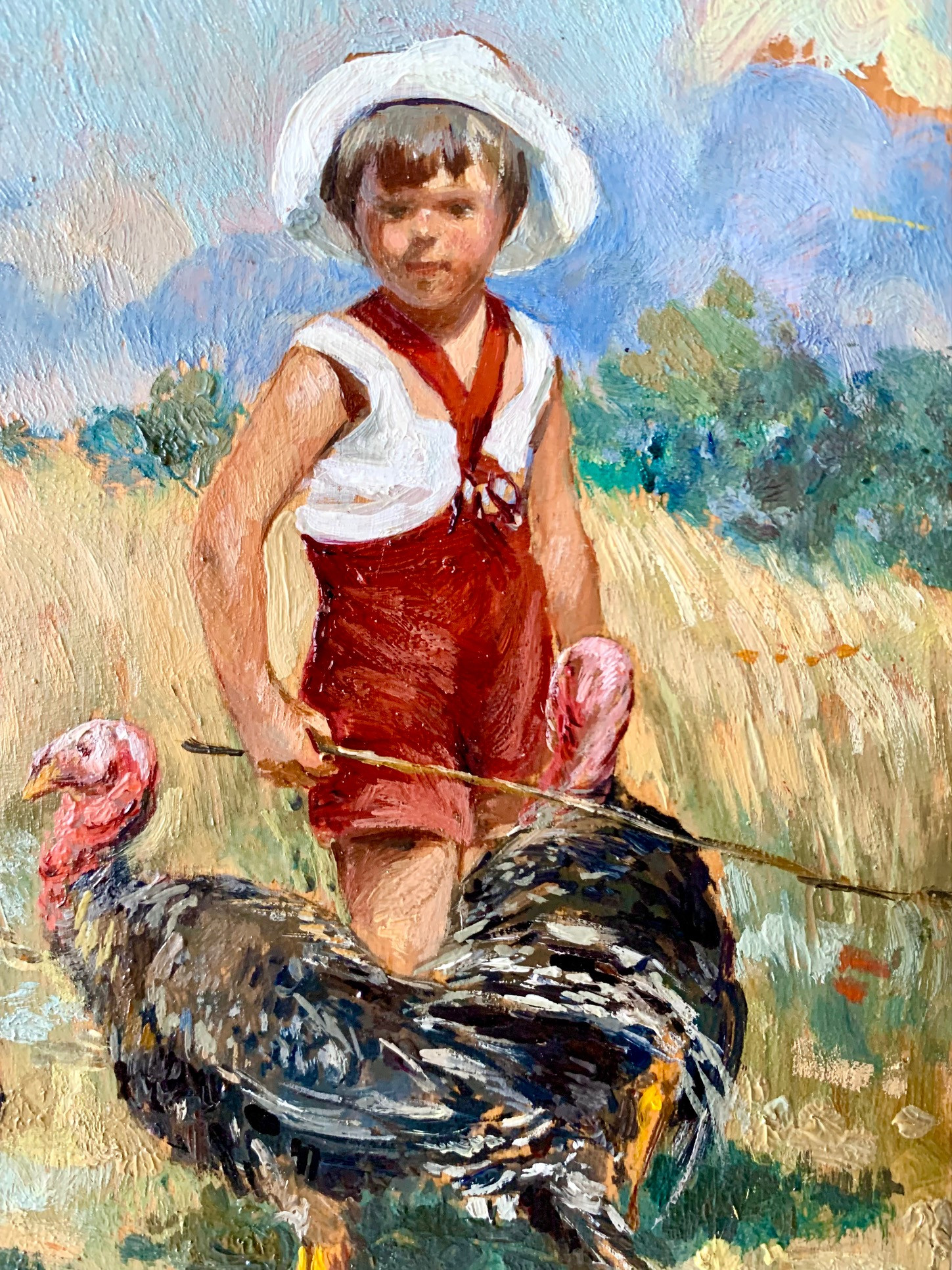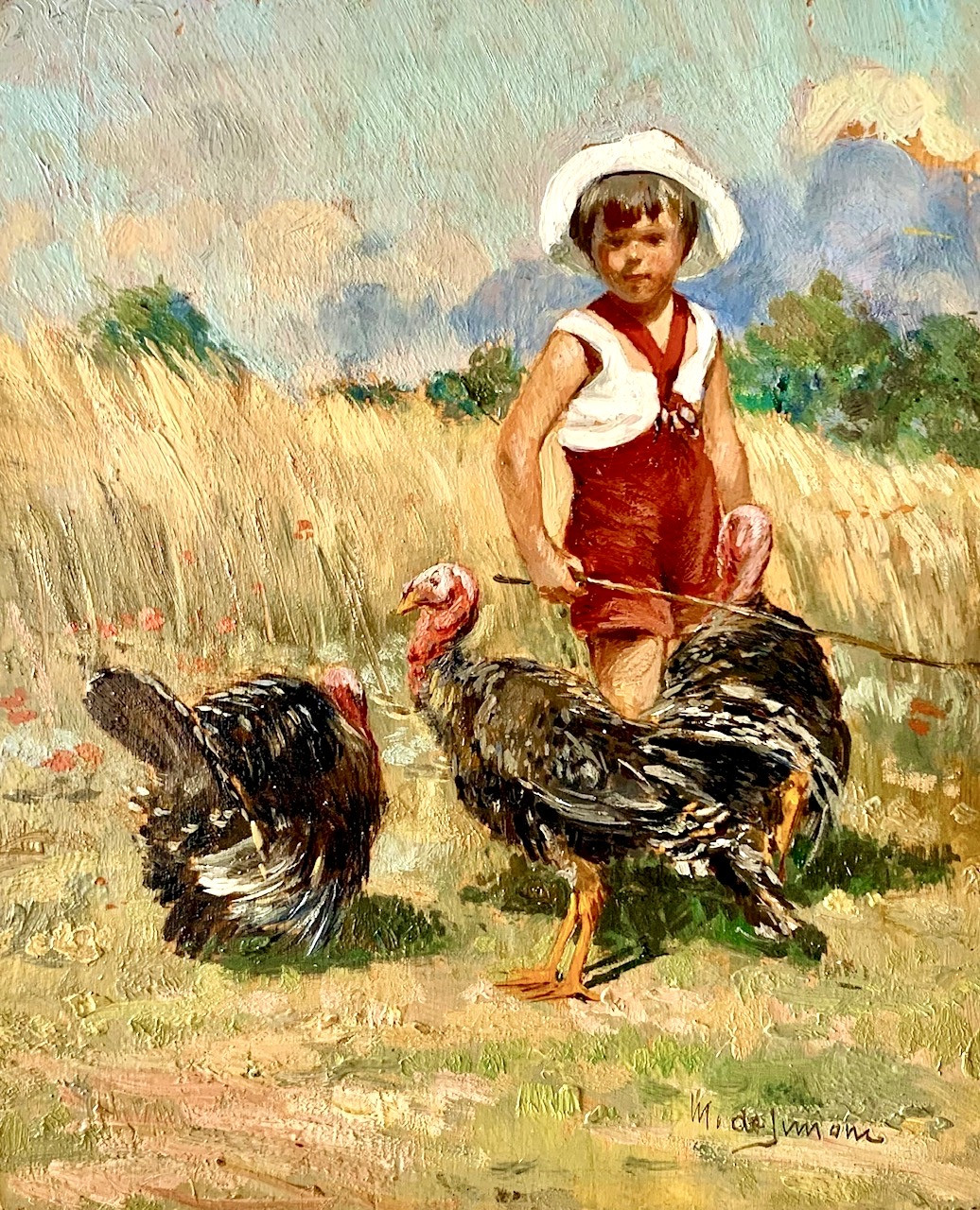 Michele De Simone ( Barletta 1893 - Milano 1955), "Niño con pavos"