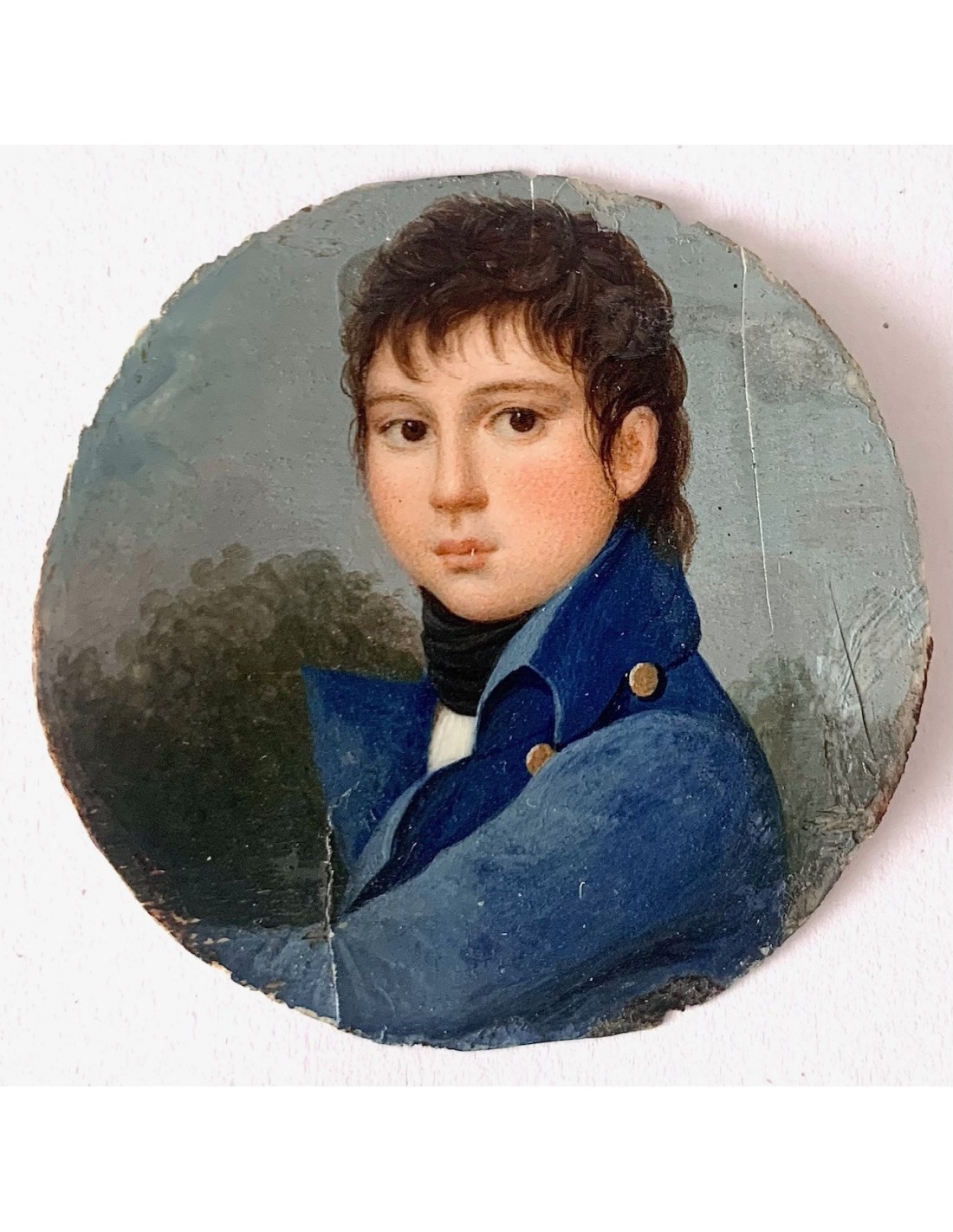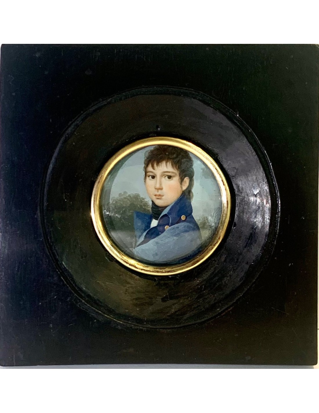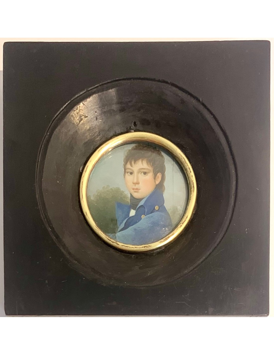 Retrato de joven caballero. Miniatura al gouache. Francia, primer tercio Siglo XIX.