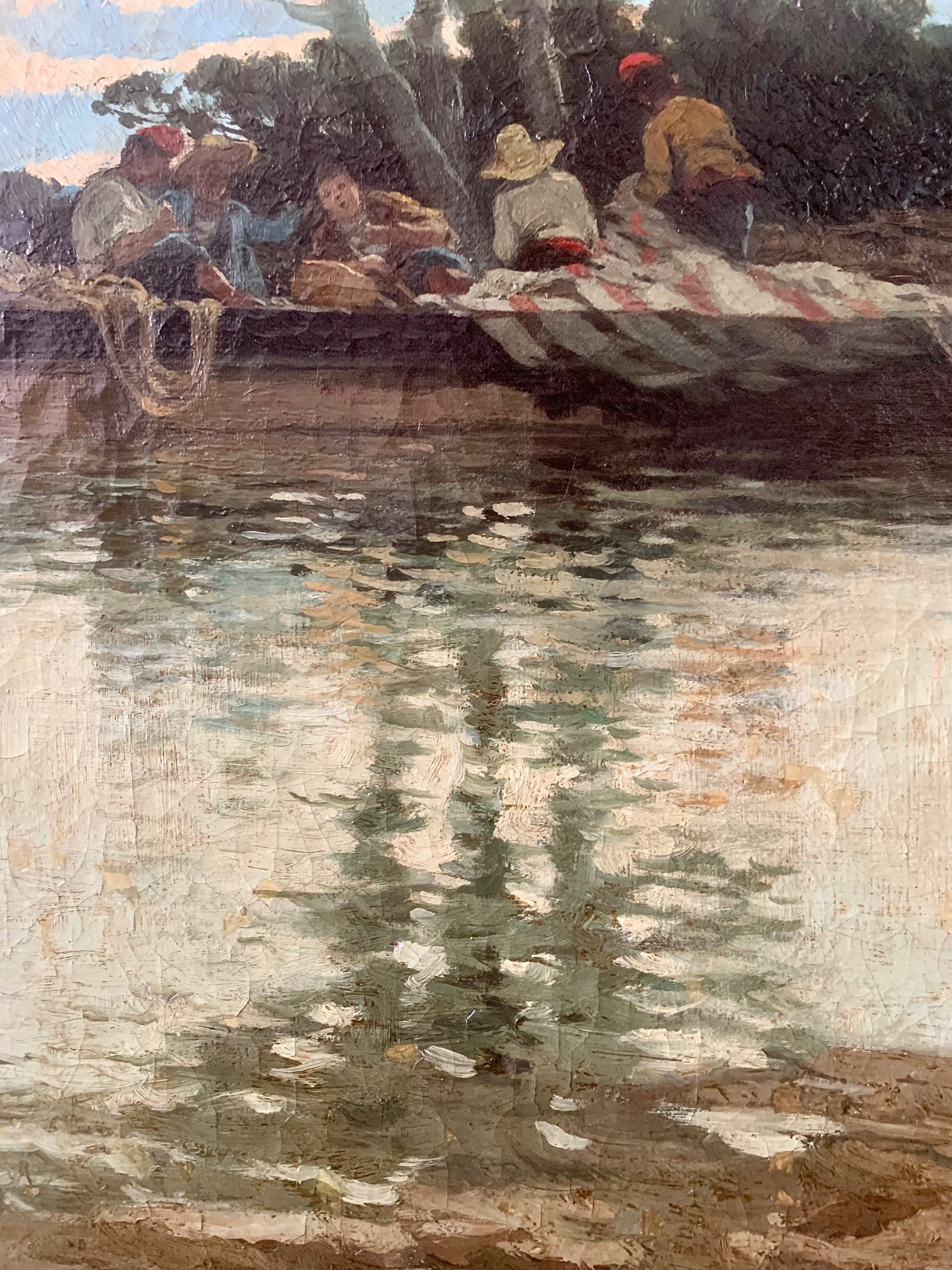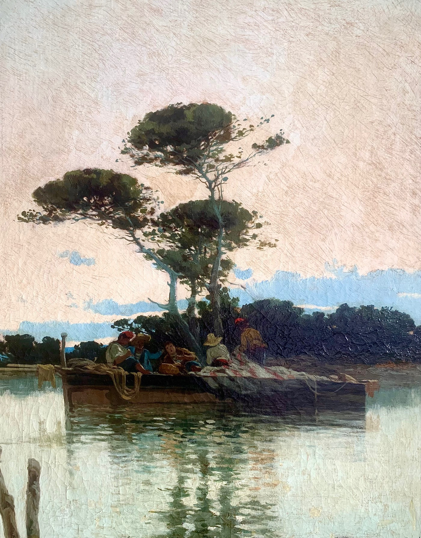 Pescadores en la Albufera. Enrique Saborit (Valencia 1869-1928). Firmado y fechado 1899. Óleo sobre lienzo.