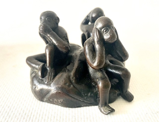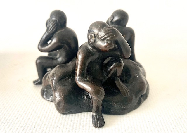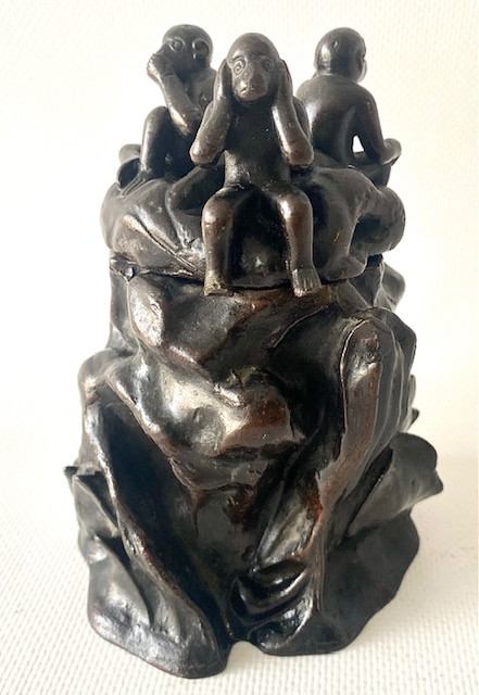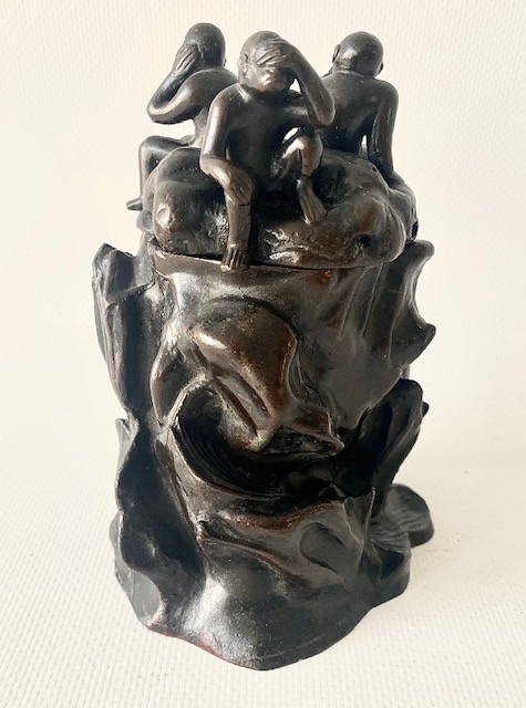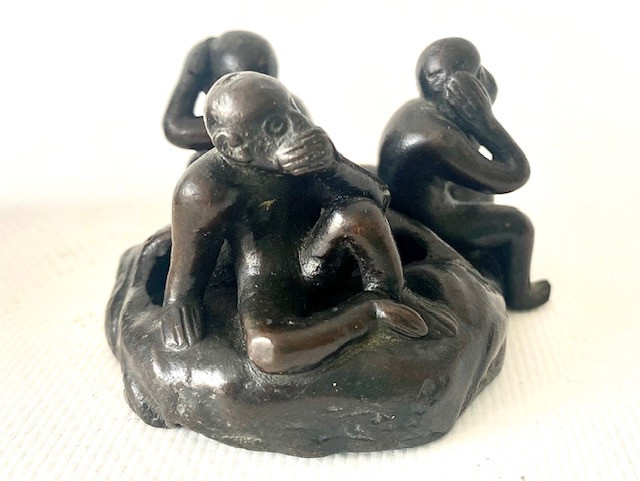 Incensario bronce. Los tres monos sabios. Japón Meiji Finales Siglo XIX.