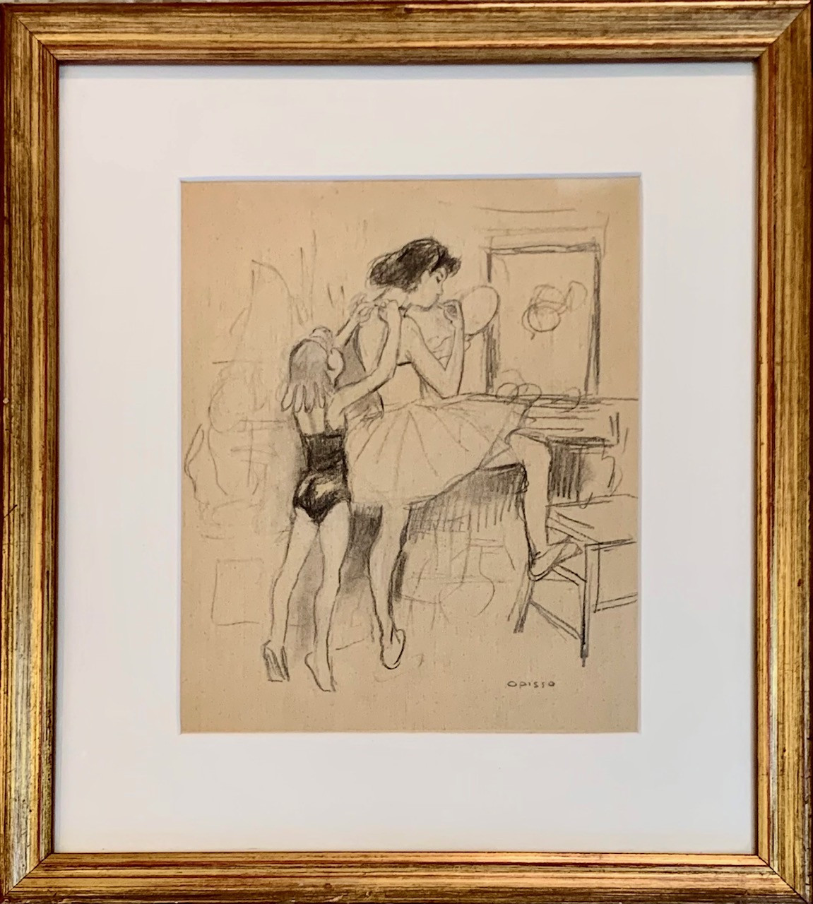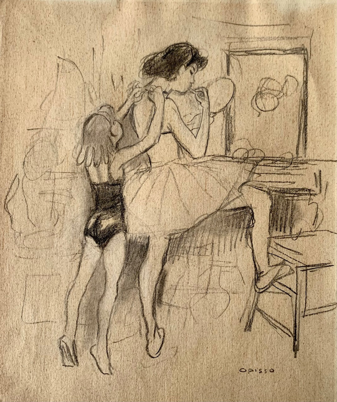 “Bailarinas” Ricard Opisso (Tarragona 1880 - Barcelona 1966), dibujo al carboncillo sobre papel, periodo parisino primera decada del siglo XX.