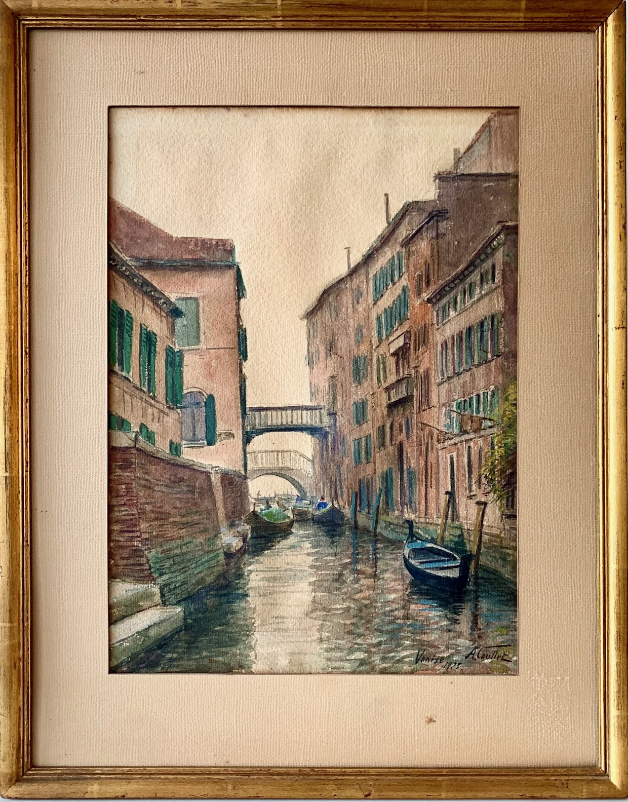 “Canal de Venecia” acuarela, Albert Caullet (1875-1950).