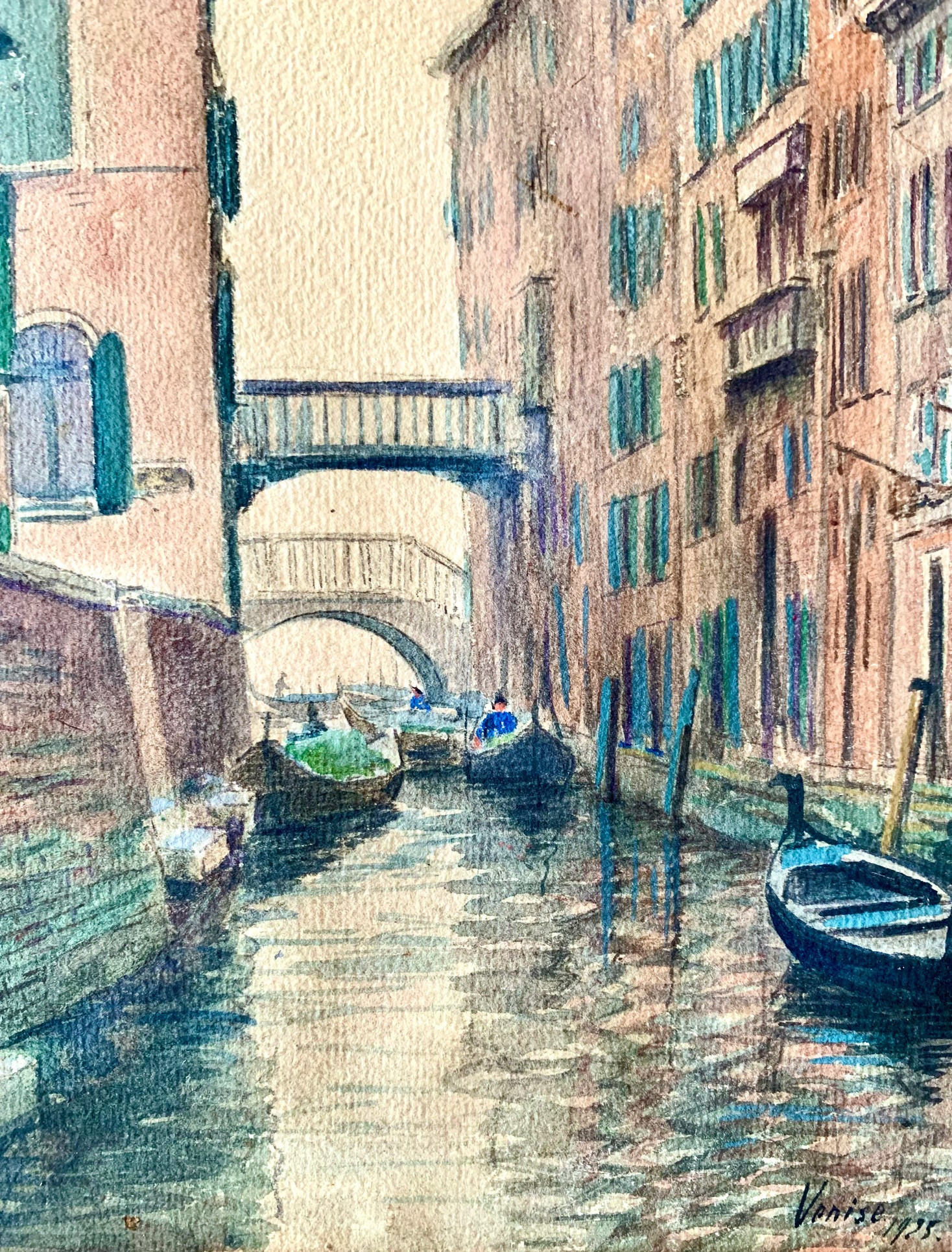 Albert Caullet (Belgica, 1875-1950), “Canal de Venecia”, acuarela sobre papel, firmada y fechada 1925 en la esquina inferior derecha.