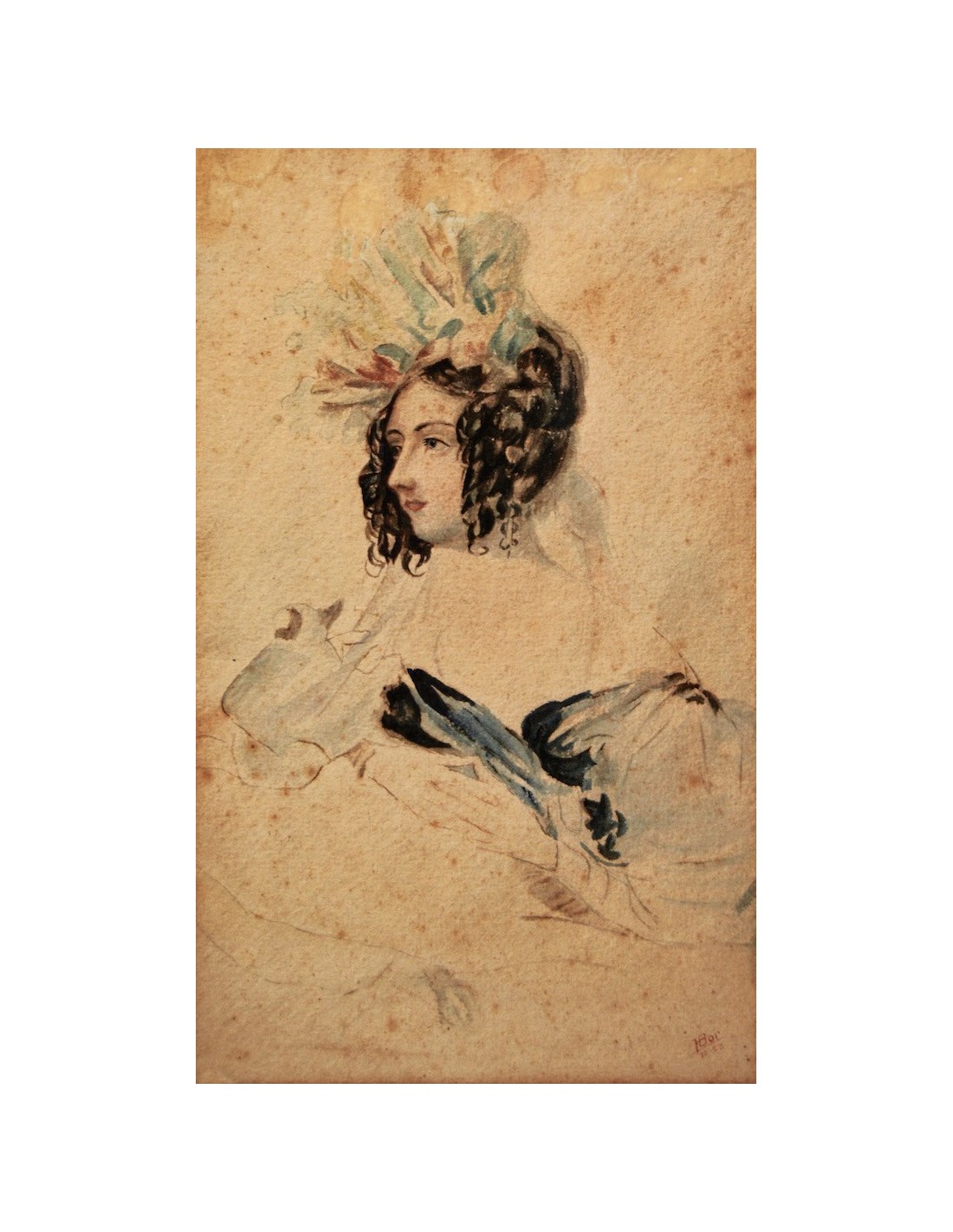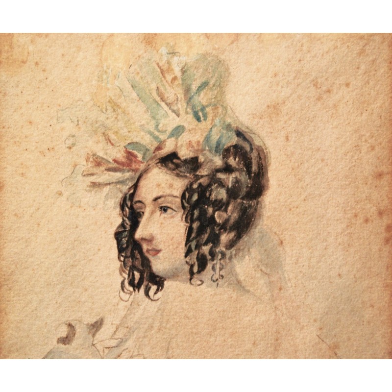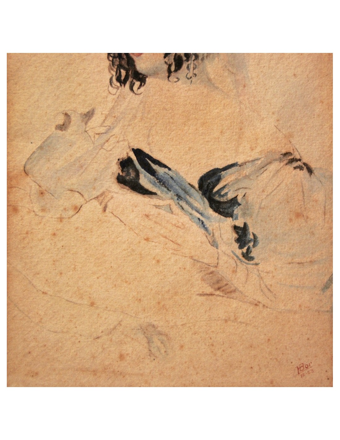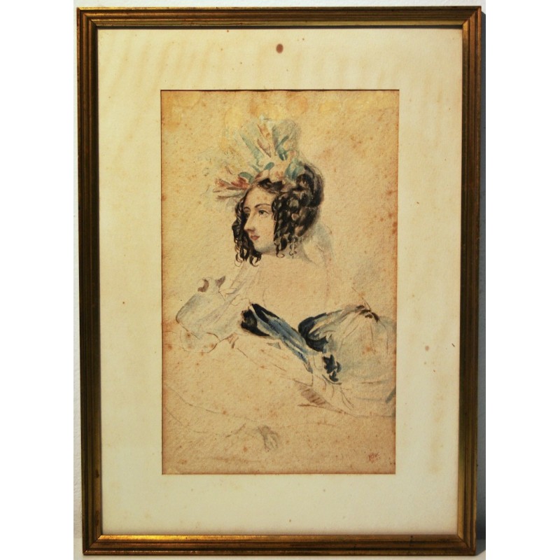 Retrato de dama, acuarela de principios del siglo XX, firmada y fechada J. Bor 12 - 23 (diciembre del 1923), en general en buen estado de conservación.