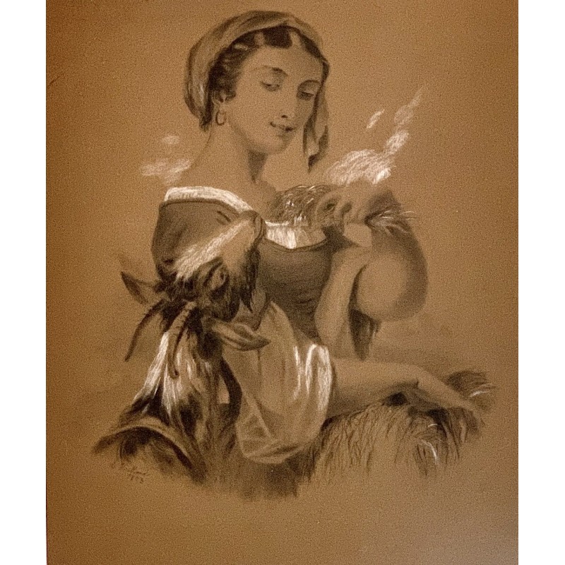 “Pastora”, dibujo al carboncillo del siglo XIX
