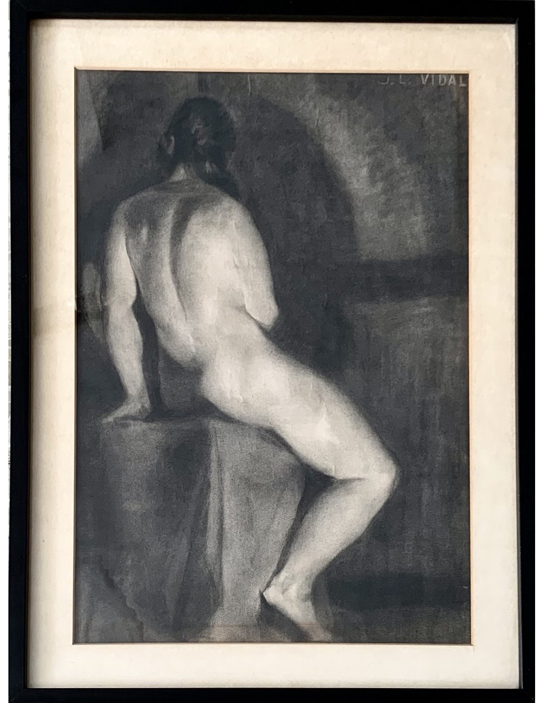 “Desnudo de mujer” dibujo al carboncillo, mediados del siglo XX