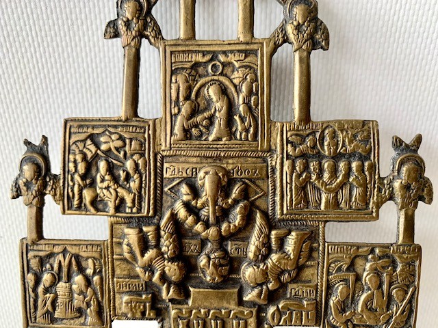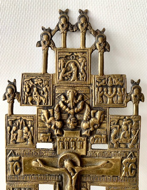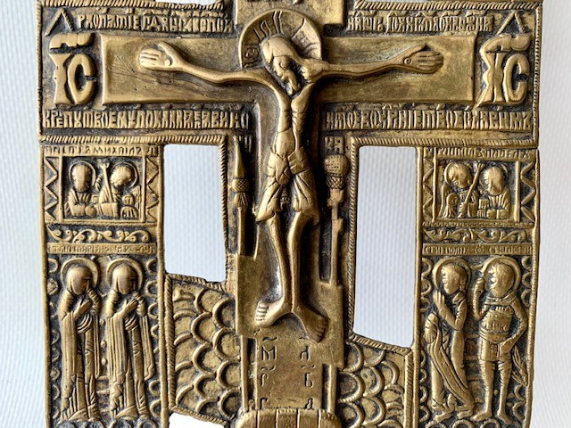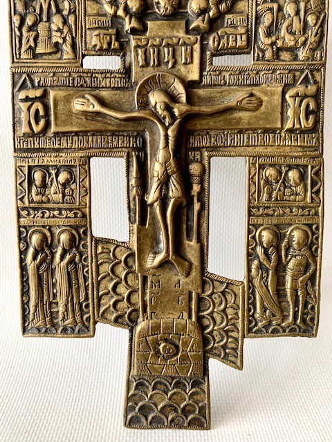 Crucifijo ortodoxo en bronce, Rusia, siglo XIX