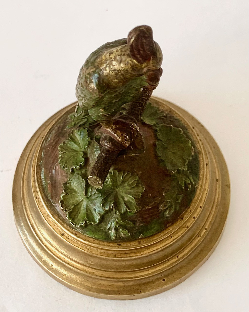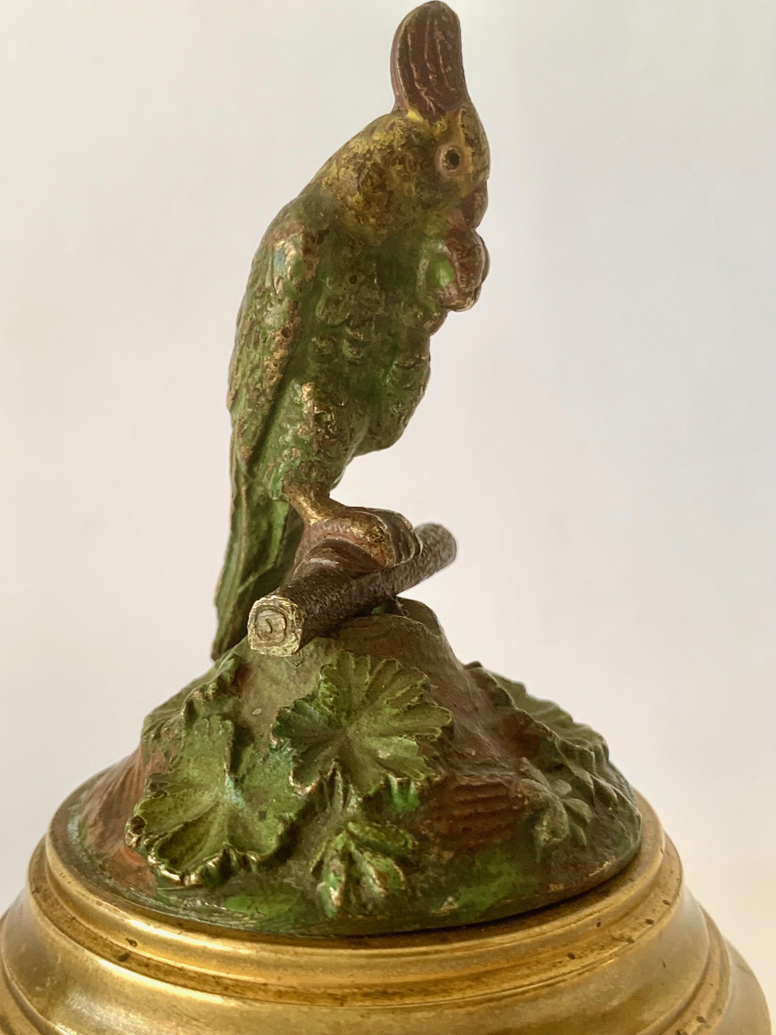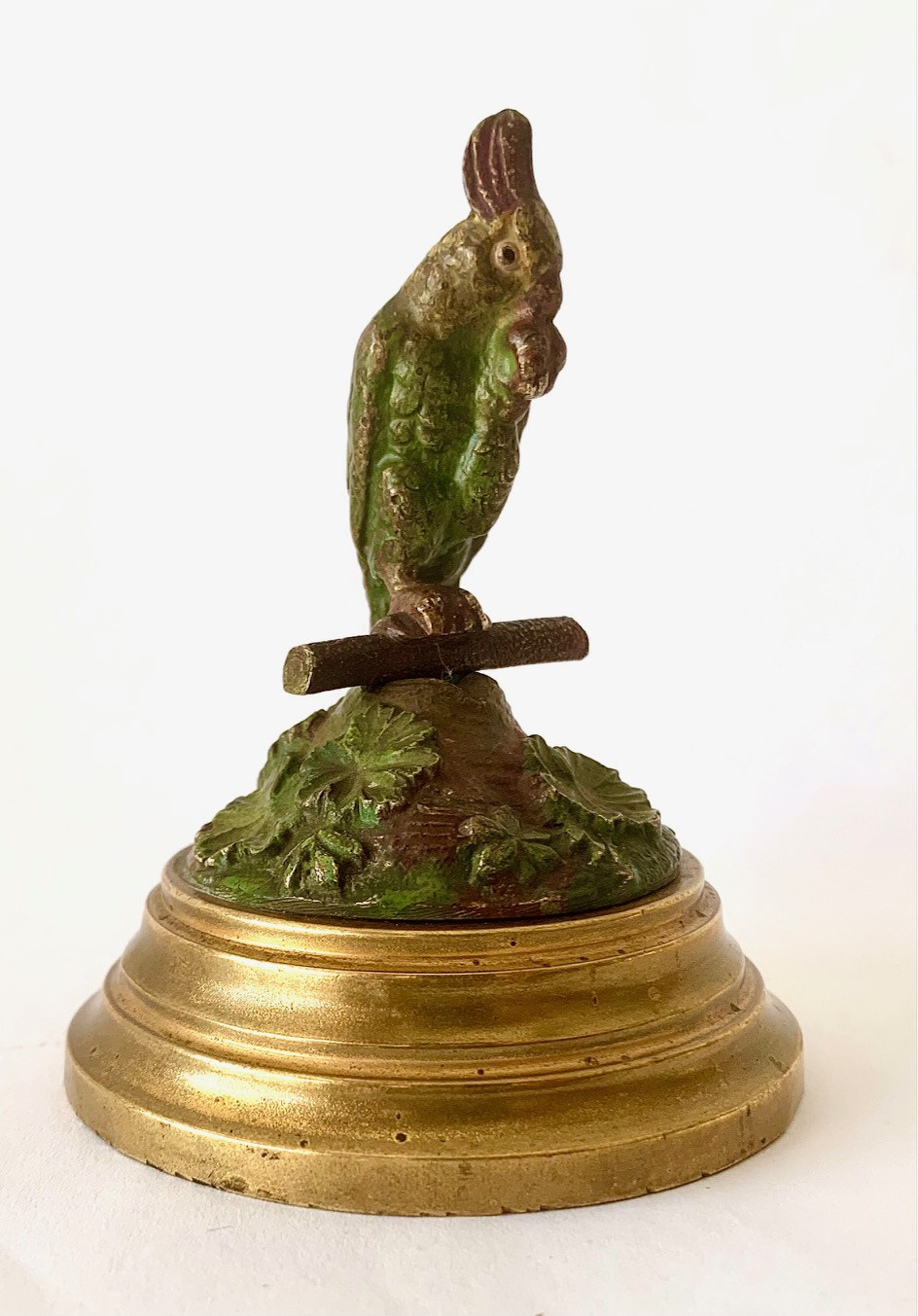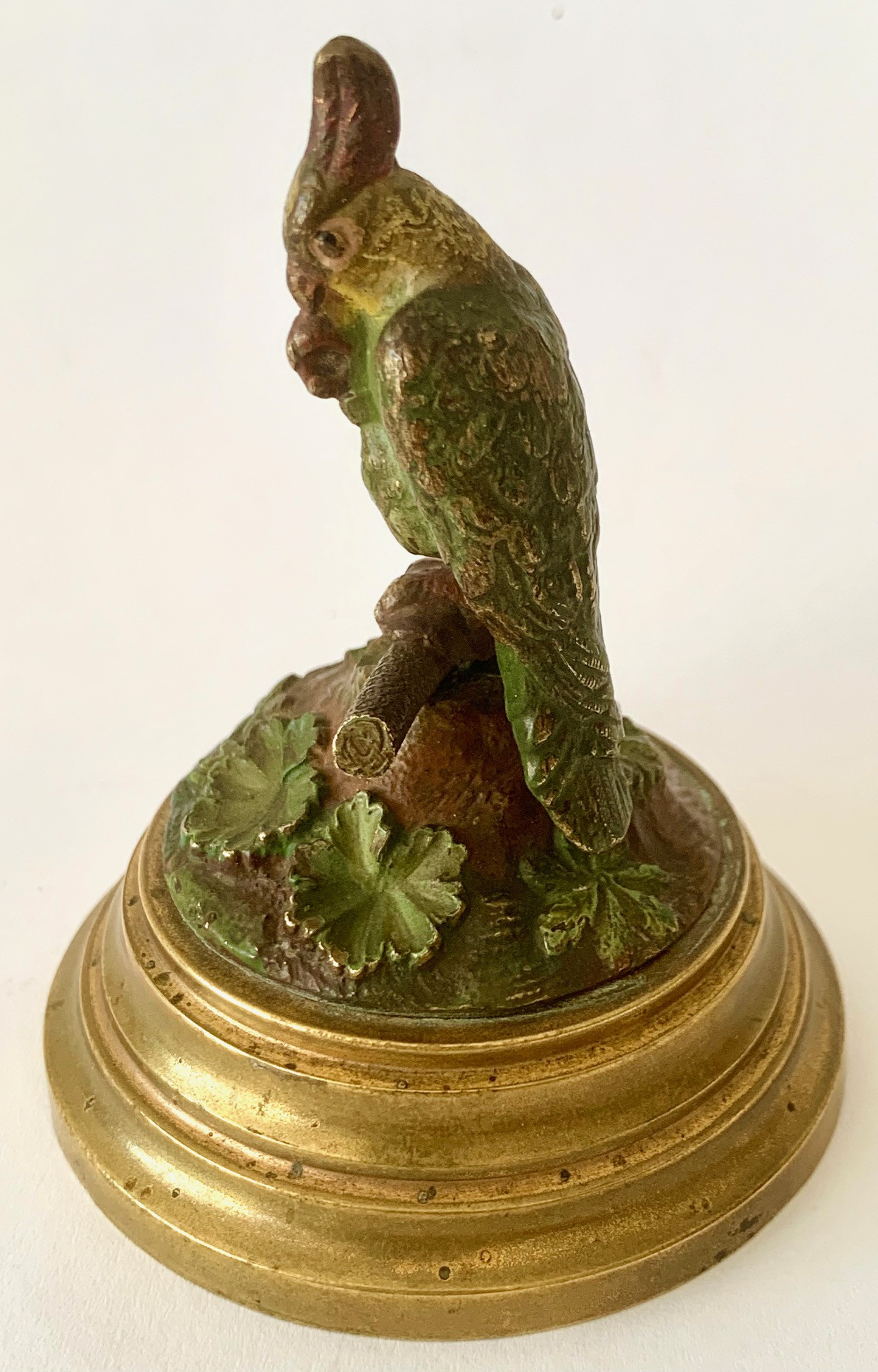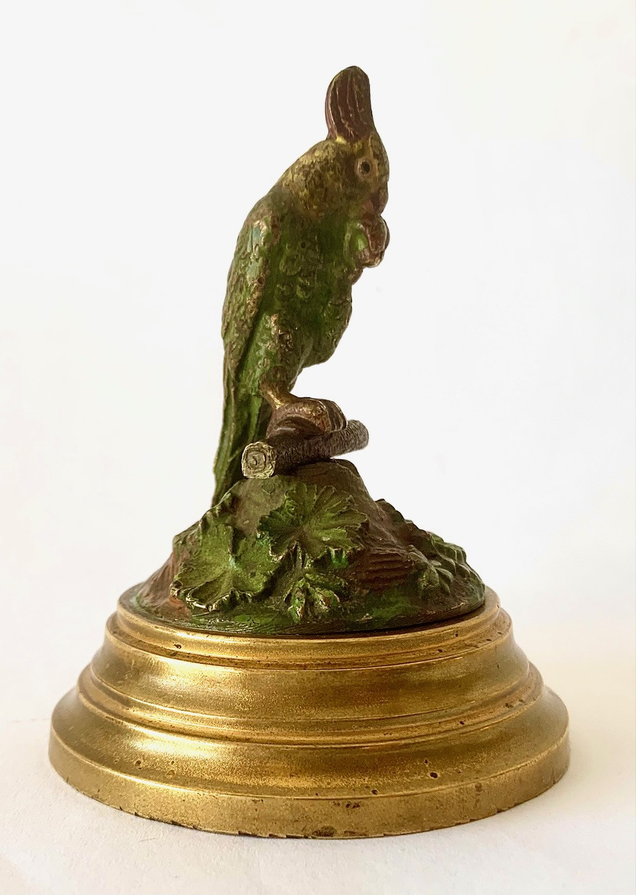 Bronce de Viena, “Loro” finales del siglo XIX principios del XX. Bronce pintado en frio, con base circular escalonada. Buen estado de conservación.