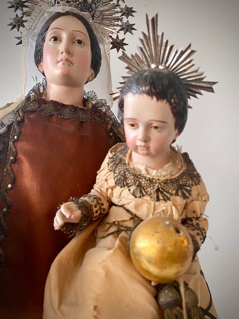 Virgen del Carmen con el Niño. Cap i pota, talla policromada. Mitad Siglo XIX.