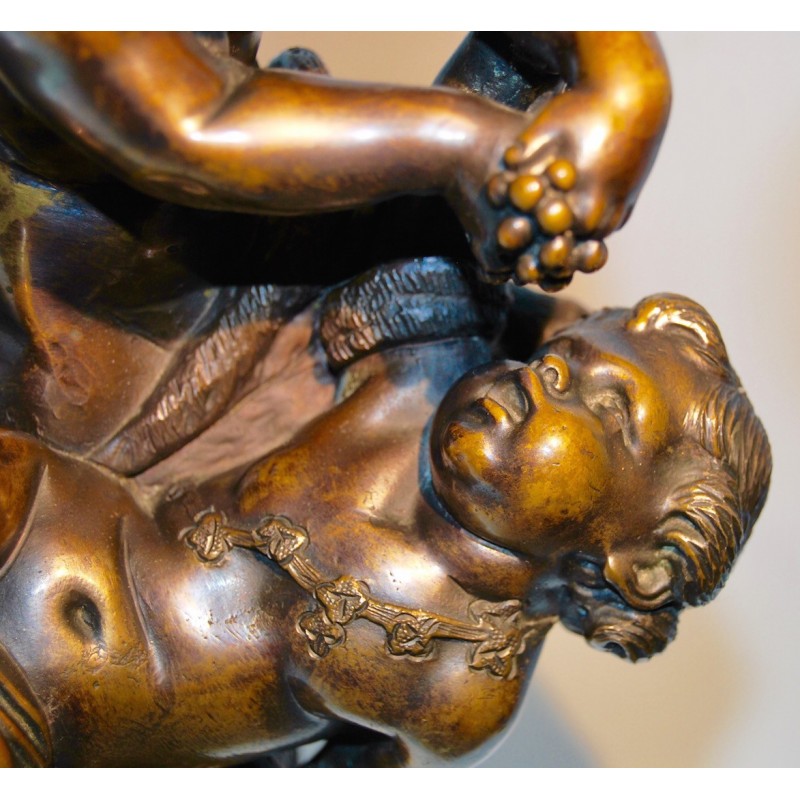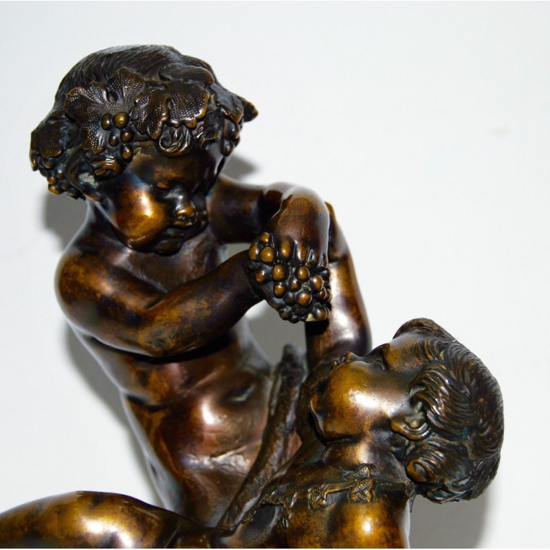 Baco con satiro, bronce del siglo XIX.