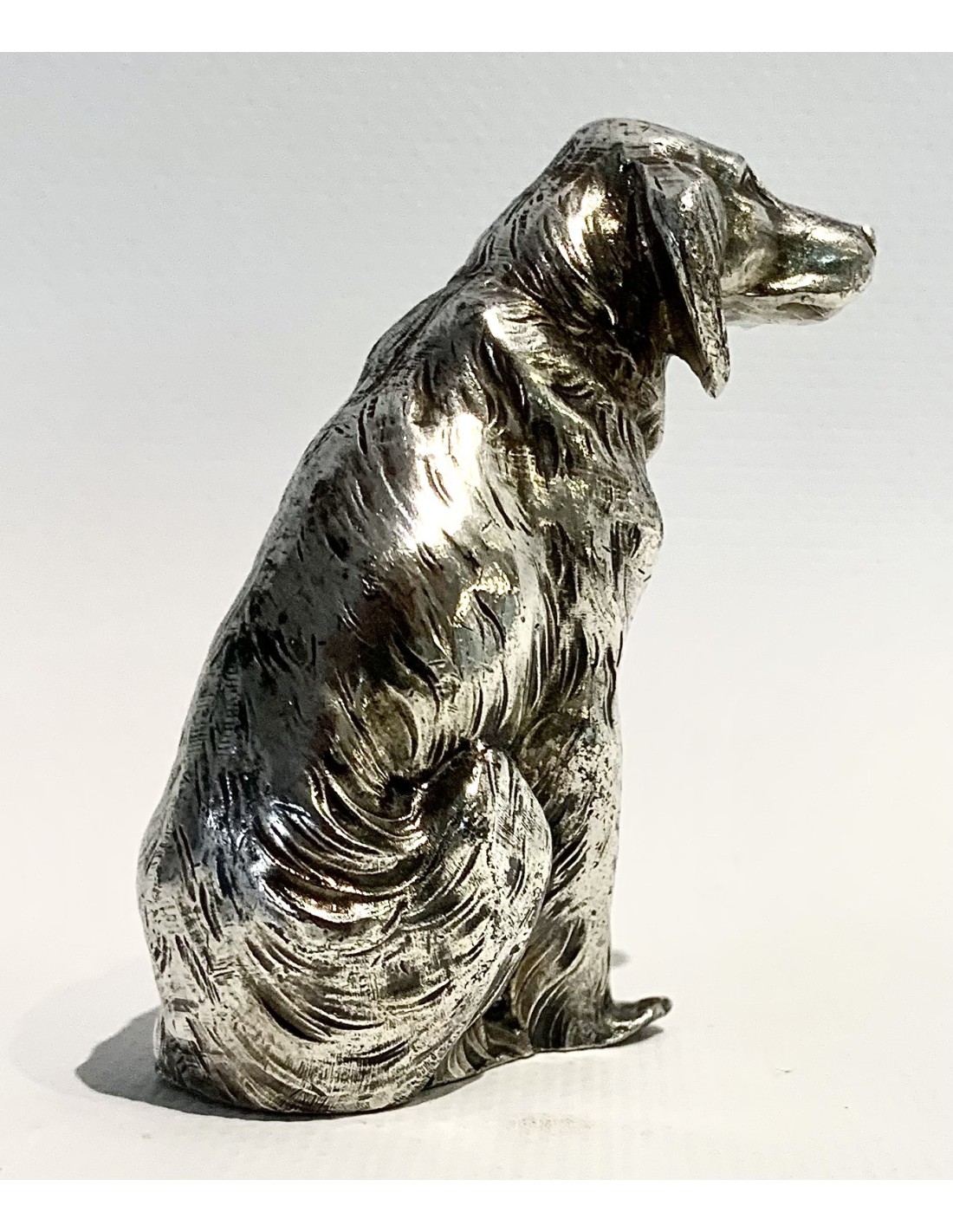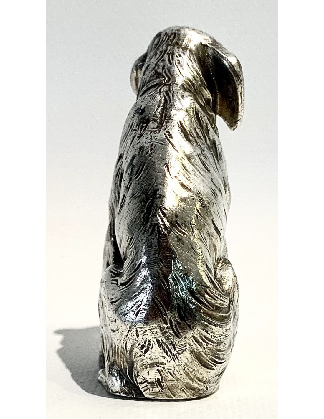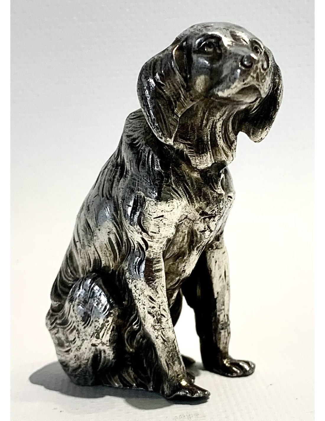 Escultura de perro, bronce plateado, 1920 circa.