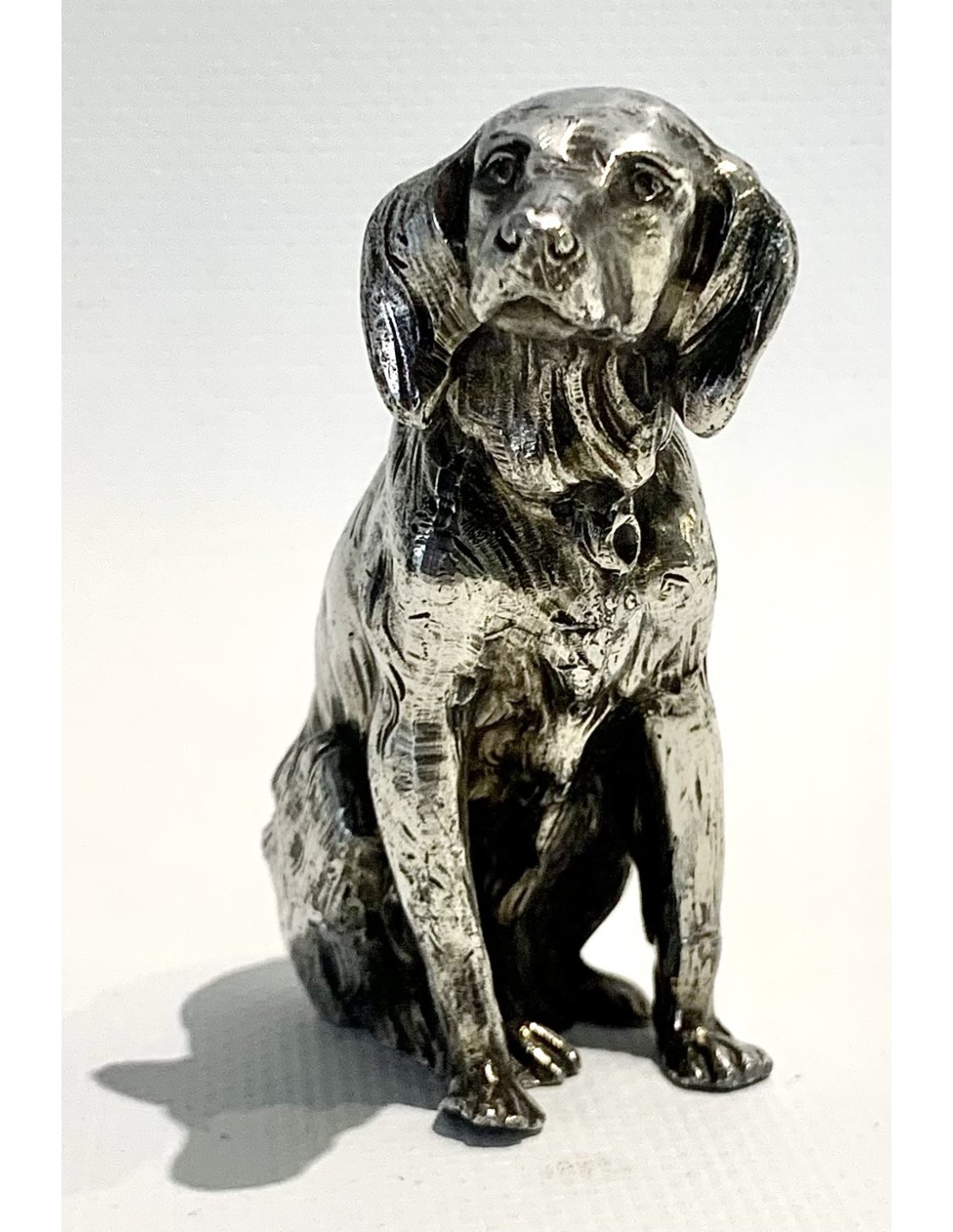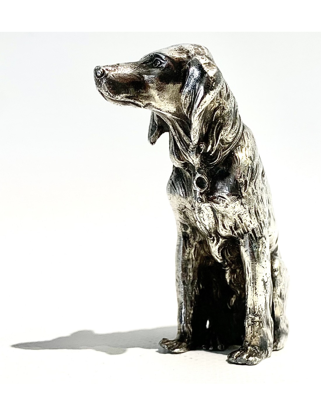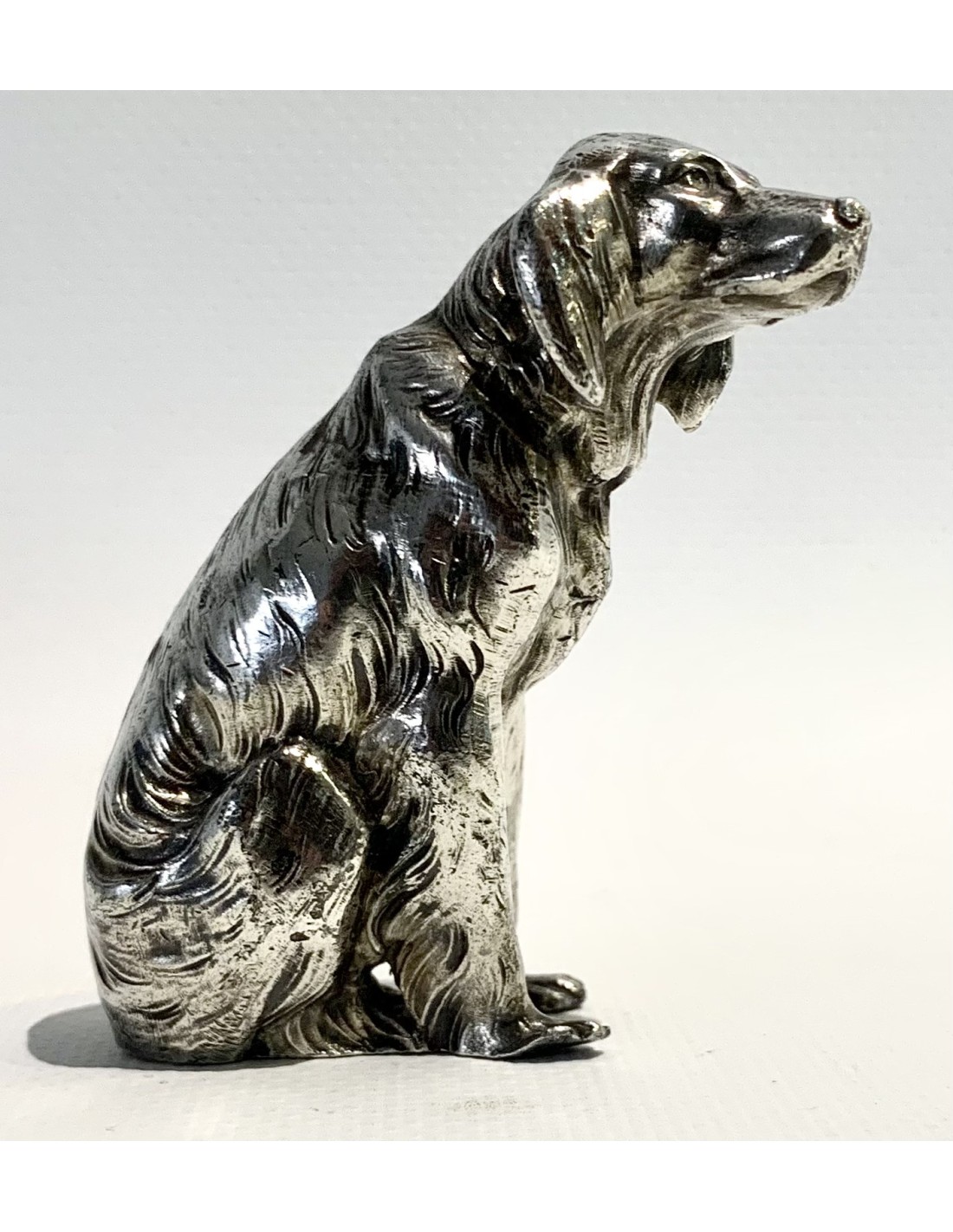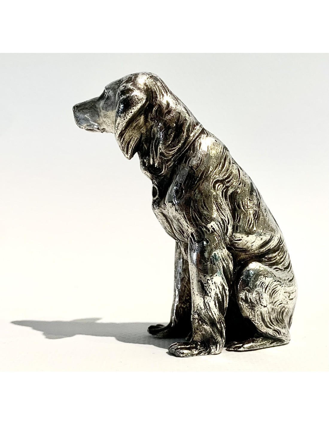 Escultura de perro, bronce plateado, 1920 circa.
