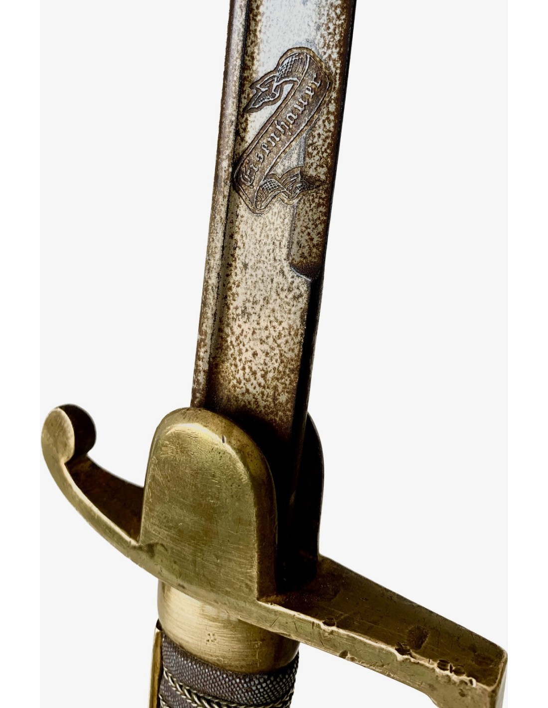 Sable Prusiano modelo 1873 para tropa de caballería , fabricado en 1886, marcado en el lomo M. Neumann Berlin, y grabado en la hoja “Eisenhauer”.