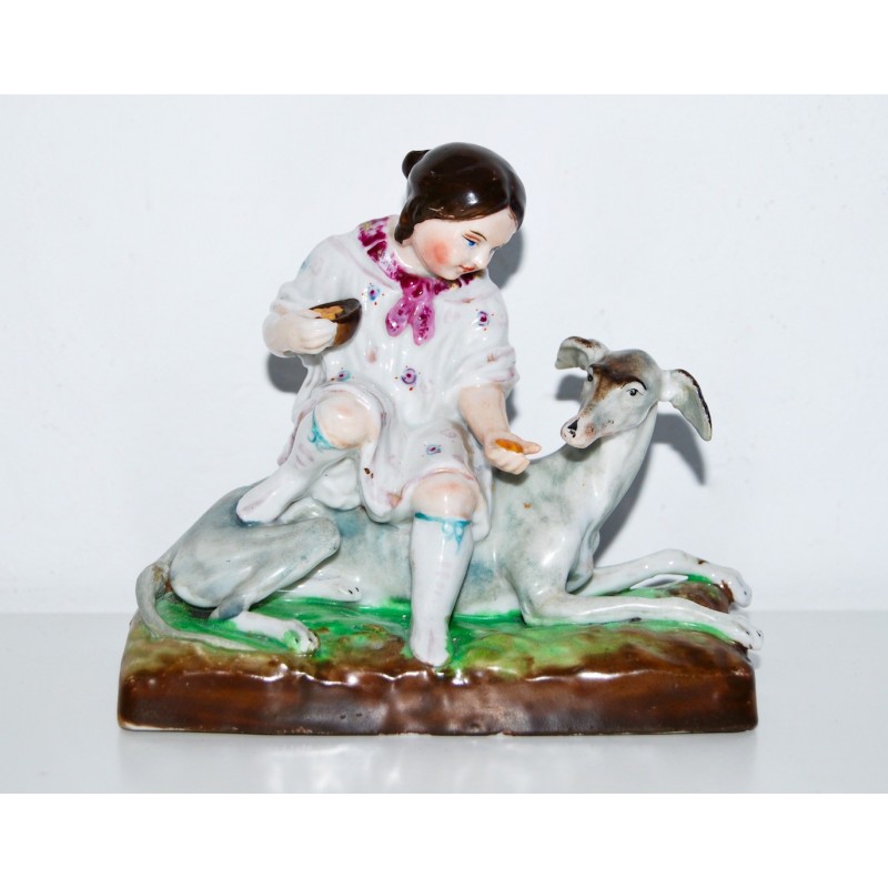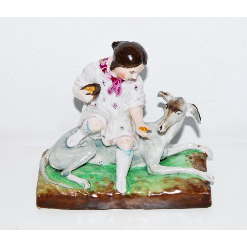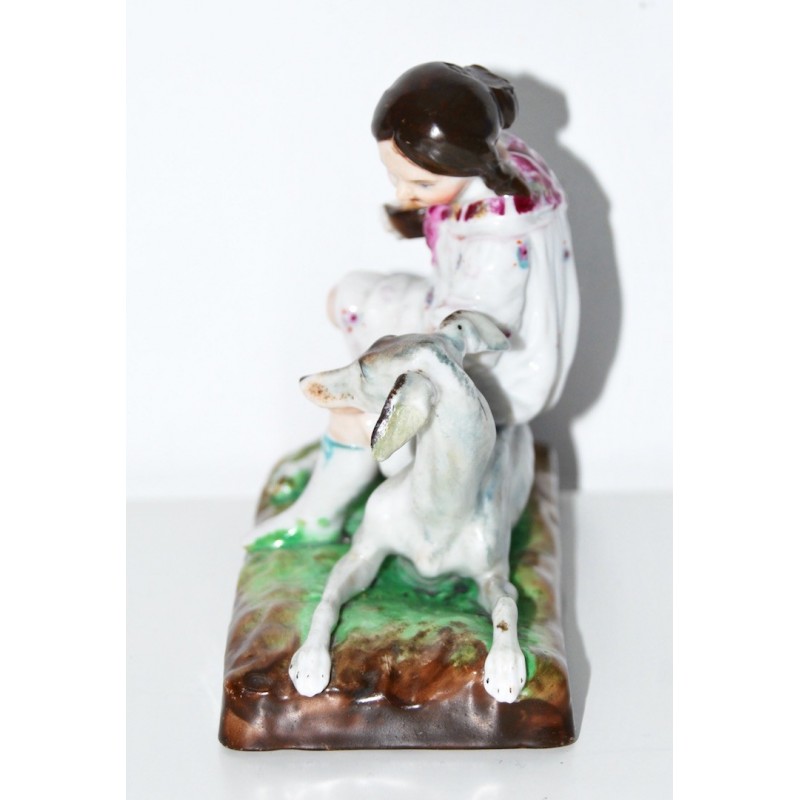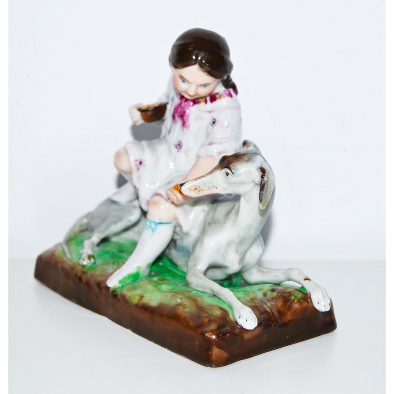 Figuras de niña y galgo, porcelana alemana (1880-1890)