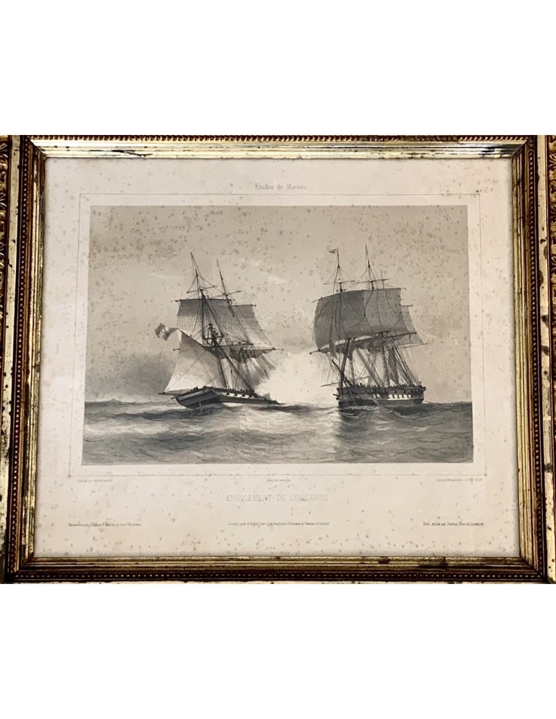 Grabado francés del siglo XIX, marina