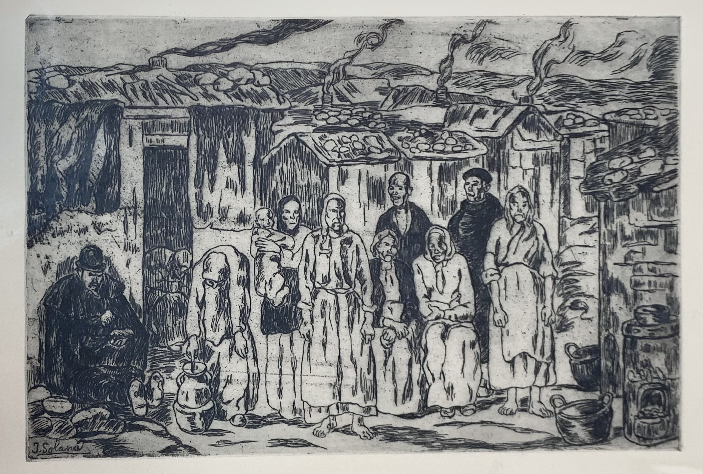 “Domingo en las afueras” José Solana (Madrid, España, 1886 - 1945), aguafuerte.