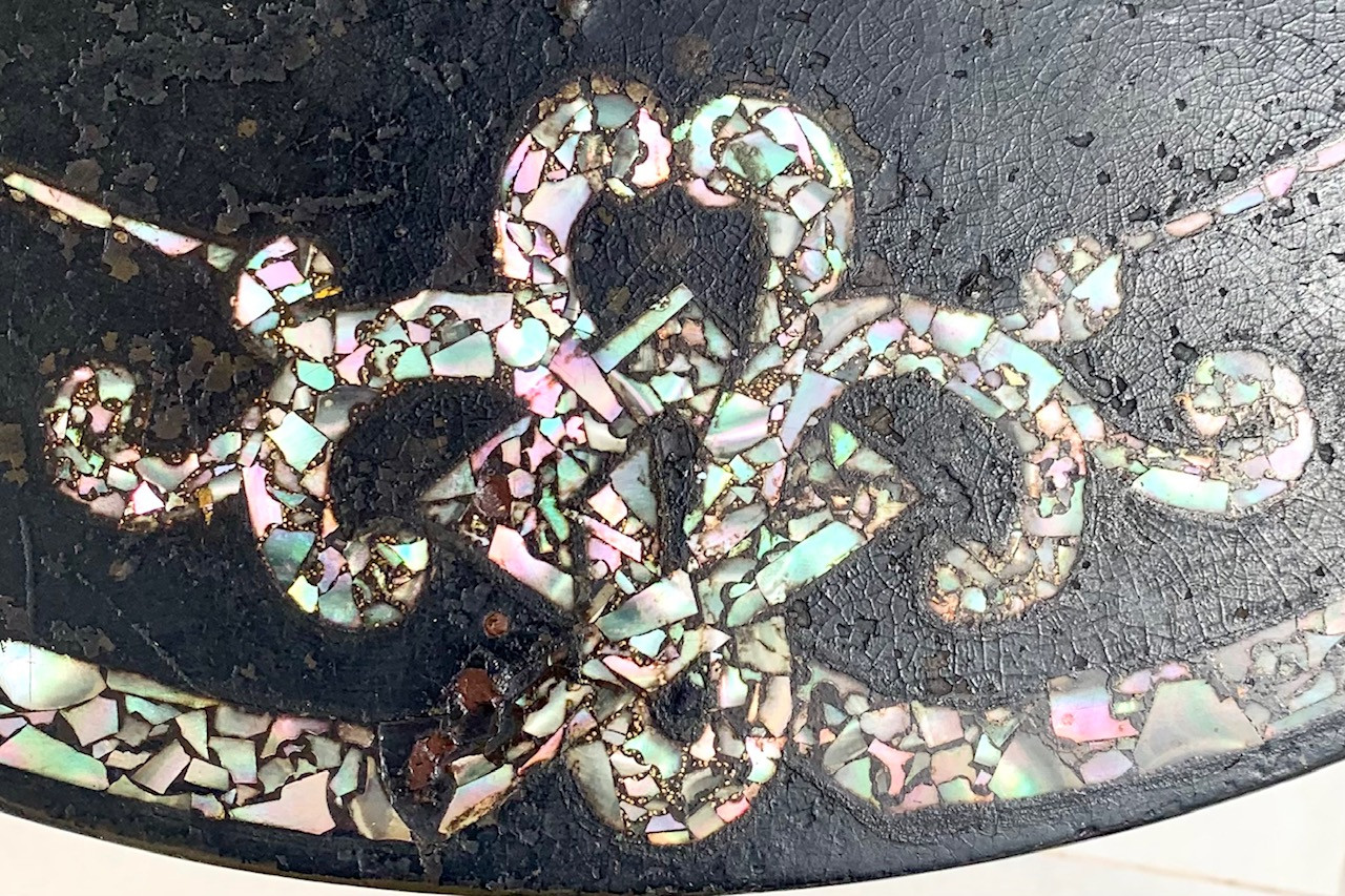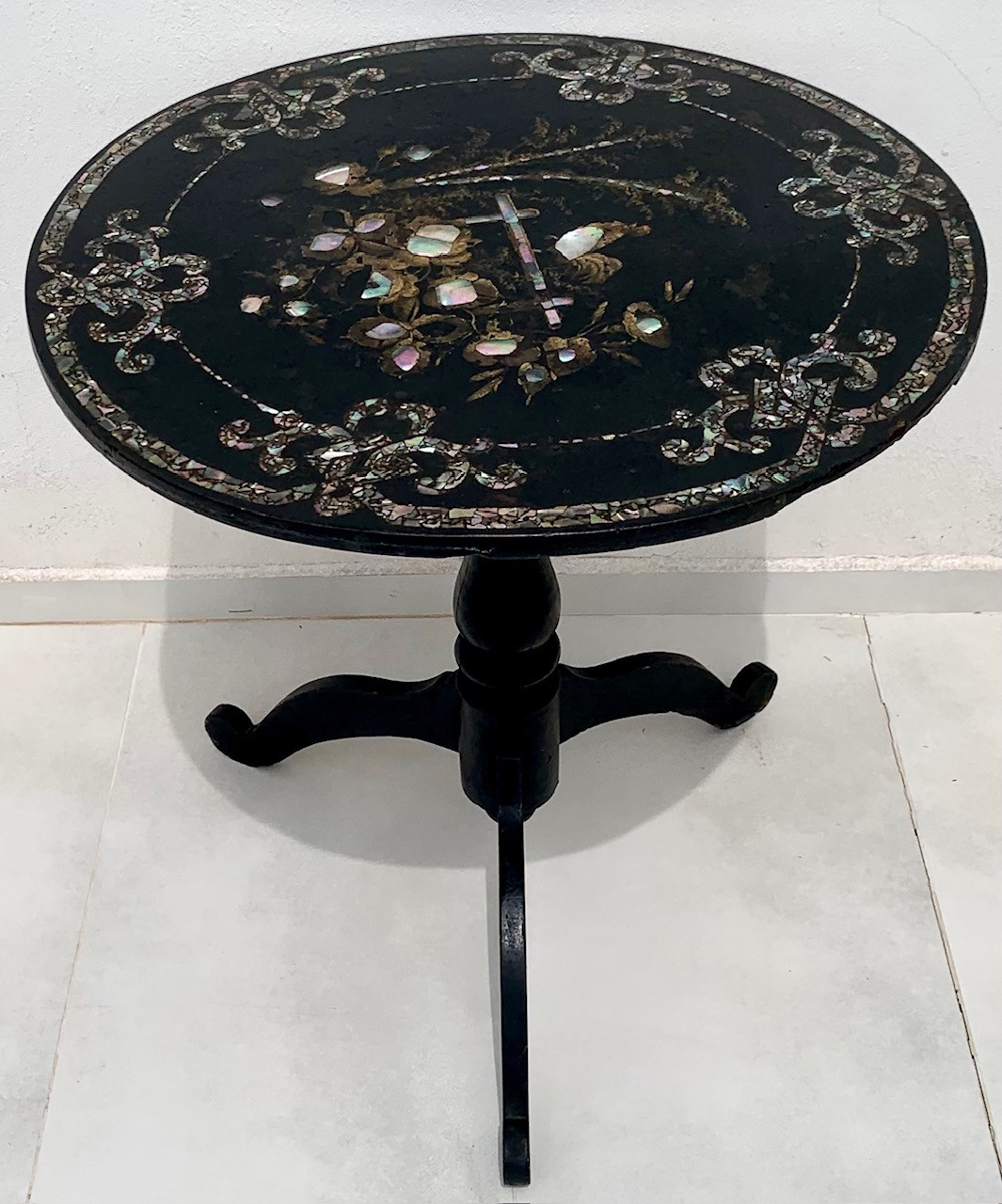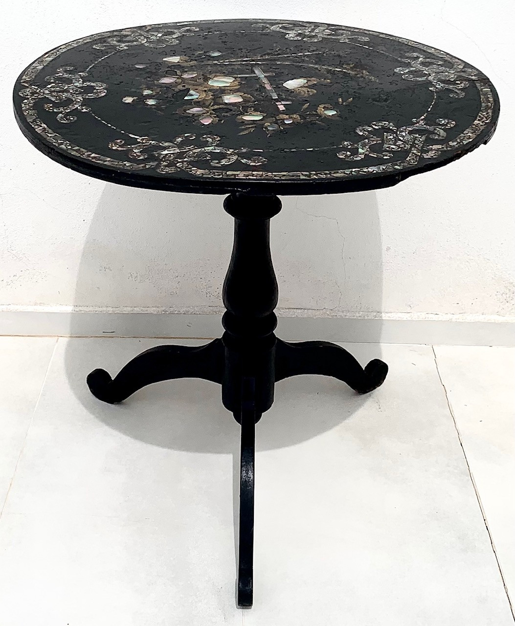 Mesa velador isabelina del siglo XIX, marquetería de nácar.