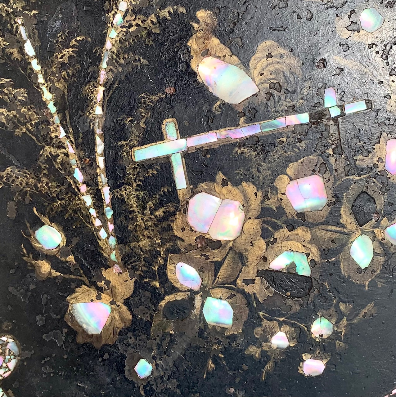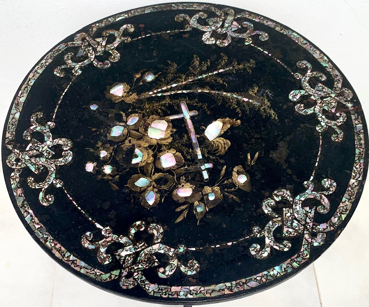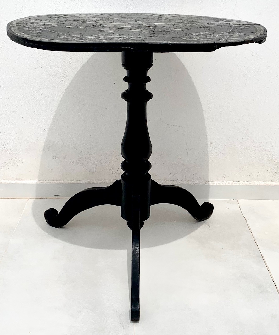 Mesa velador isabelina del siglo XIX, marquetería de nácar.