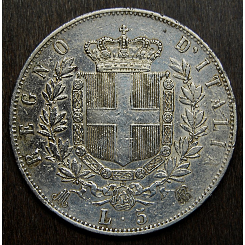 5 lire de 1874, Rey Vittorio Emanuele II, plata.