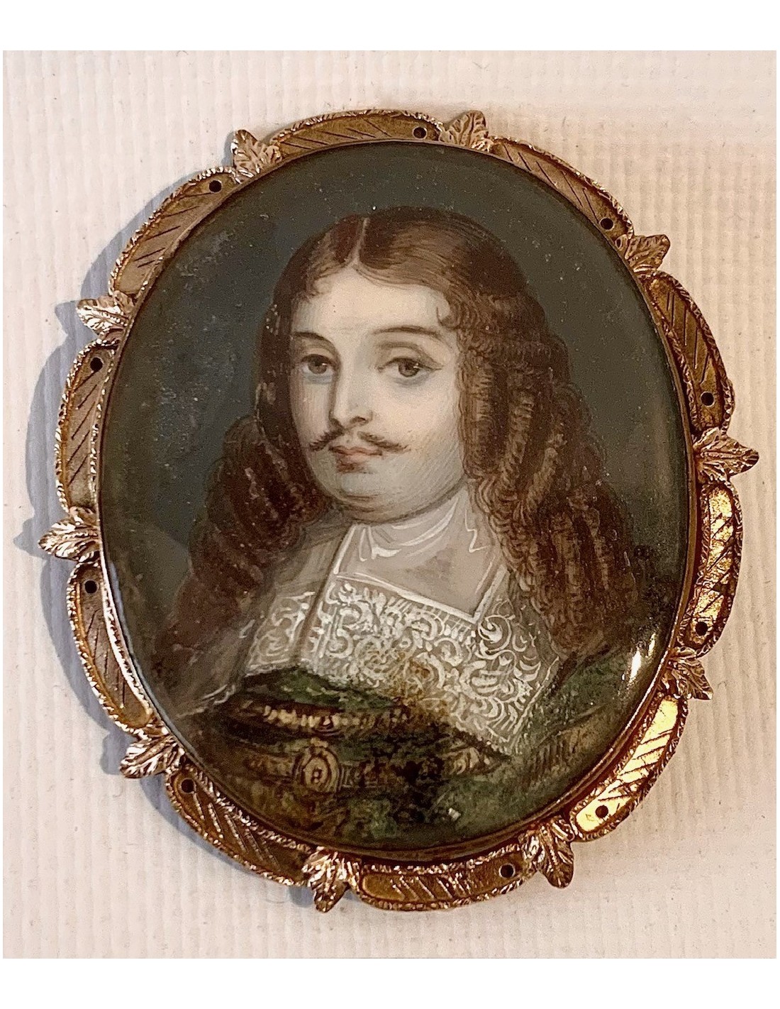 Miniatura broche, retrato de caballero, Siglo XVIII.