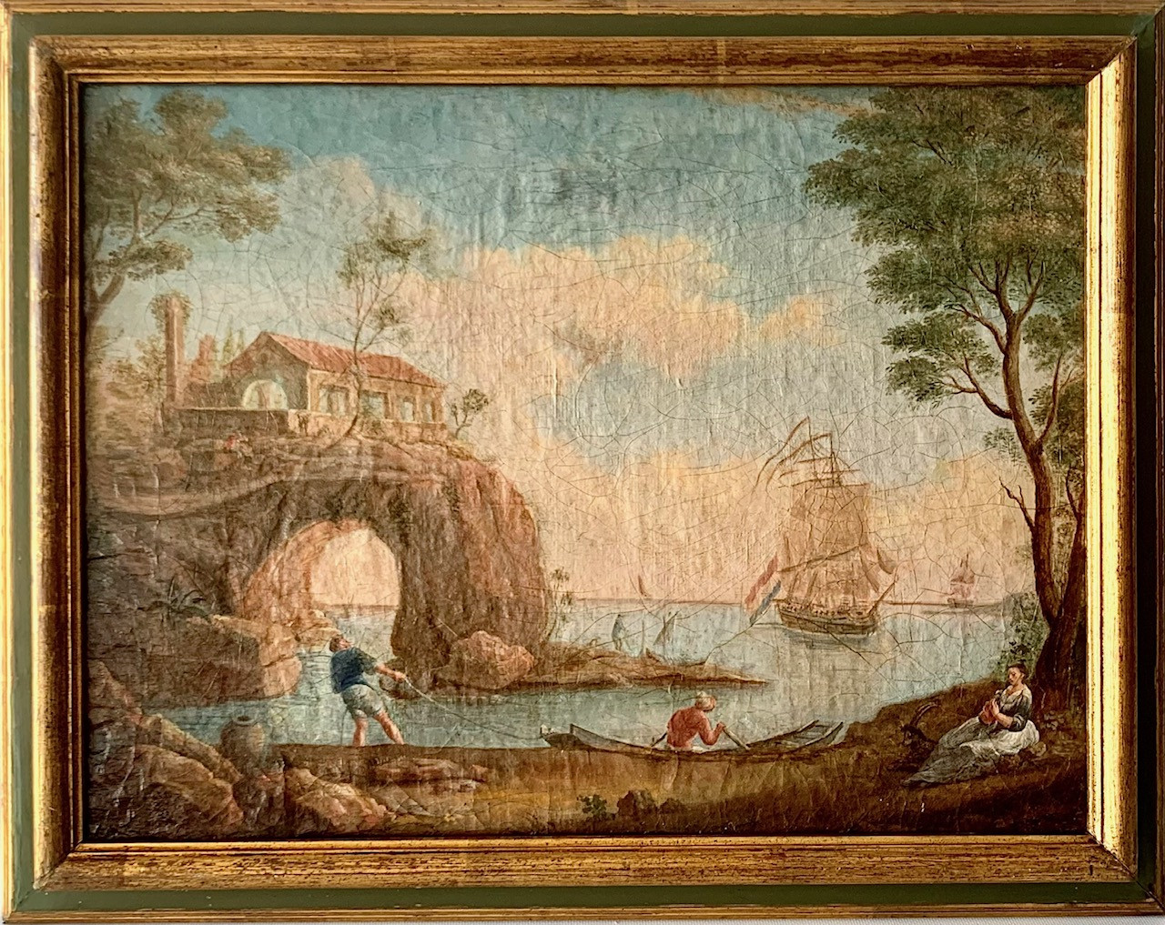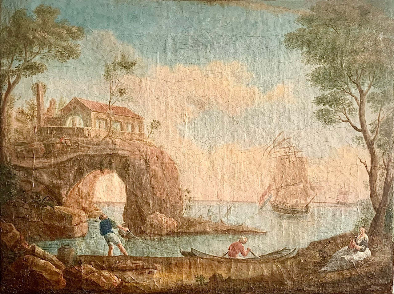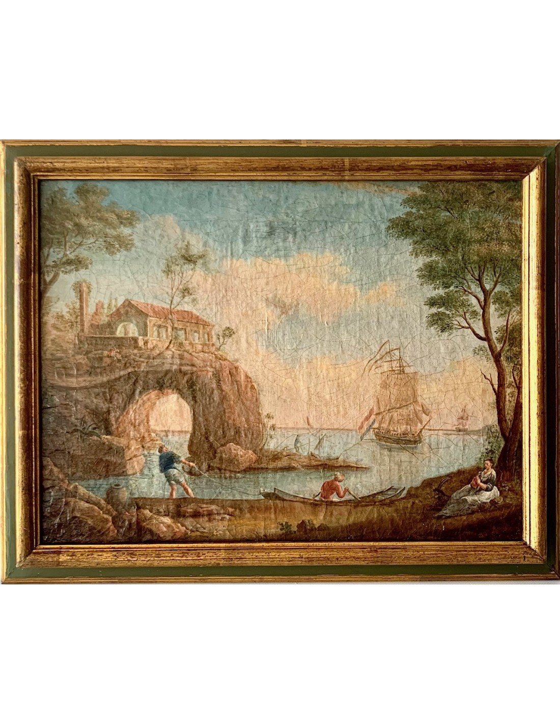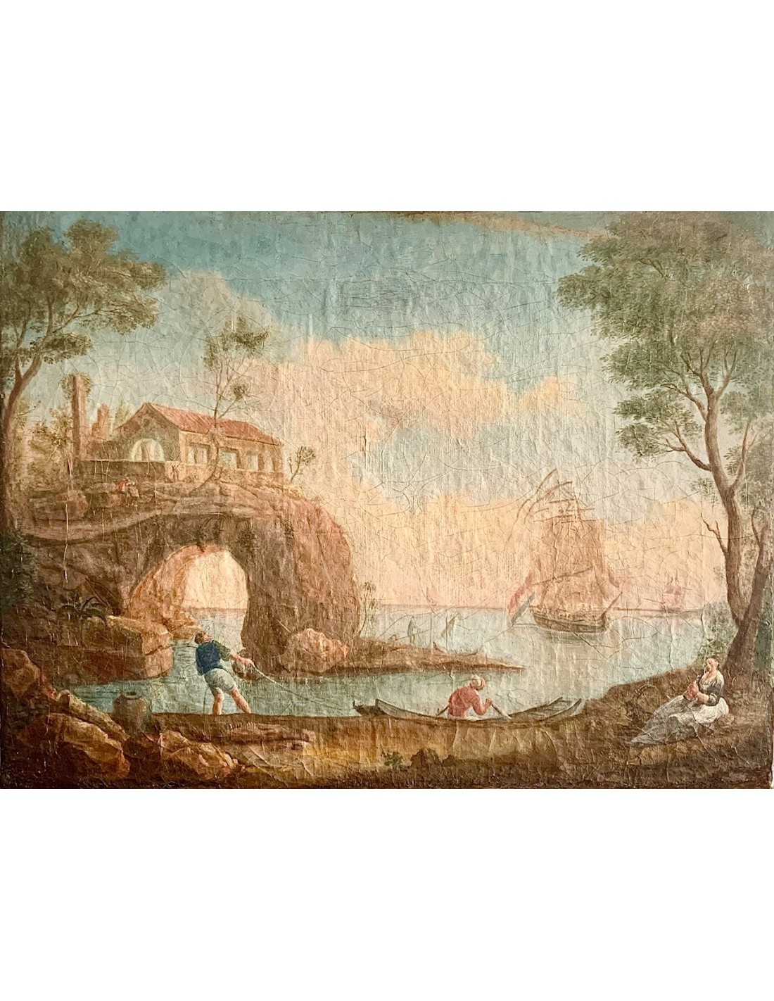 Marina con figuras, óleo sobre lienzo siglo XVIII