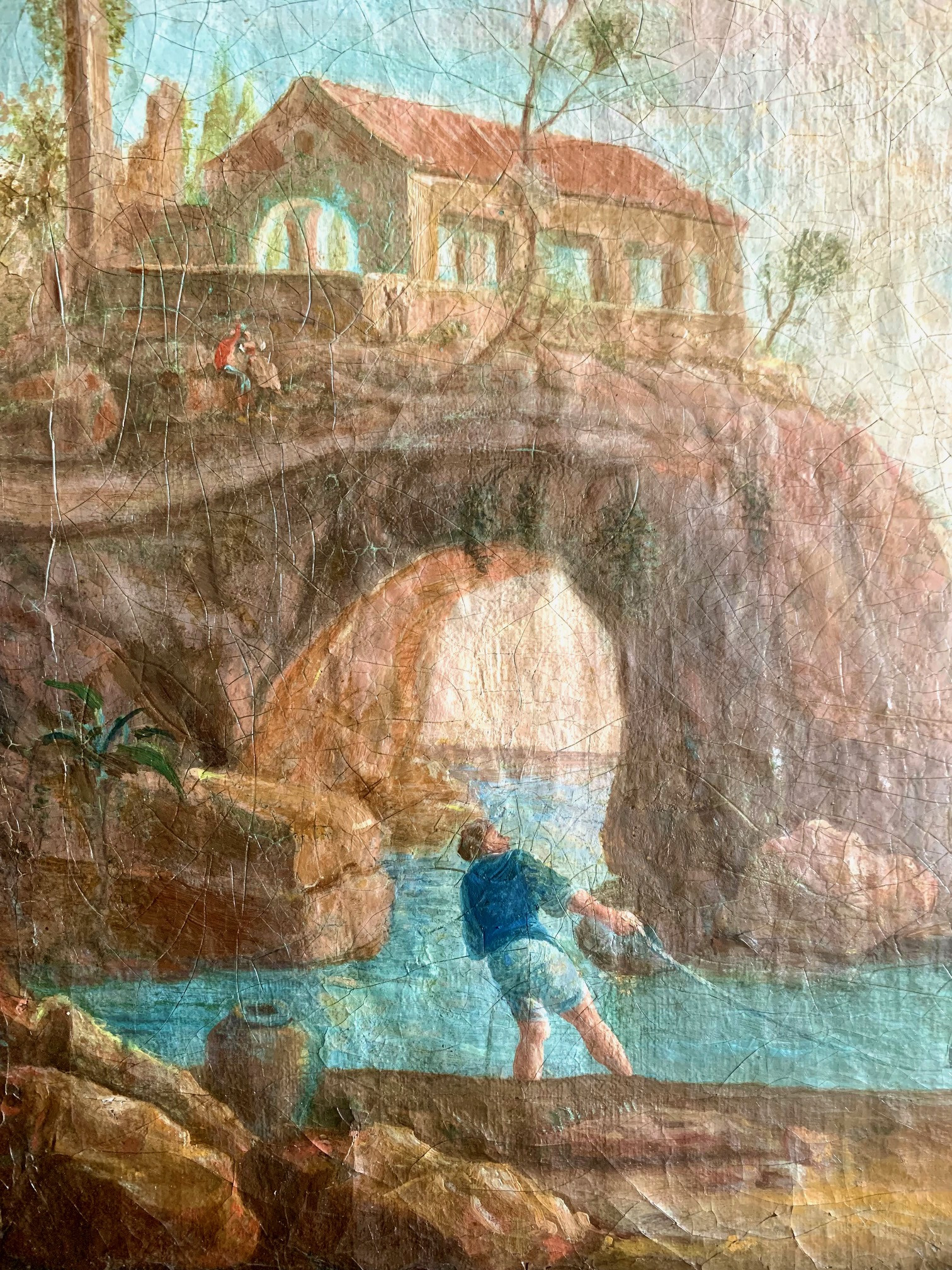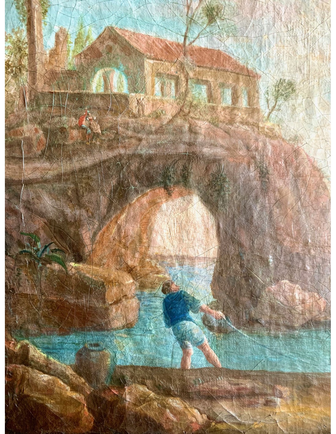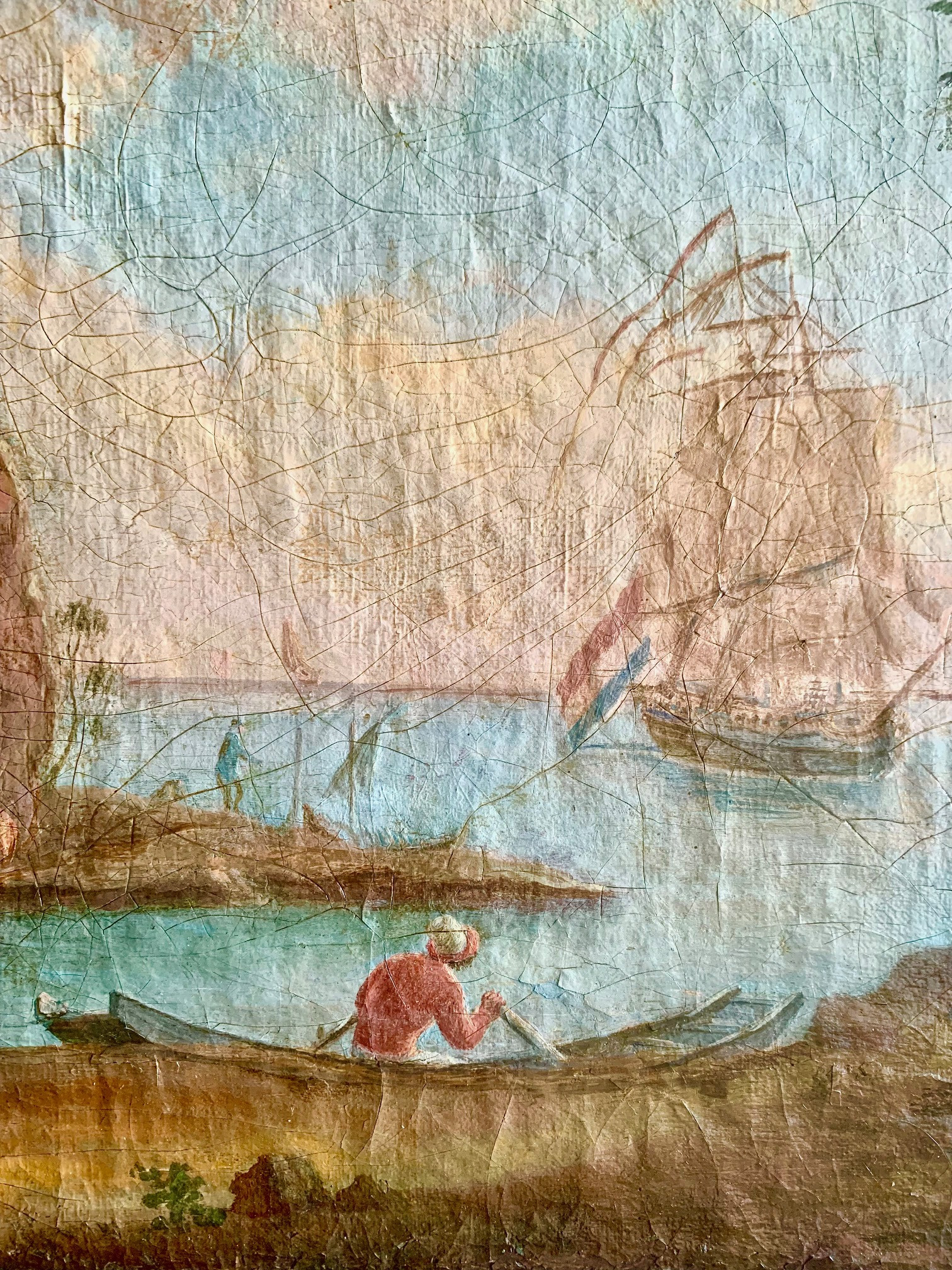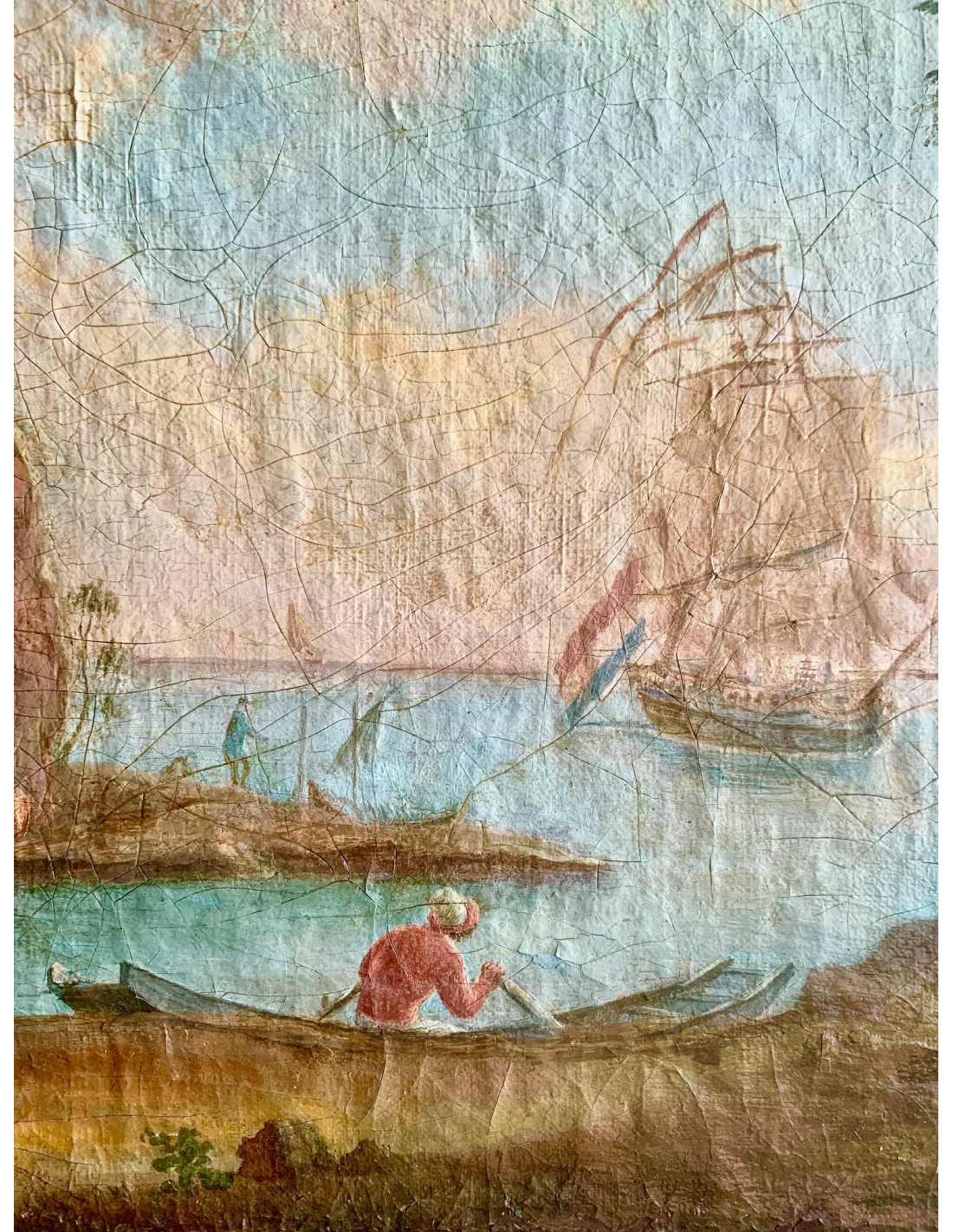 Marina con figuras, óleo sobre lienzo siglo XVIII