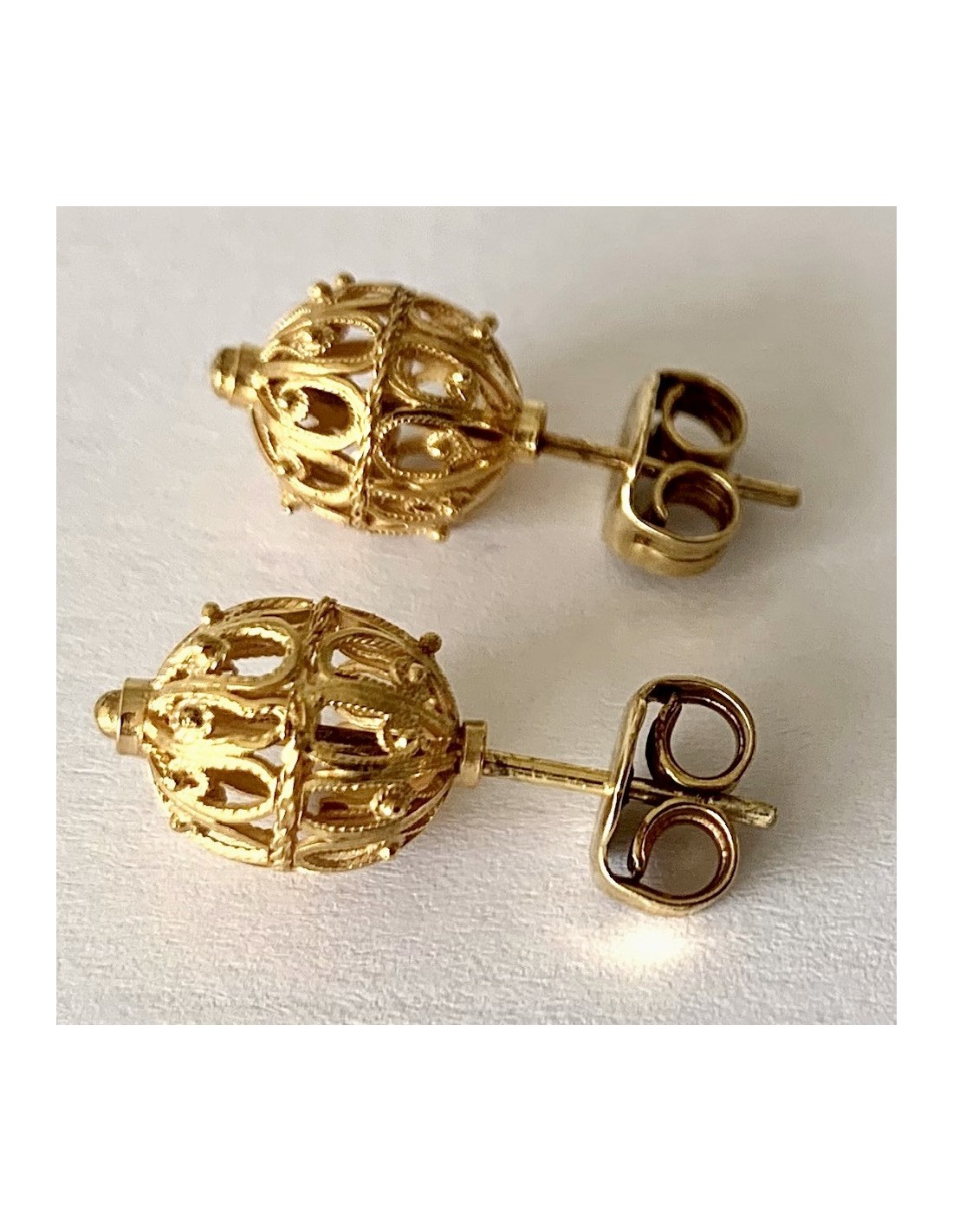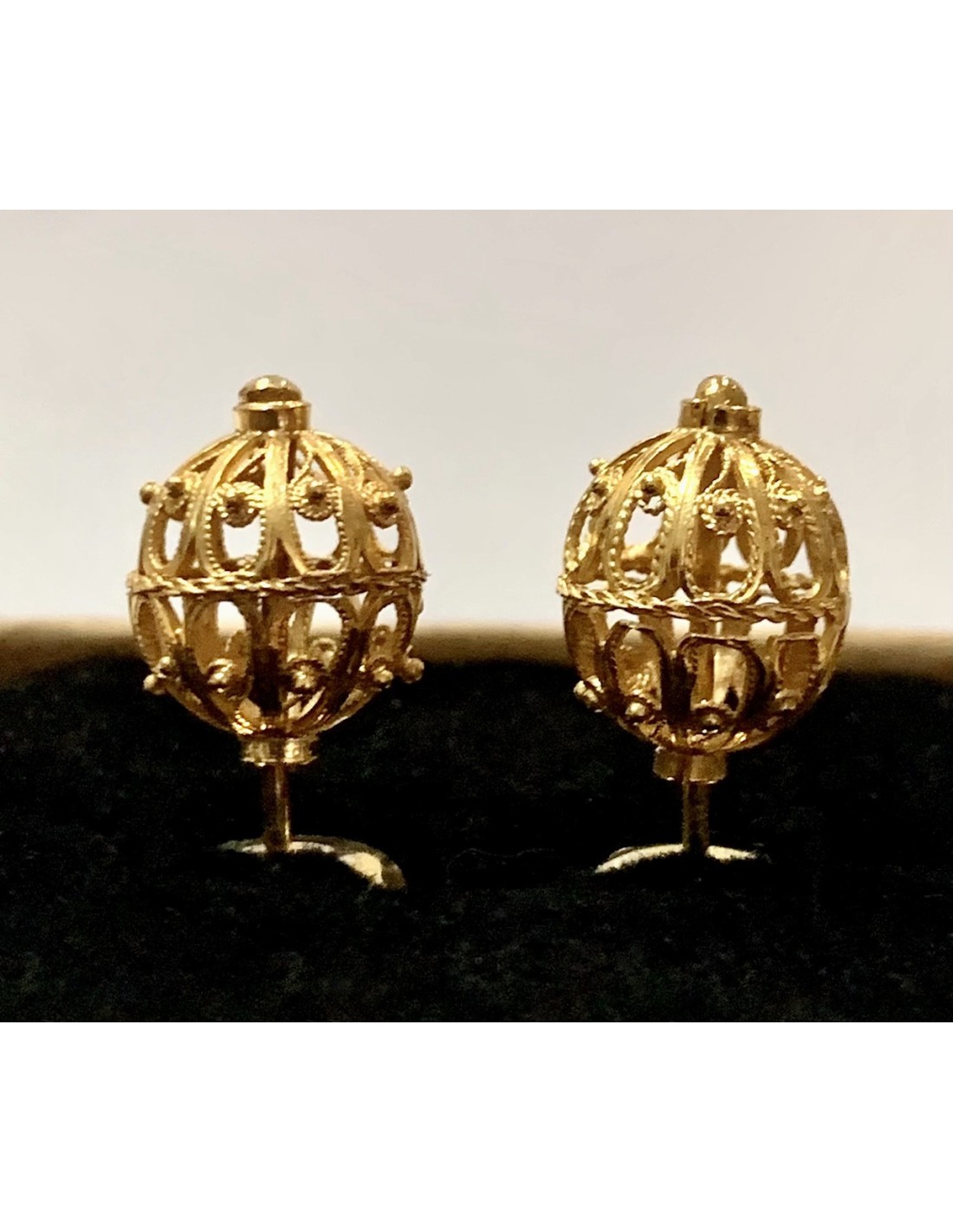 Pendientes en filigrana de plata dorada, Siglo XIX.