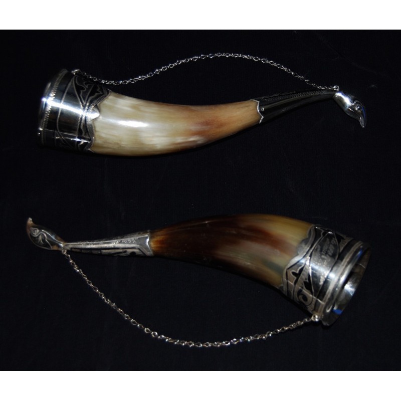 Pareja de polvoreras de asta y plata