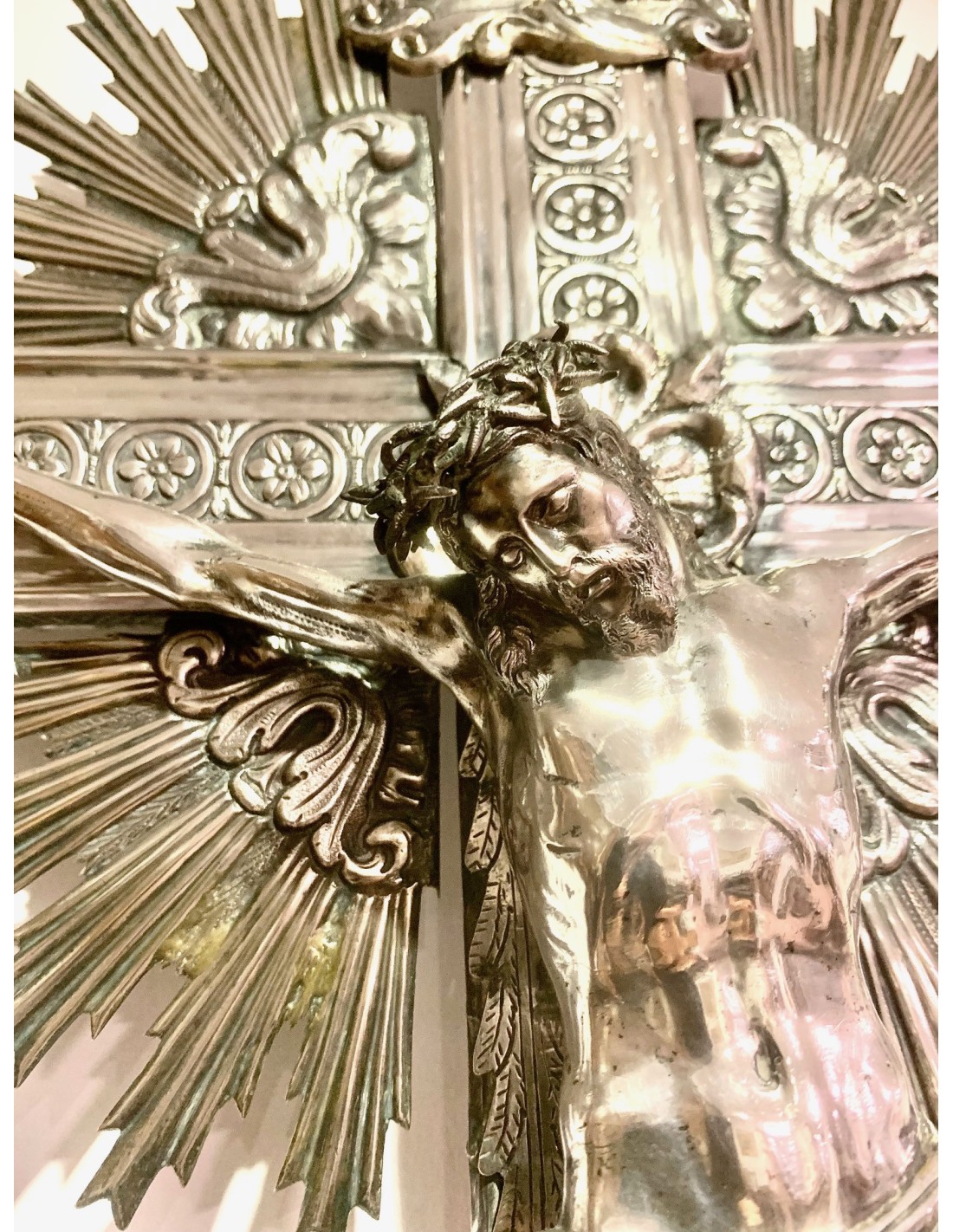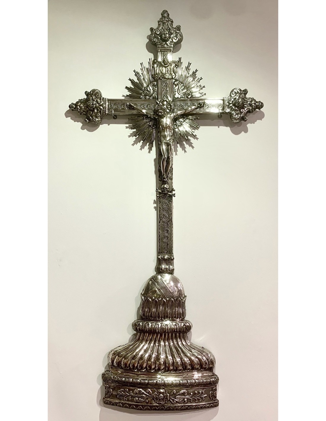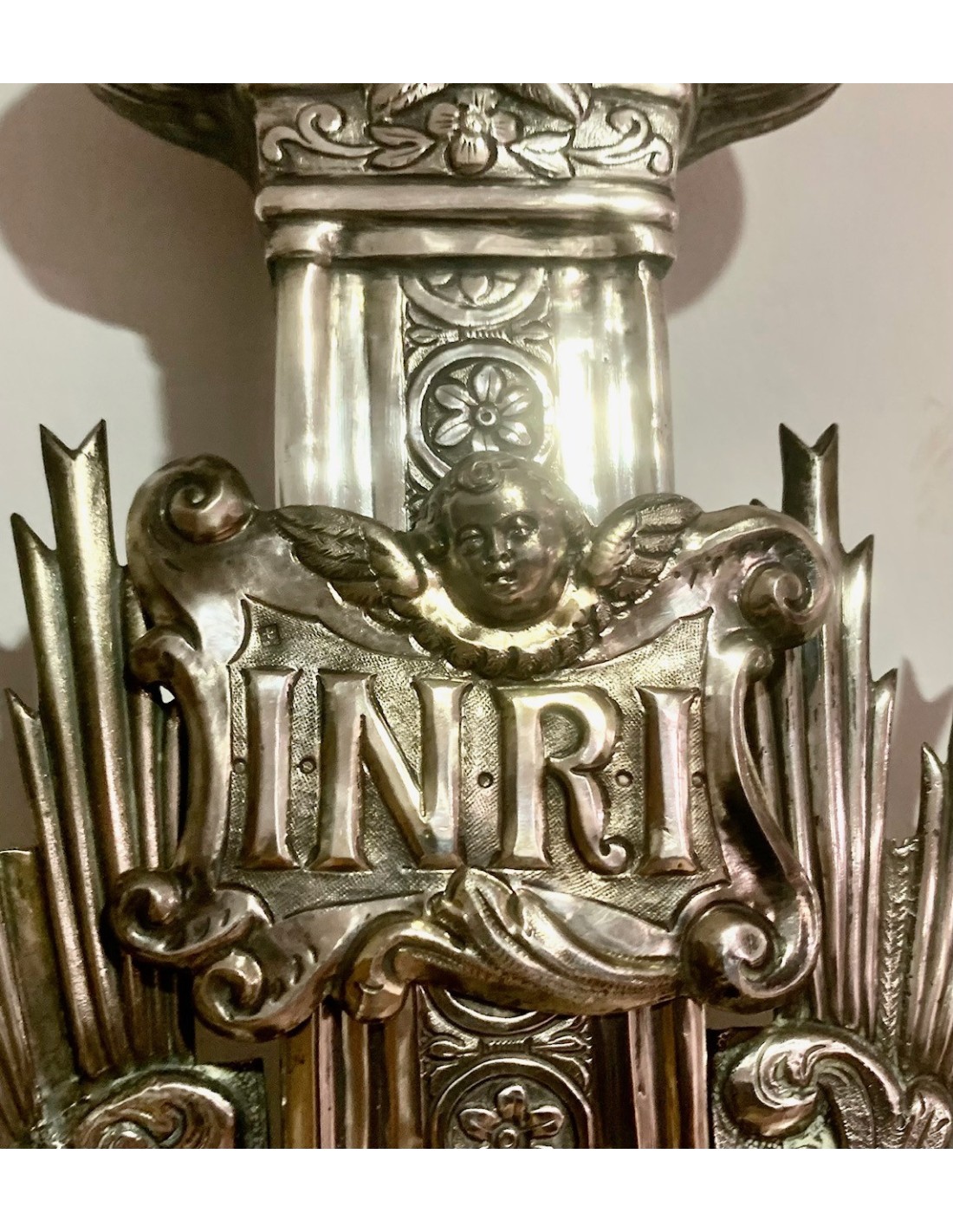 Importante crucifijo de plata Italiano, finales del siglo XVIII