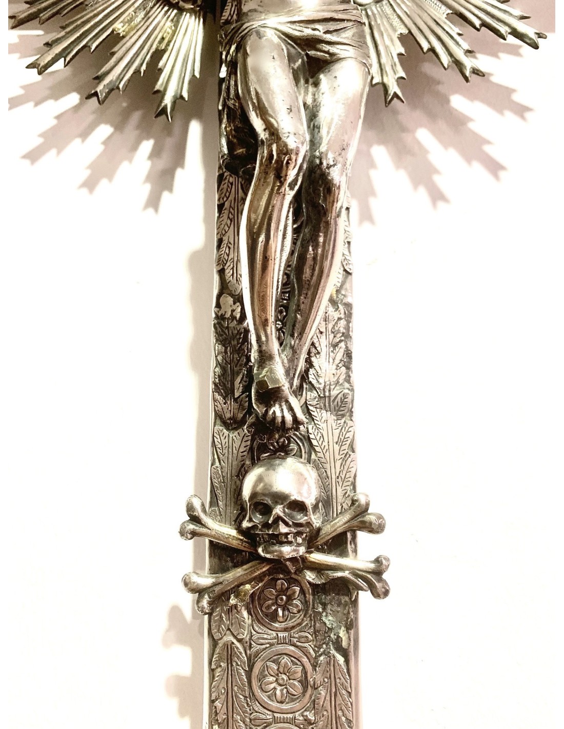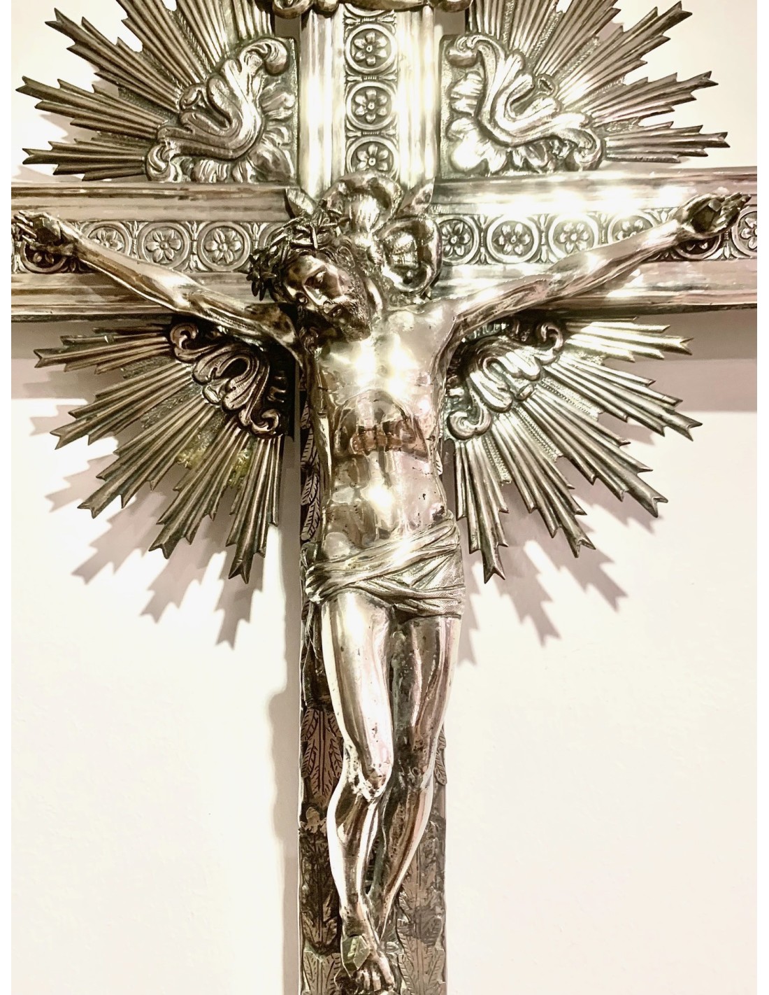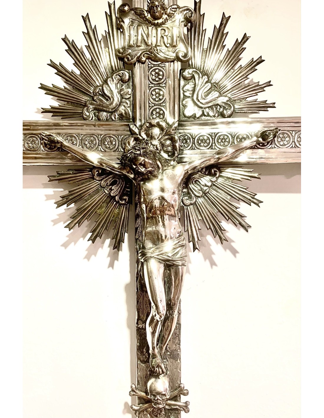 Importante crucifijo de plata Italiano, finales del siglo XVIII