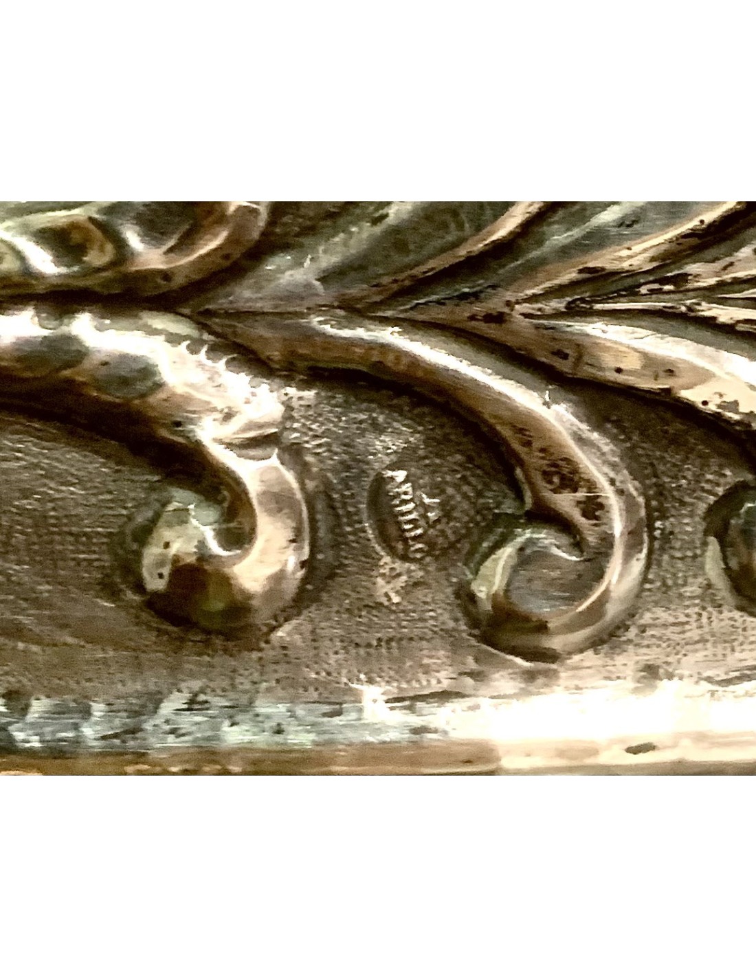 Importante crucifijo de plata Italiano de finales del siglo XVIII principios del XIX, (Nápoles, 1790-1830). Cristo y otros particulares añadidos a la cruz realizados en plata fundida y cincelada, lo demás realizado en lamina gruesa finemente cincelada, tanto en el lado anterior como el posterior, contraste del platero Arillo.