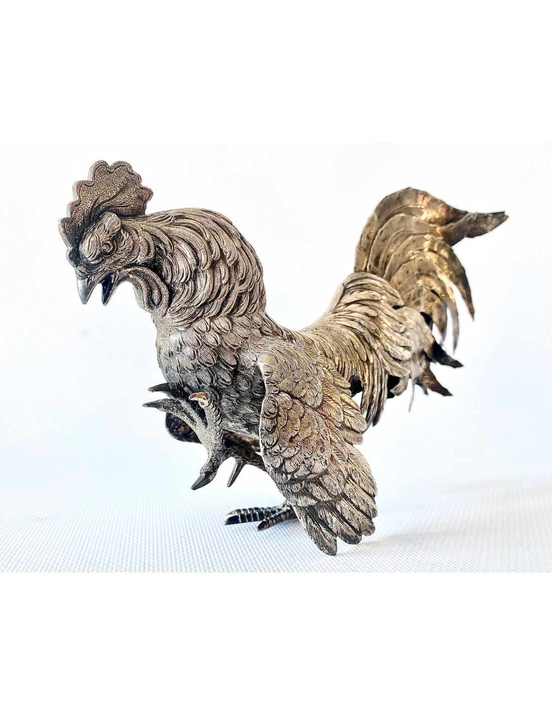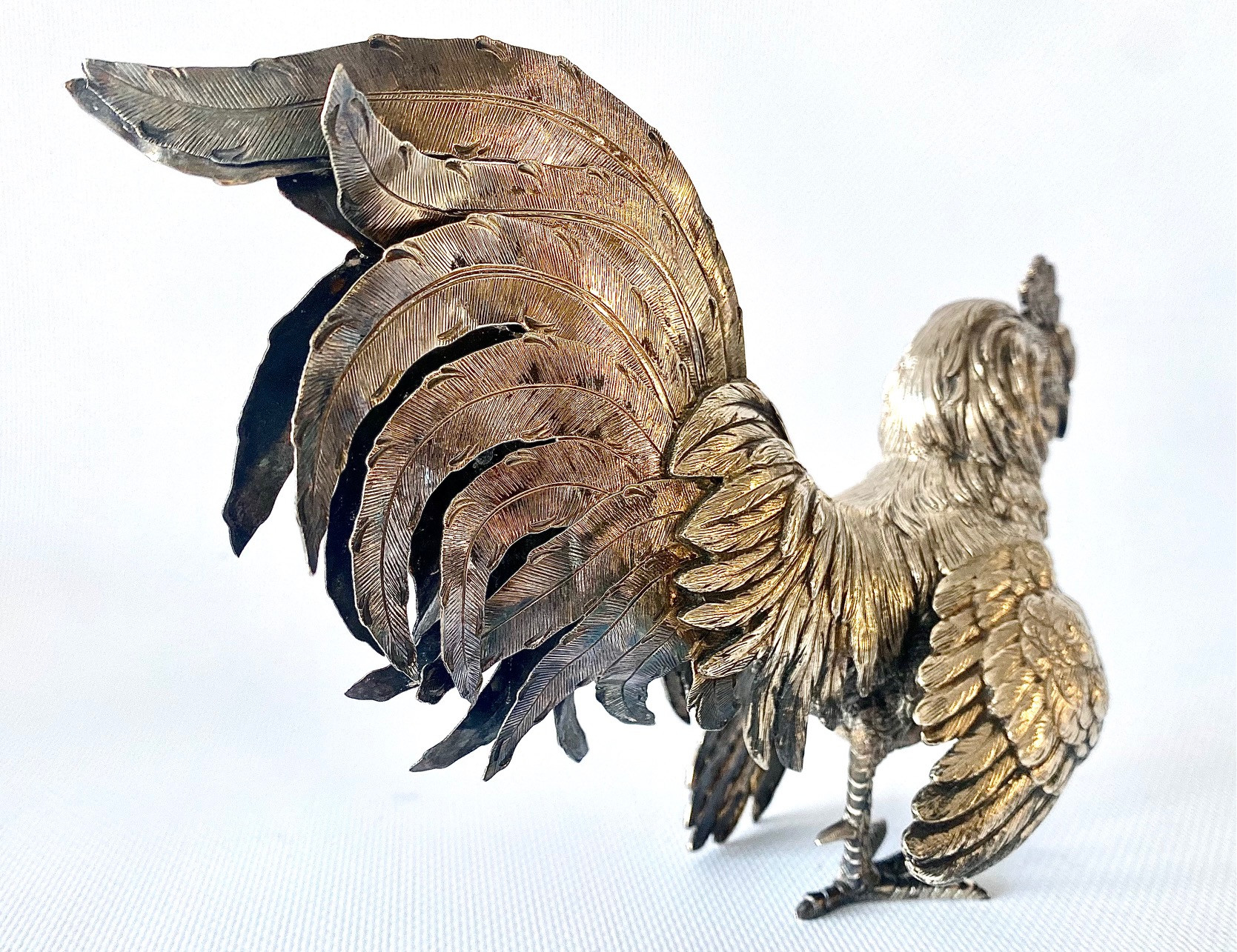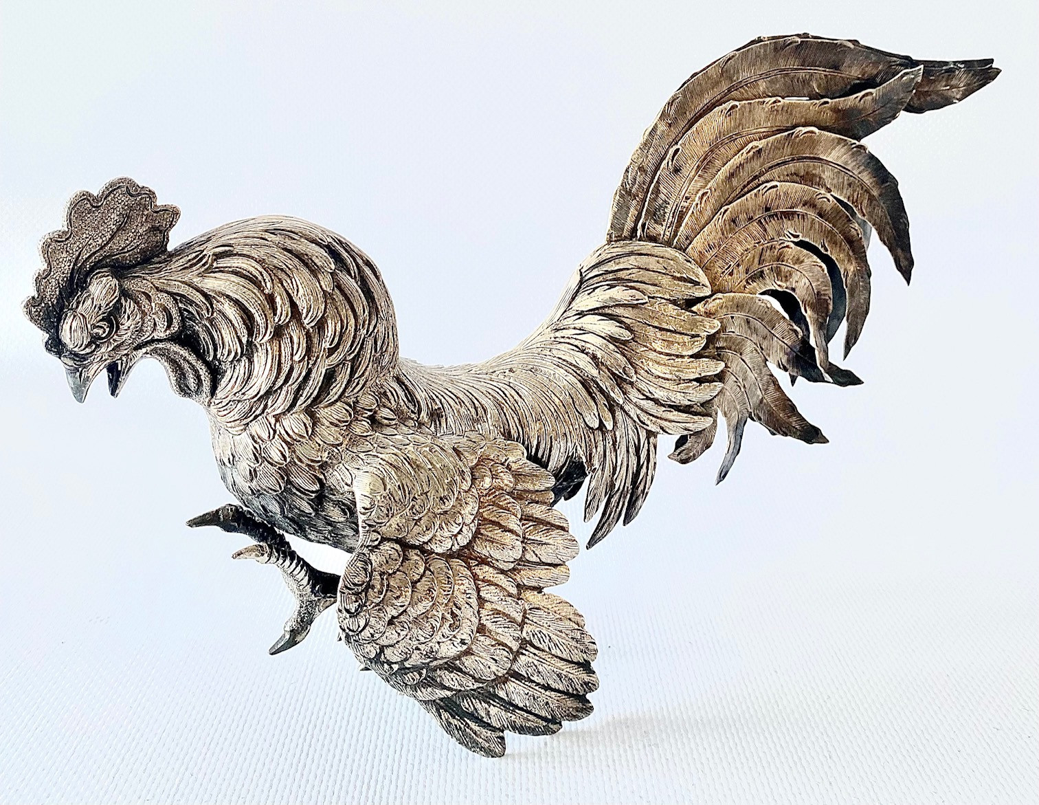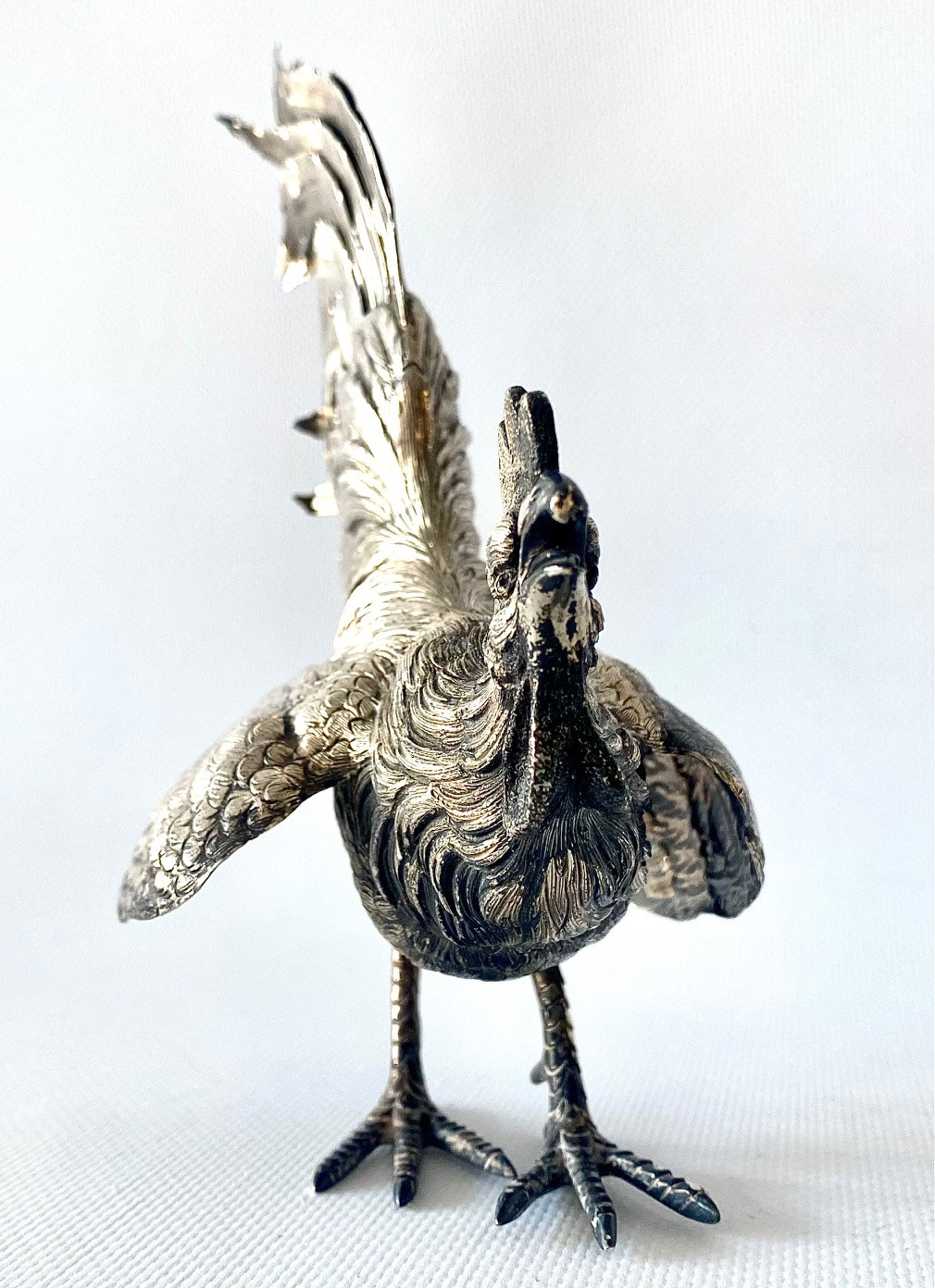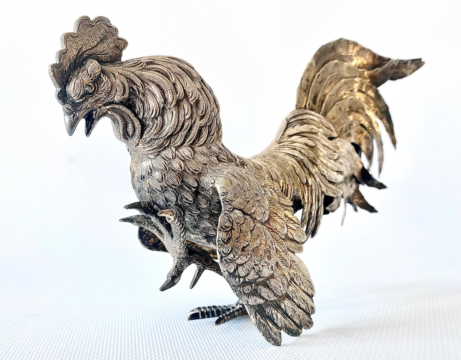 Pareja de “Coqs” gallos de pelea en plata de ley, España Siglo XX.