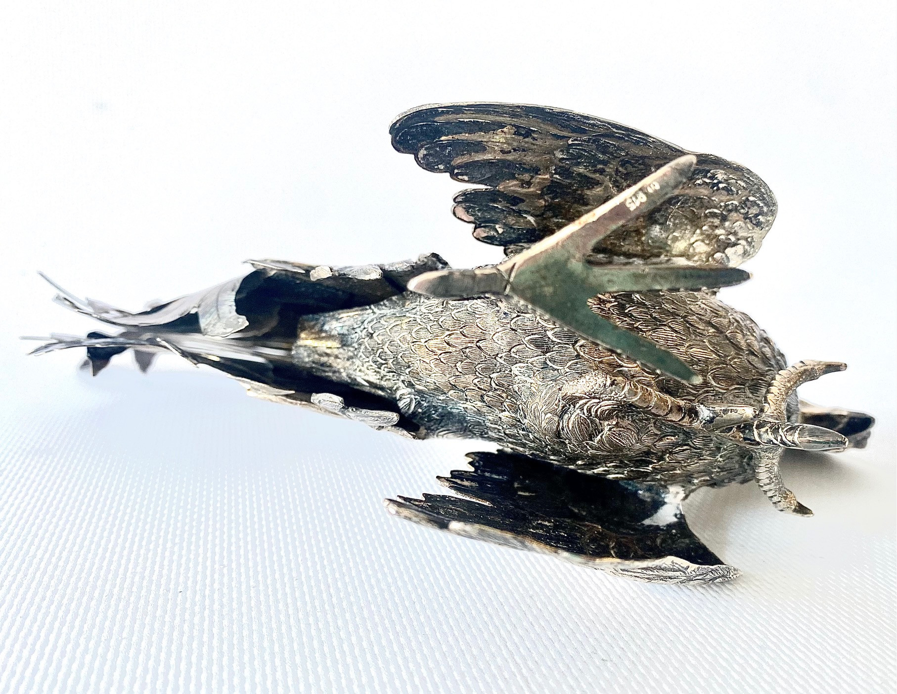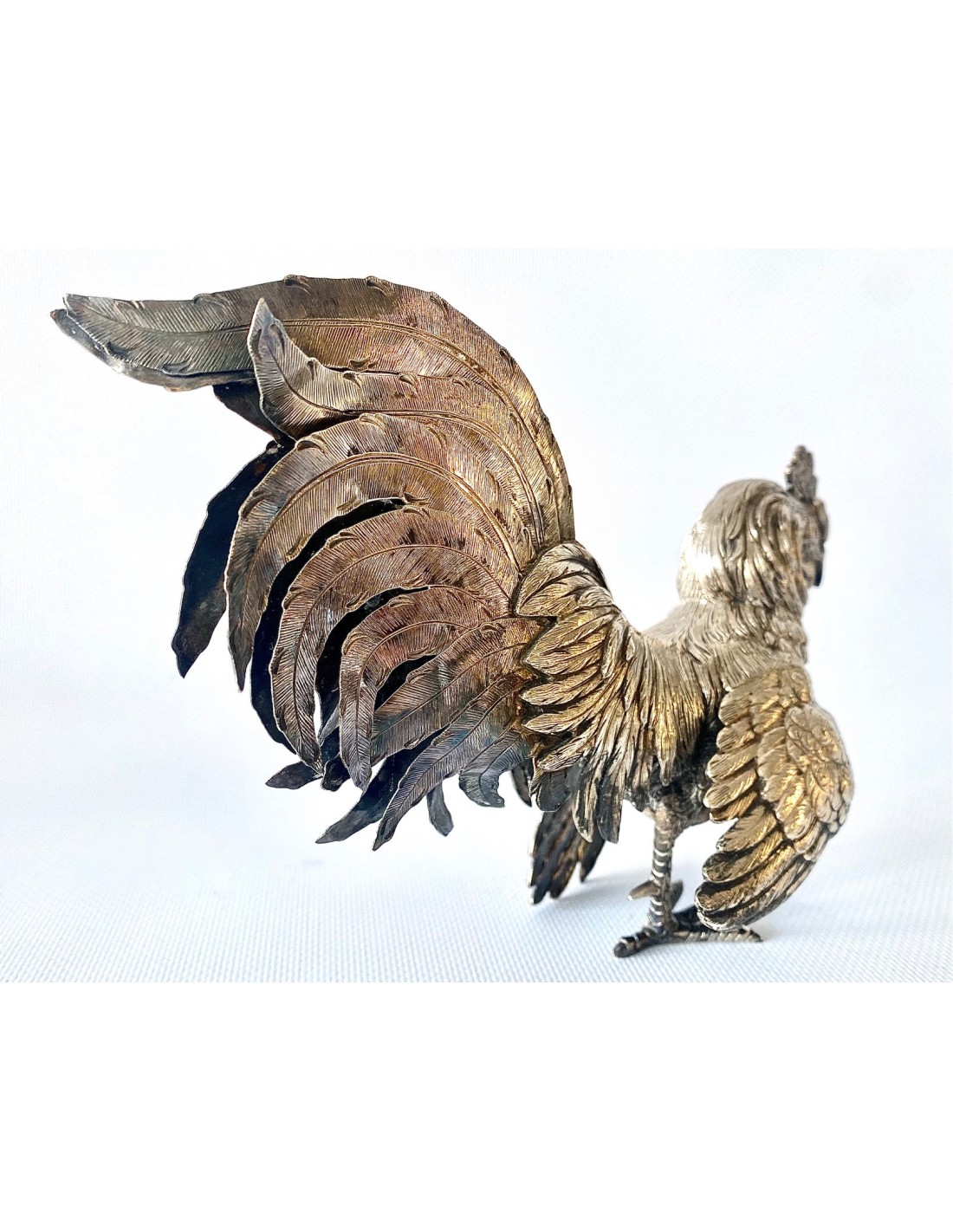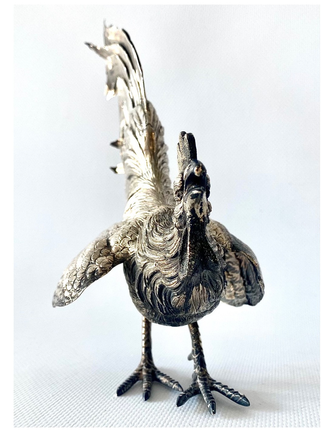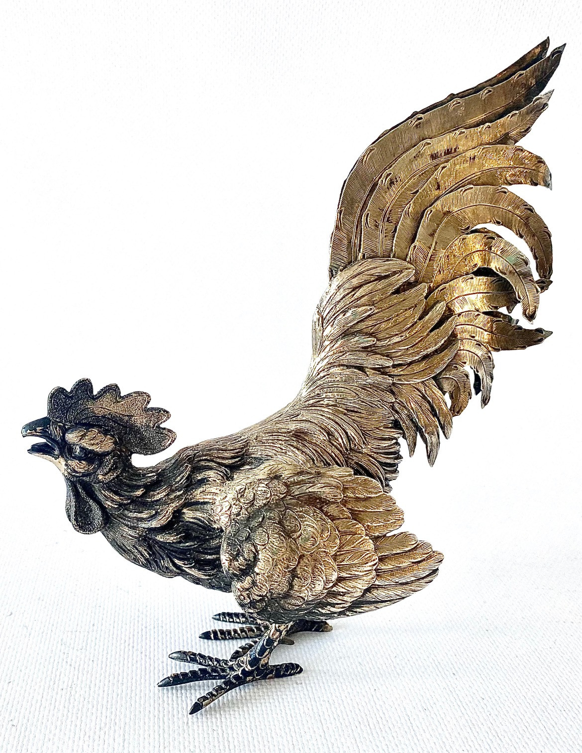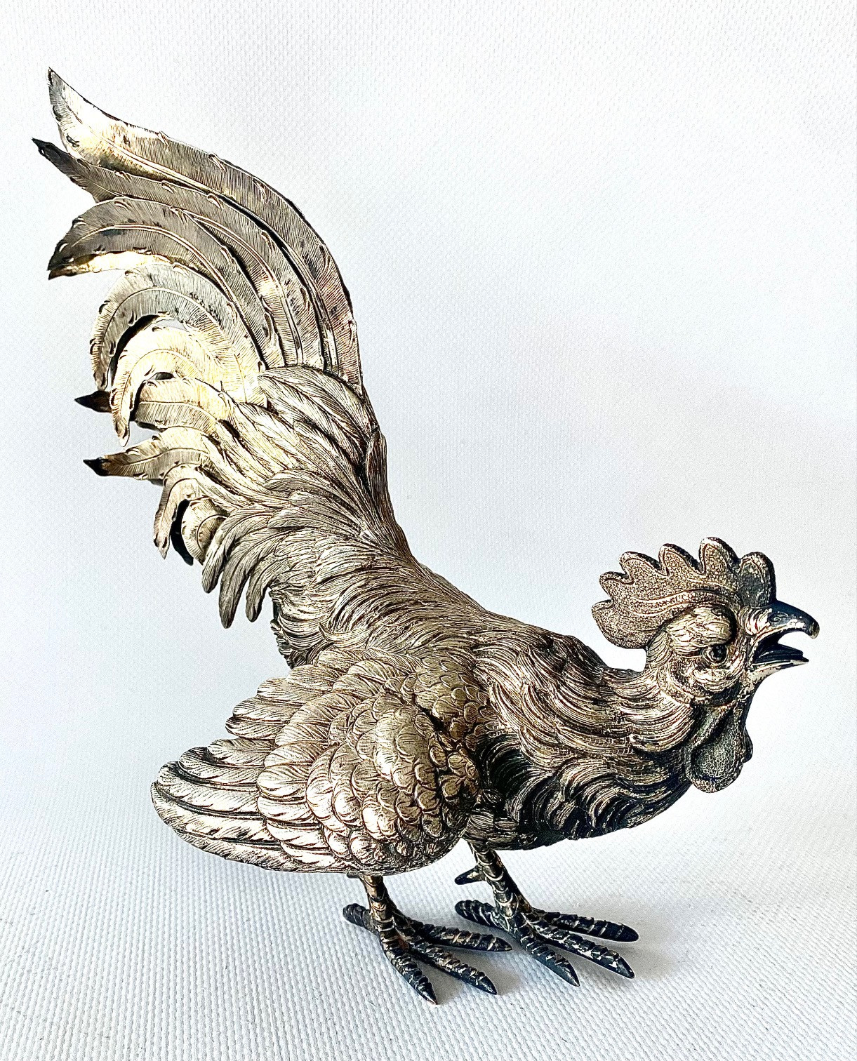 Pareja de “Coqs” gallos de pelea en plata de ley, España Siglo XX.