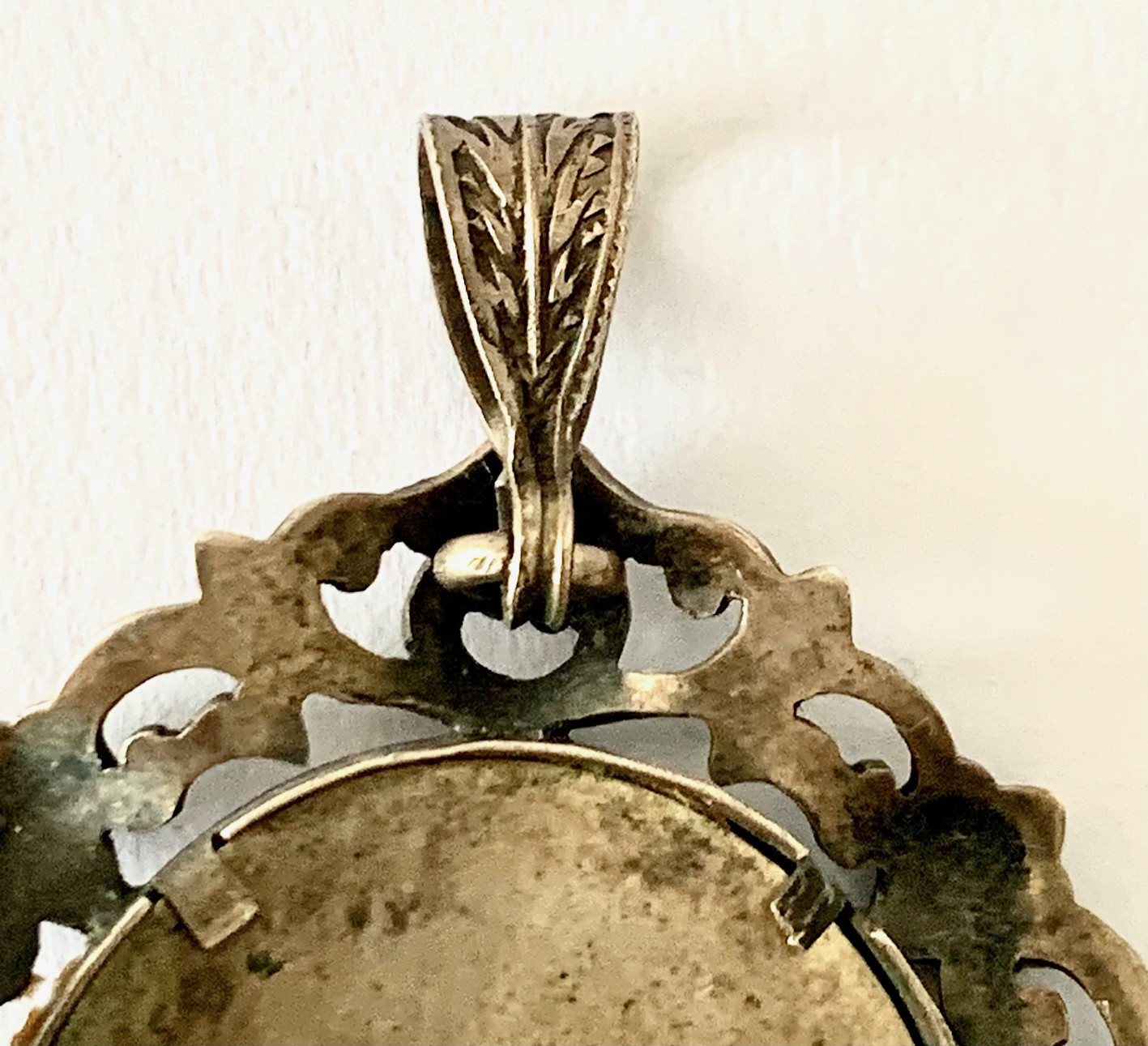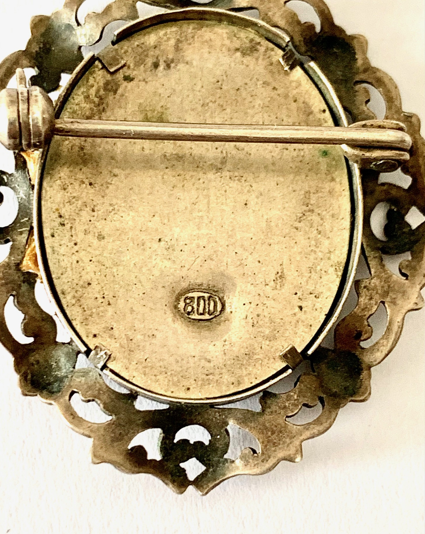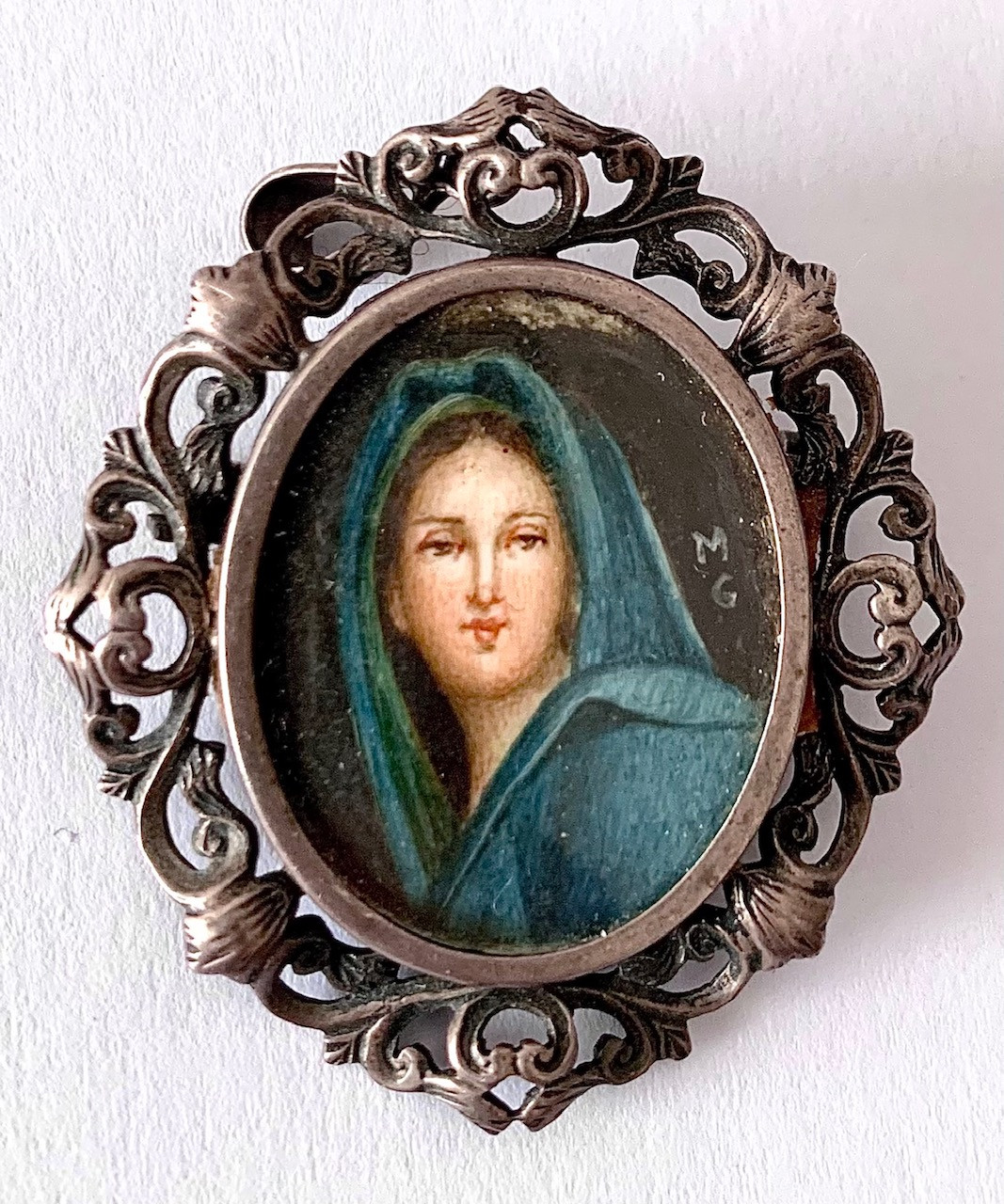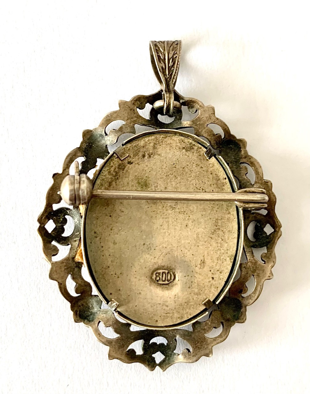 Retrato joven, miniatura. Colgante y broche, plata 800.