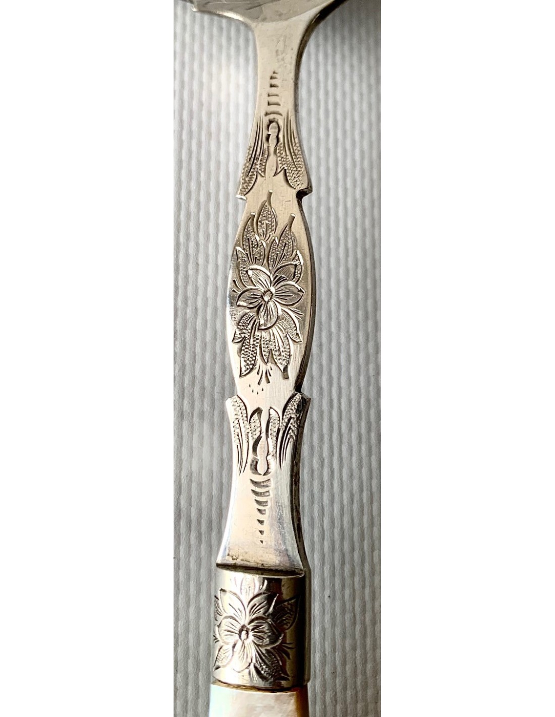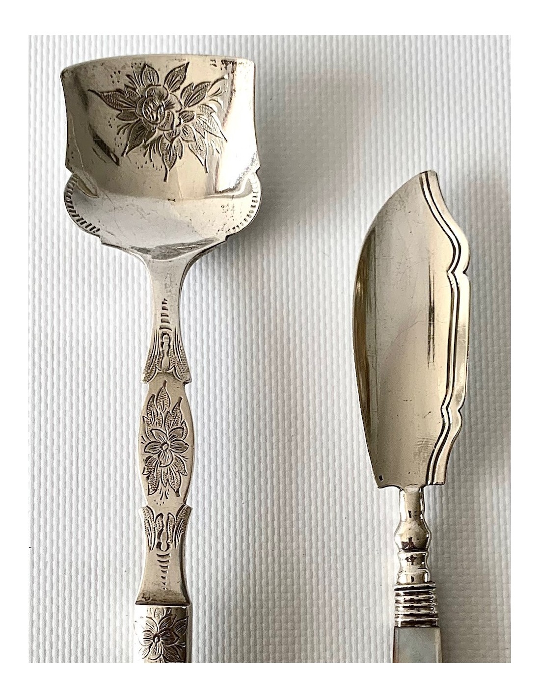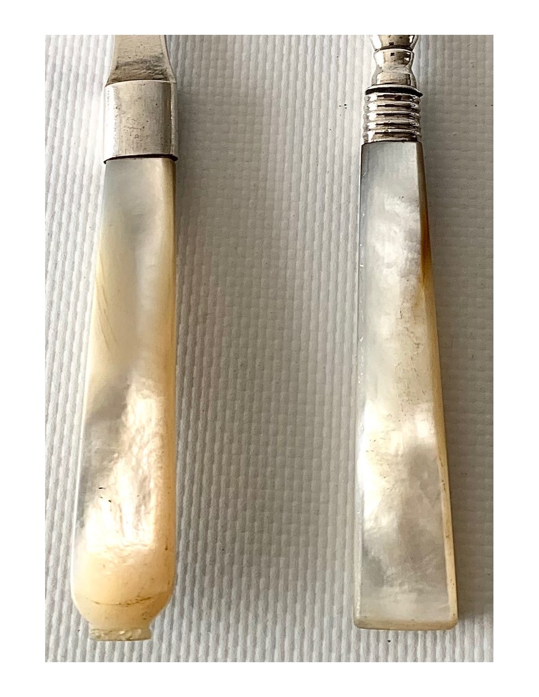 Pareja de cubiertos de plata de ley y nácar, finales del Siglo XIX, Inglaterra, Birmingham 1898