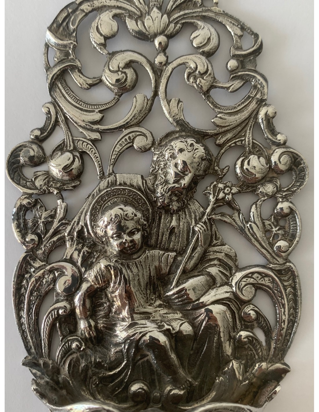 Benditera de plata, San José con el Niño. Finales del Siglo XIX.