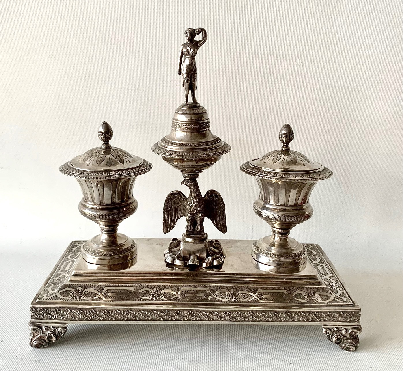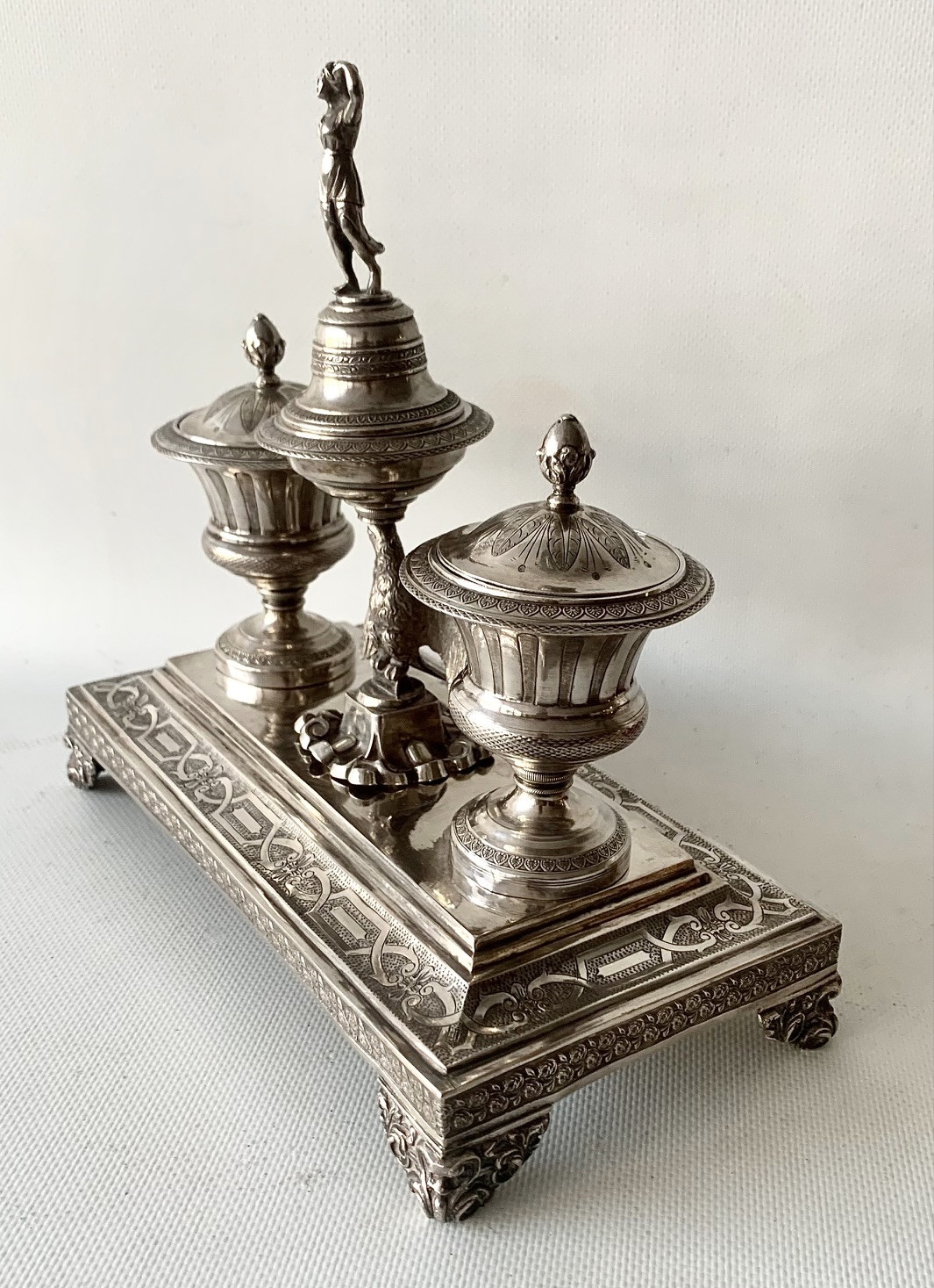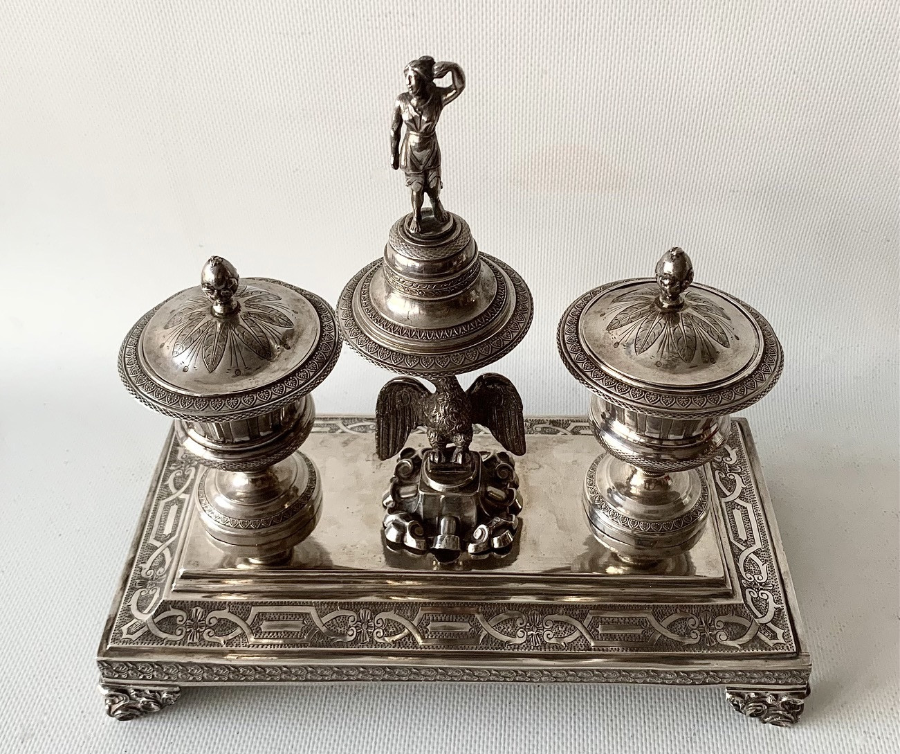 Escribanía o tintero de plata, periodo imperio (1830-40), probablemente manufactura Austria.