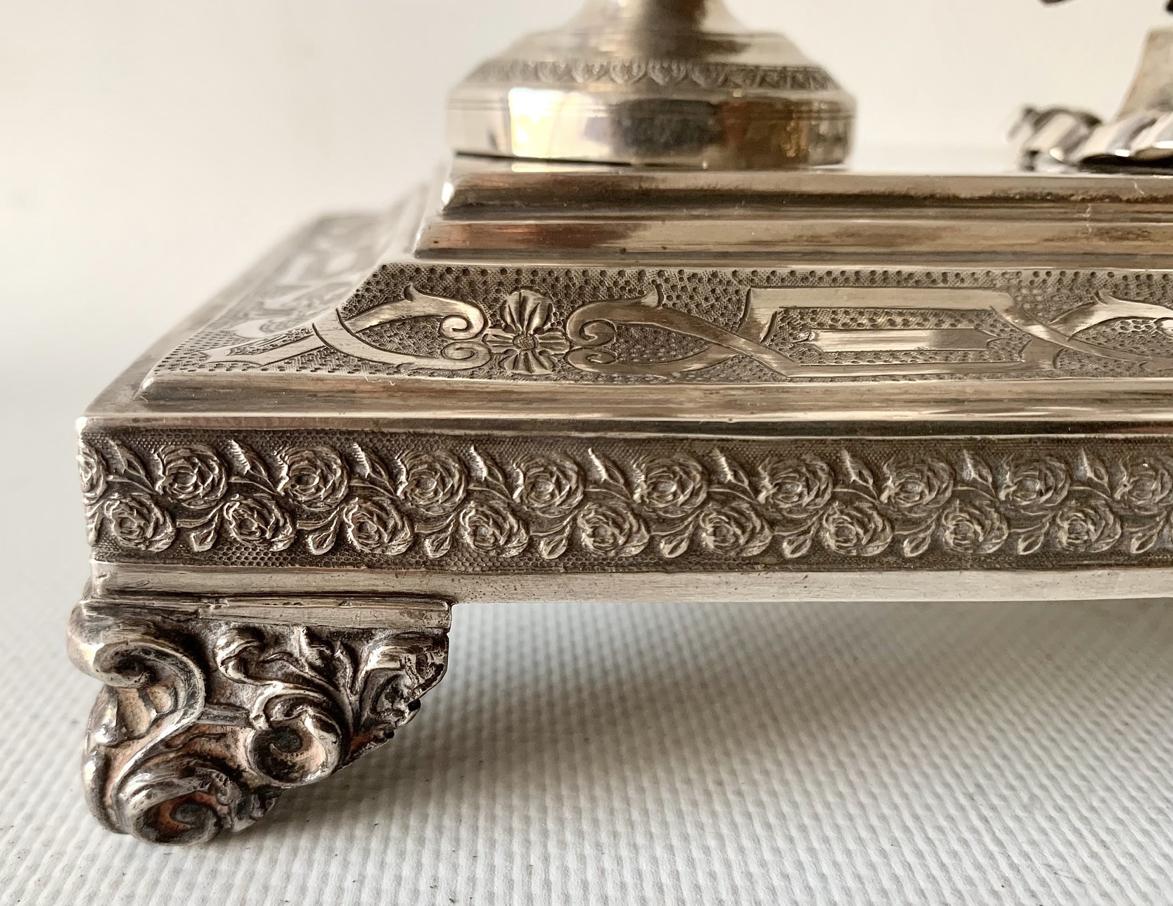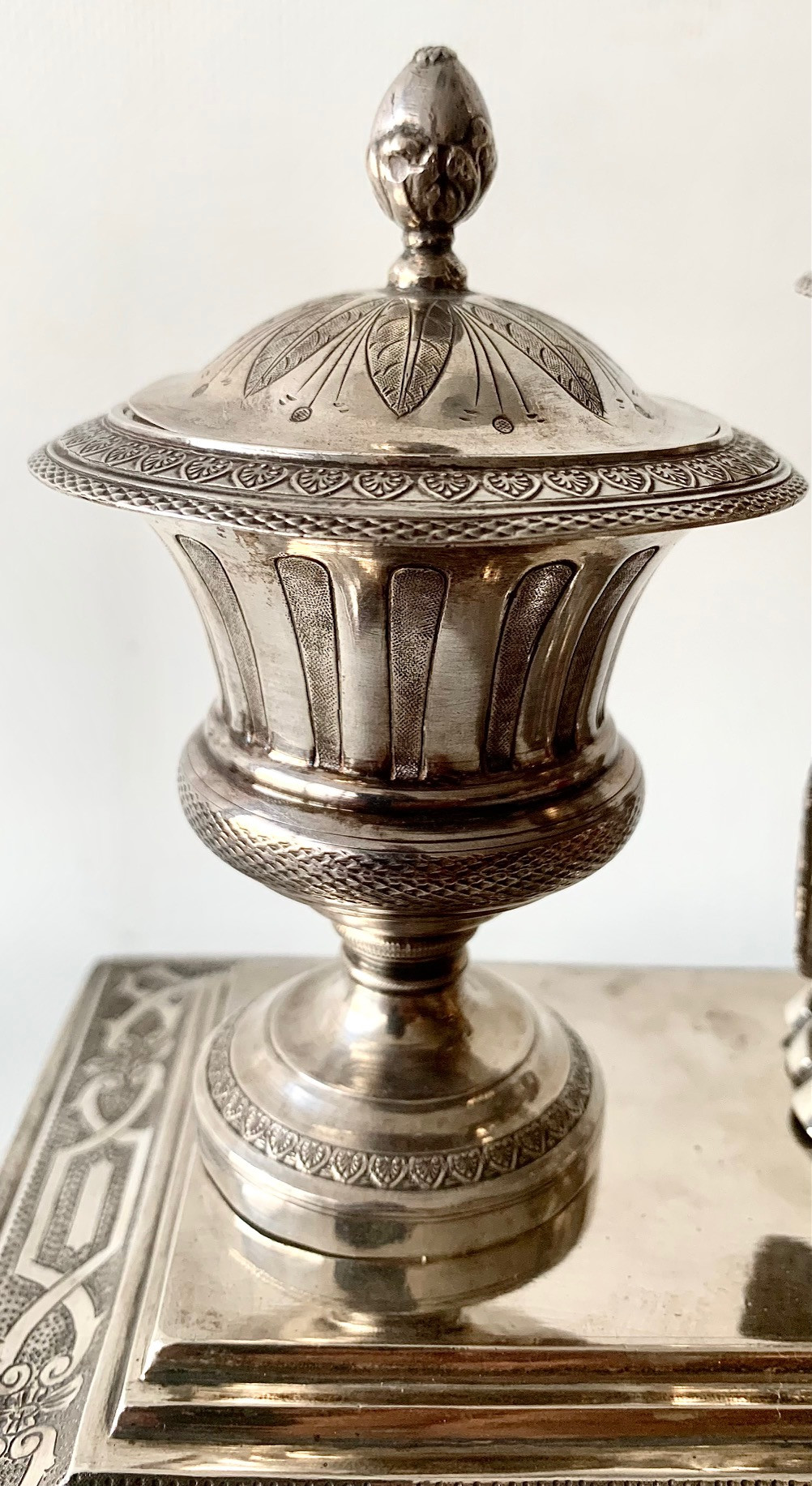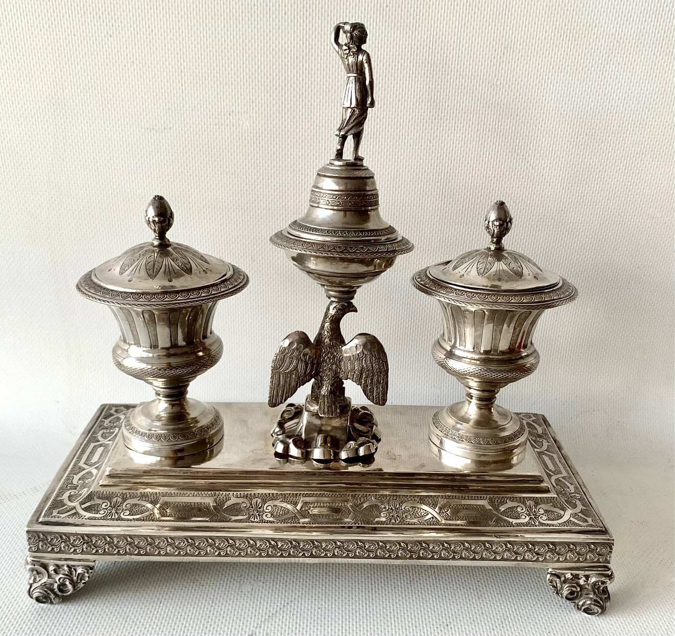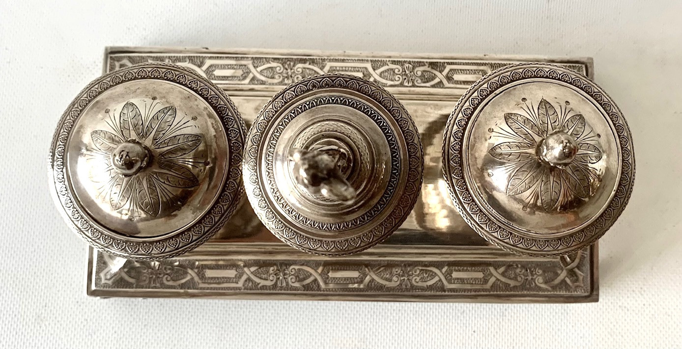 Escribanía o tintero de plata, periodo imperio (1830-40), probablemente manufactura Austria.