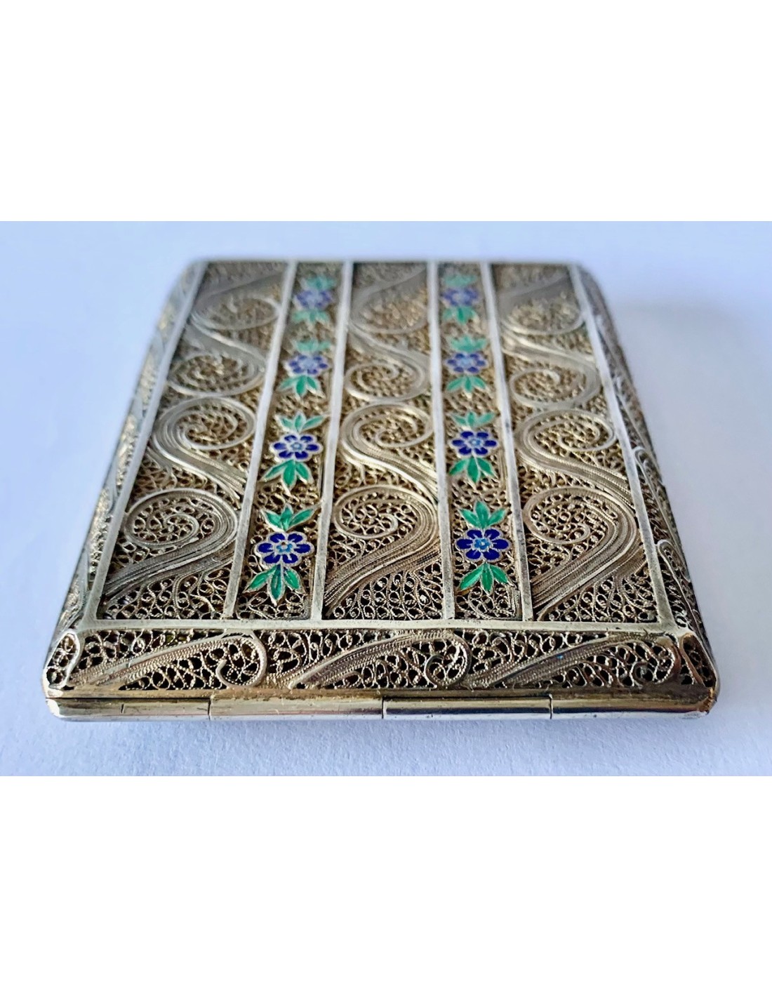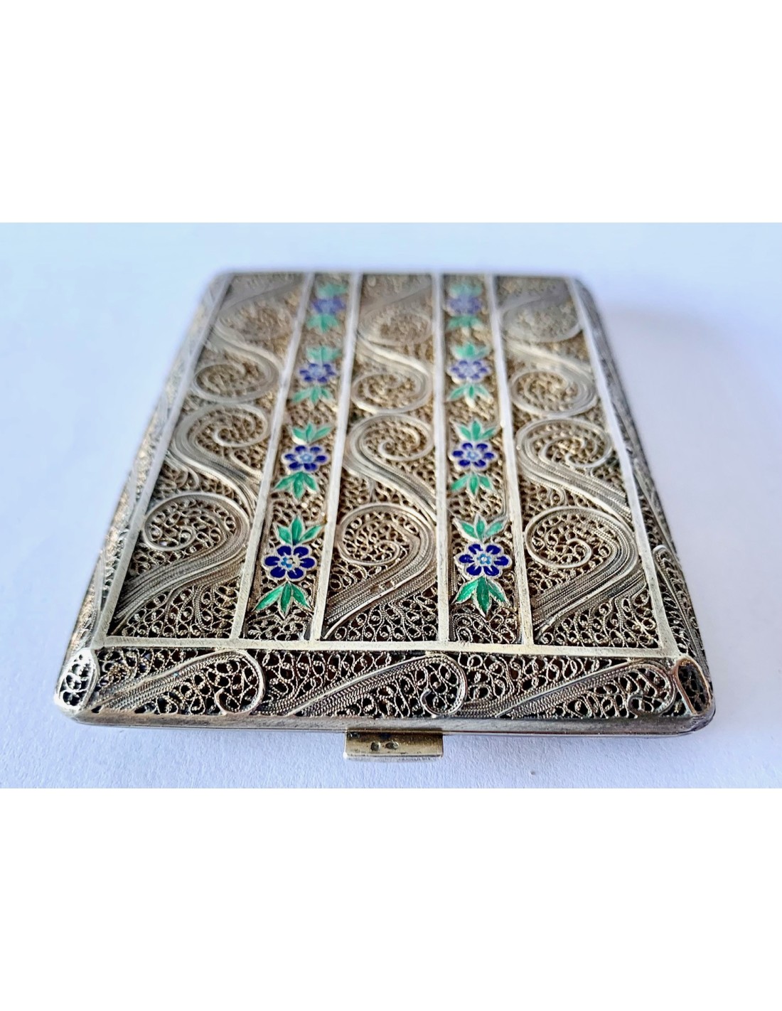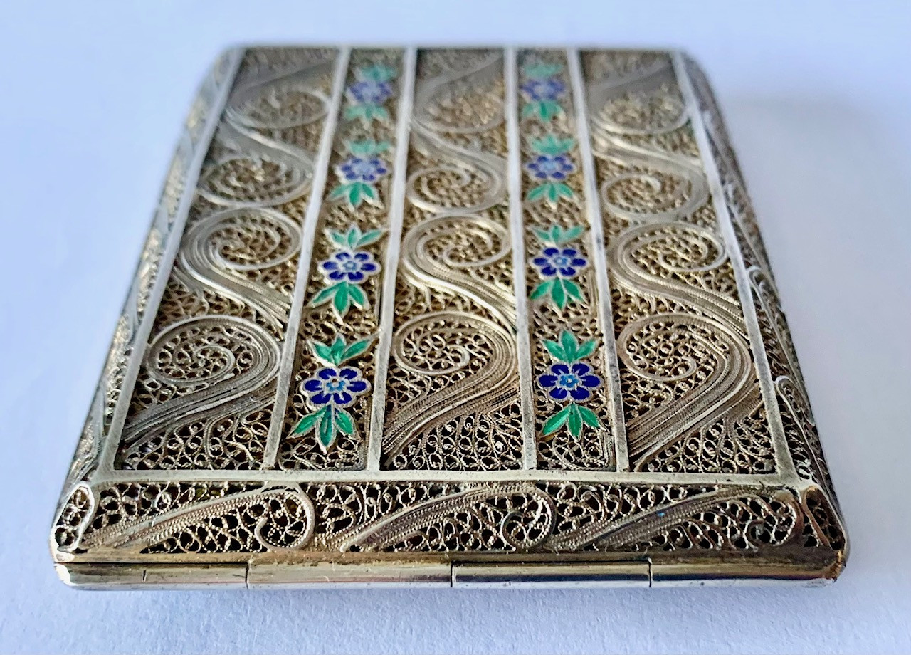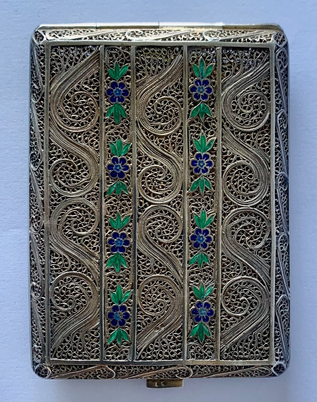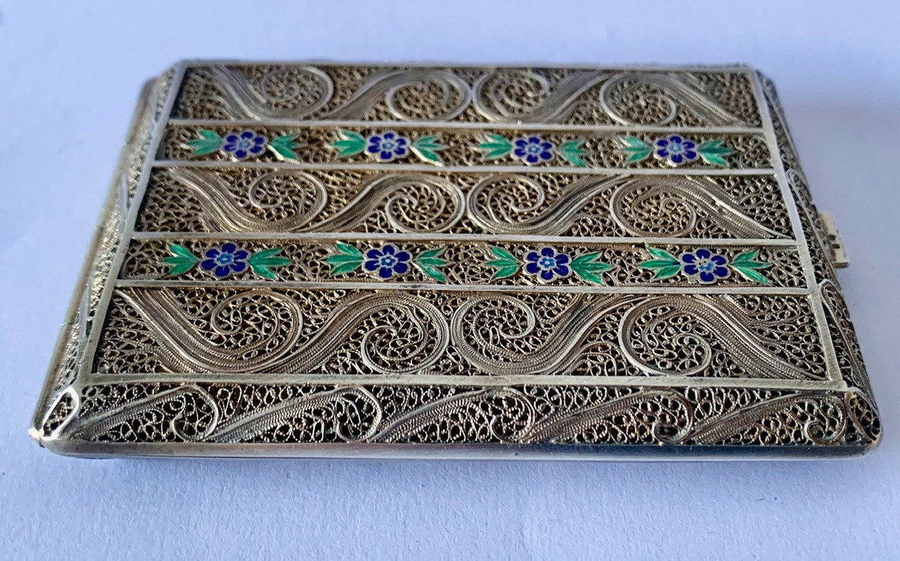 Pitillera en filigrana de plata y esmaltada. Portugal, principios del Siglo XX.