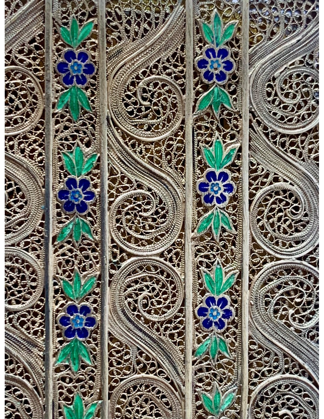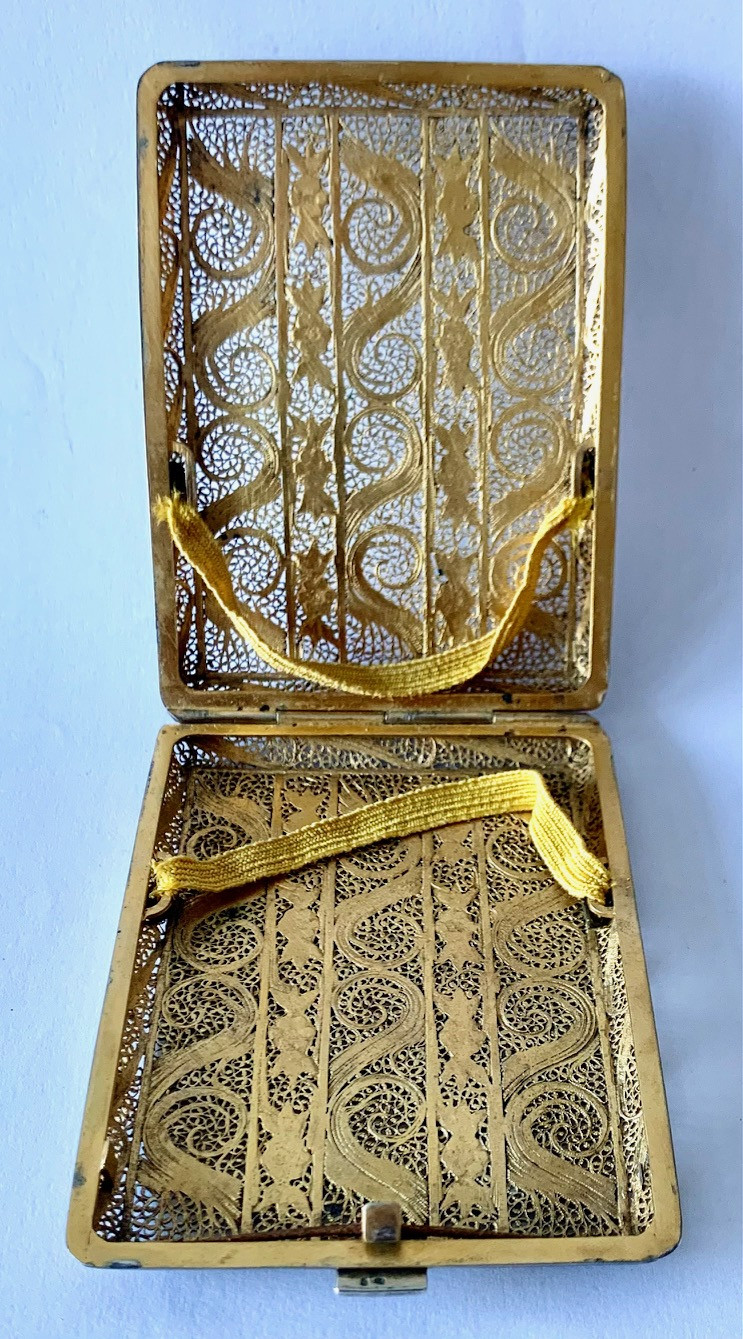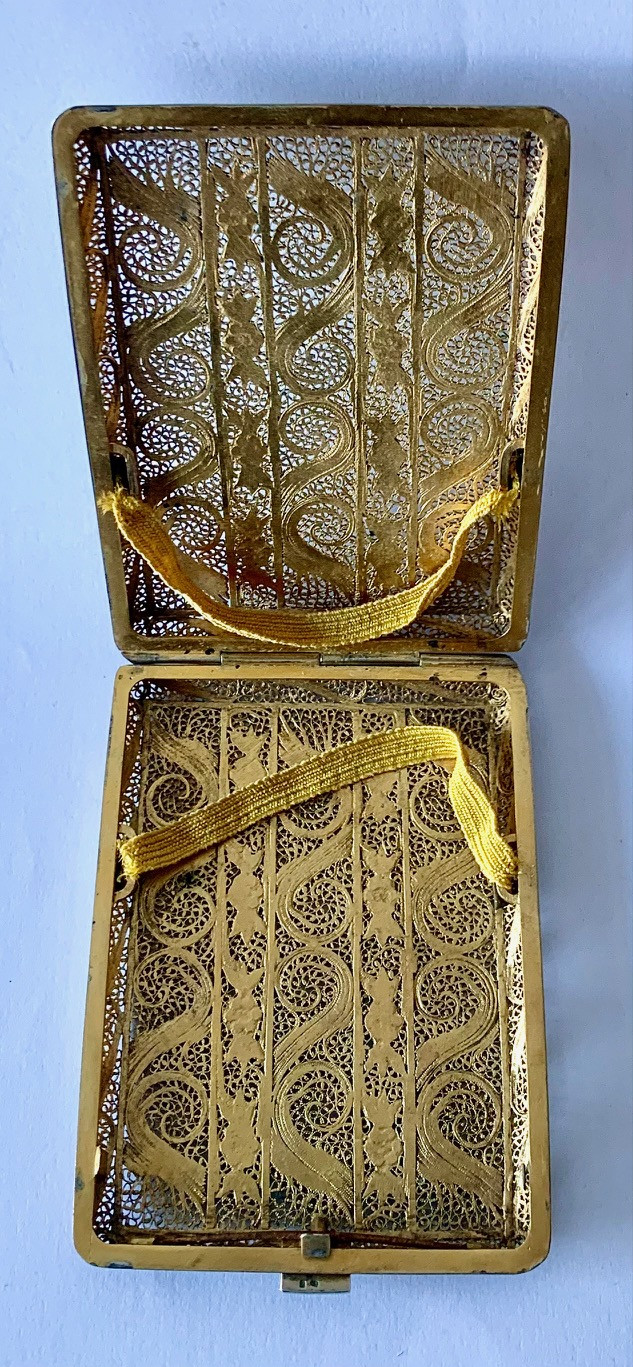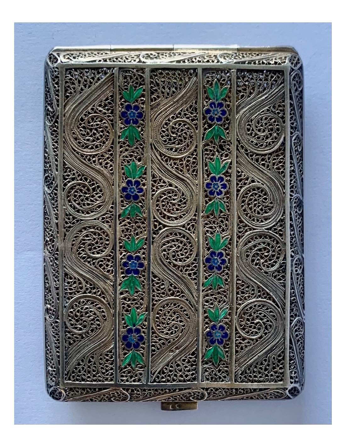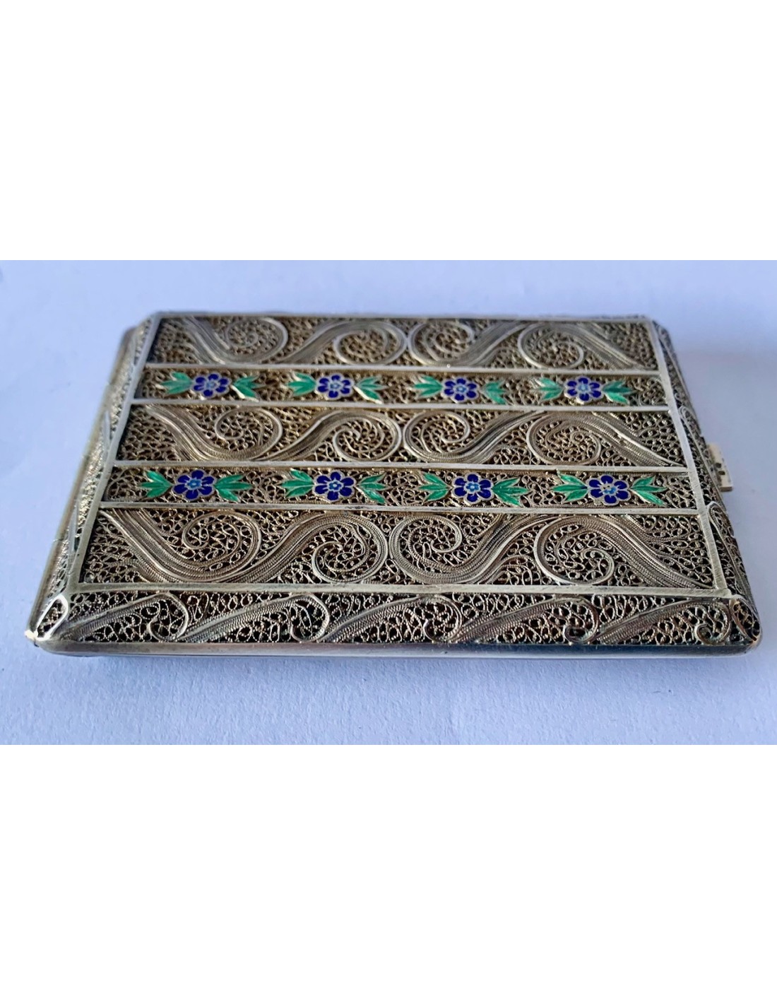 Pitillera en filigrana de plata y esmaltada. Portugal, principios del Siglo XX.
