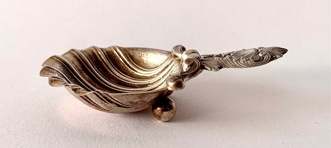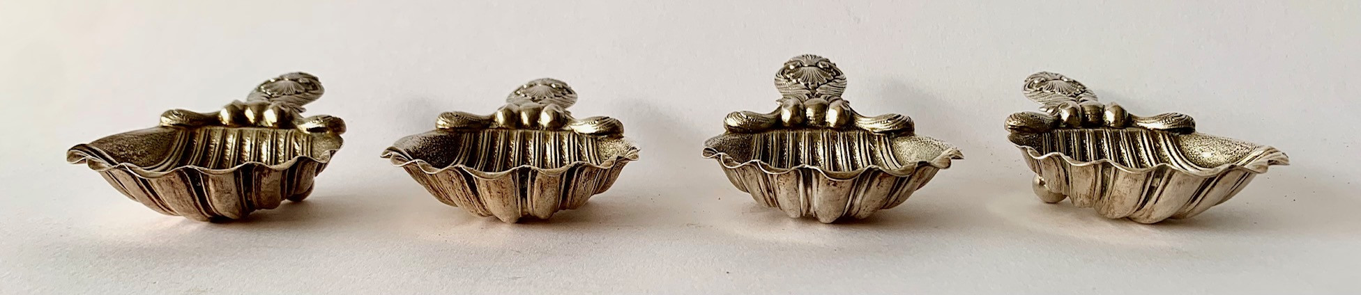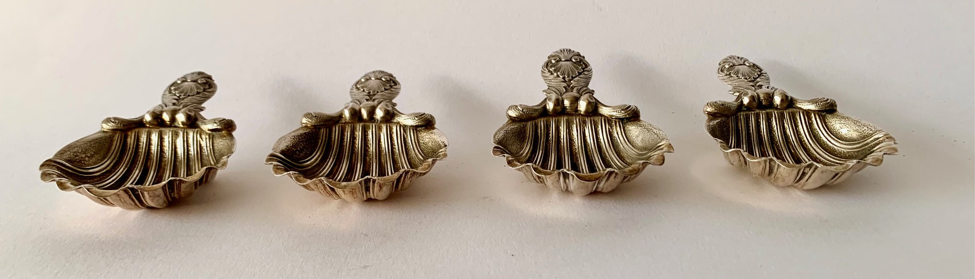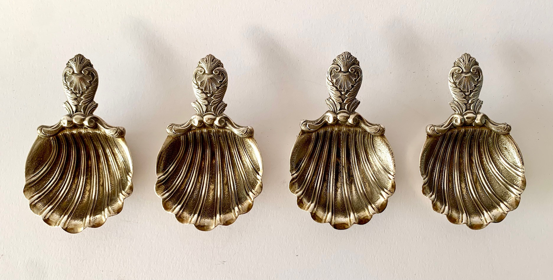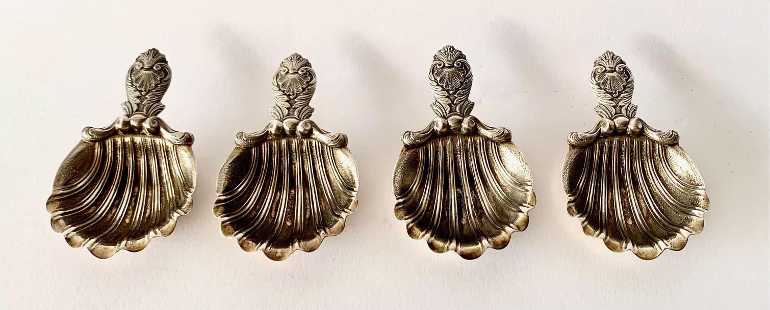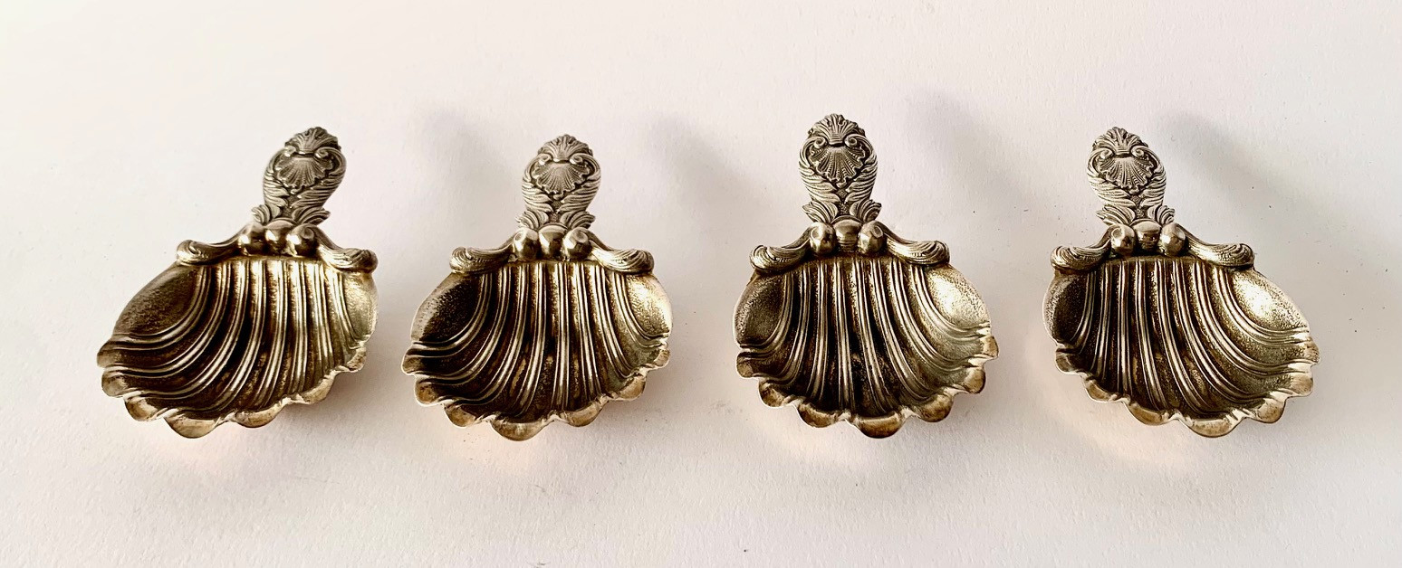 Cuatro cucharas de plata de ley, para servir marisco. Canadá siglo XVIII