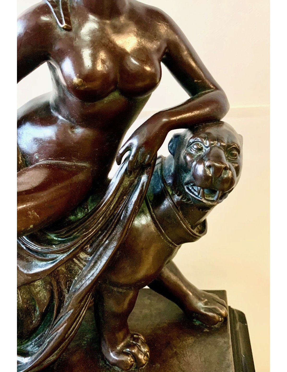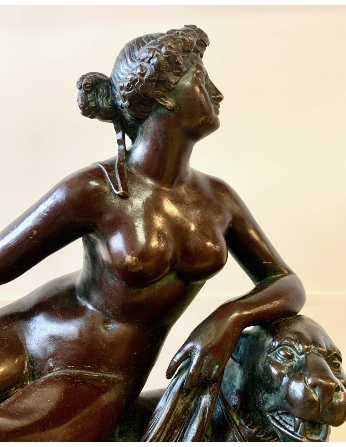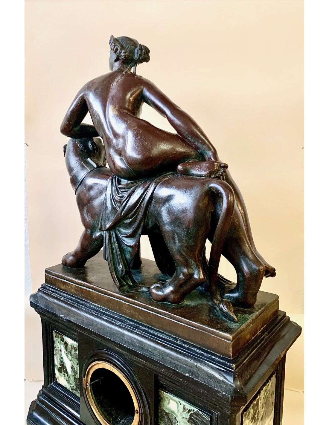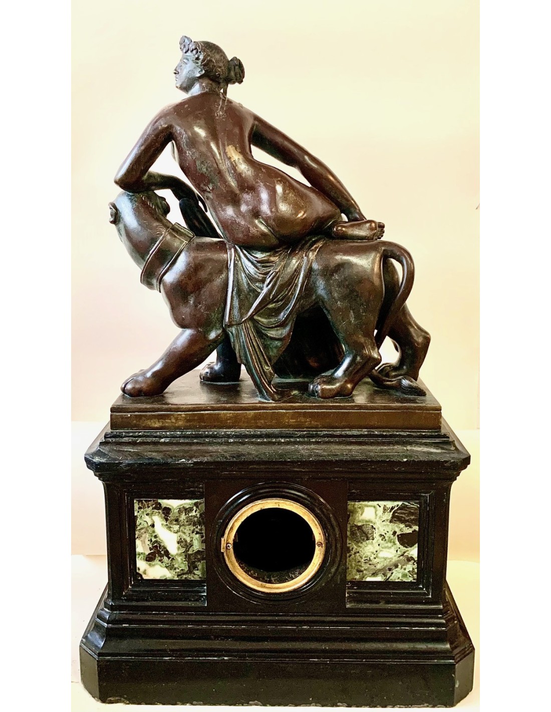 Reloj de sobremesa, escultura de bronce “Ariadna sobre la pantera”, firmada Jules Graux Marly. Segunda mitad del Siglo XIX.