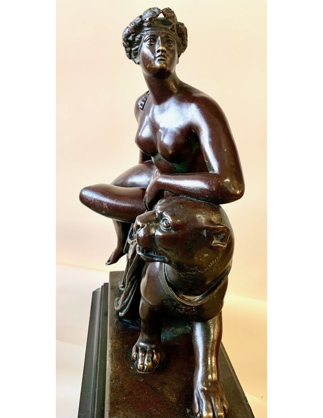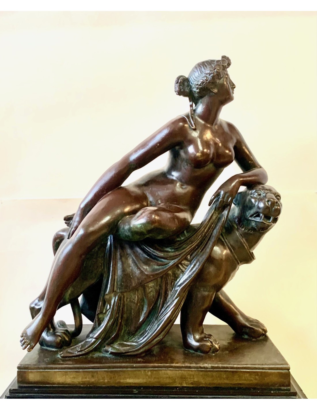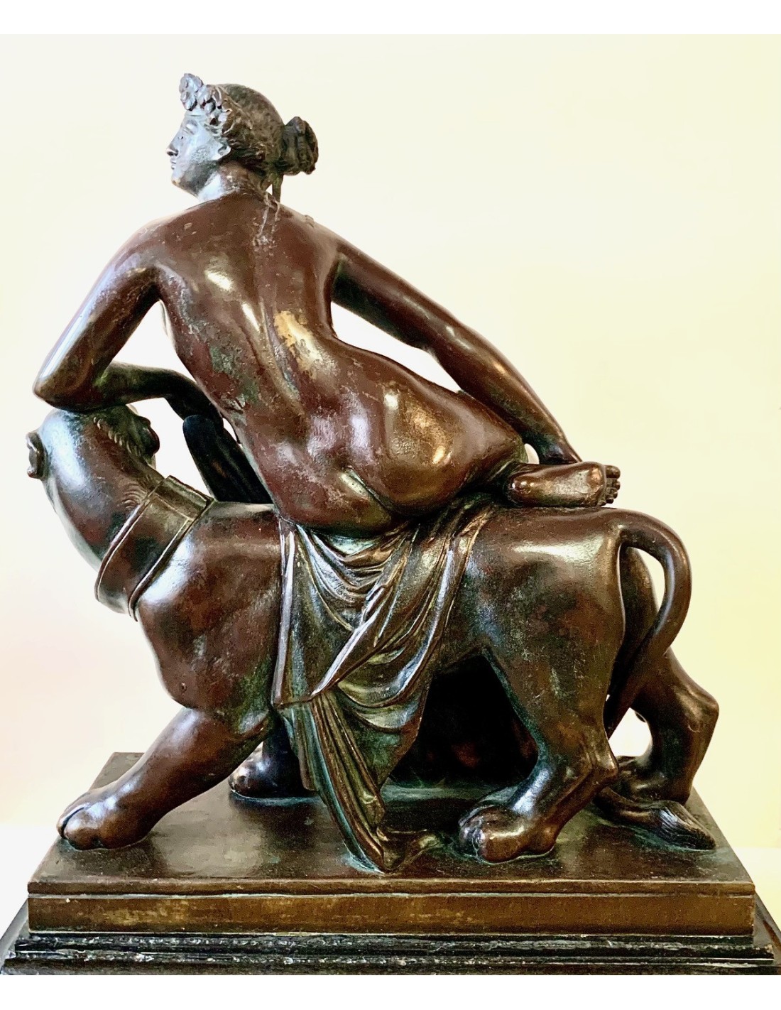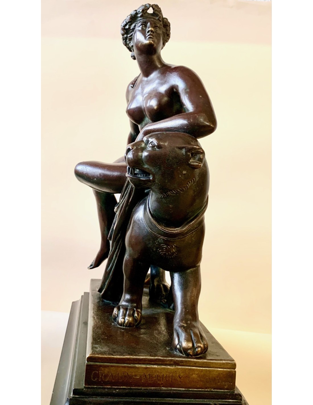 Reloj de sobremesa, escultura de bronce “Ariadna sobre la pantera”, firmada Jules Graux Marly. Segunda mitad del Siglo XIX.