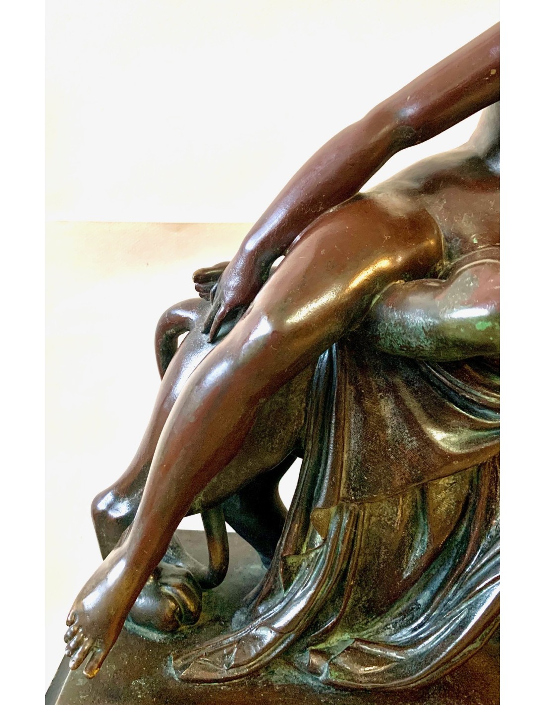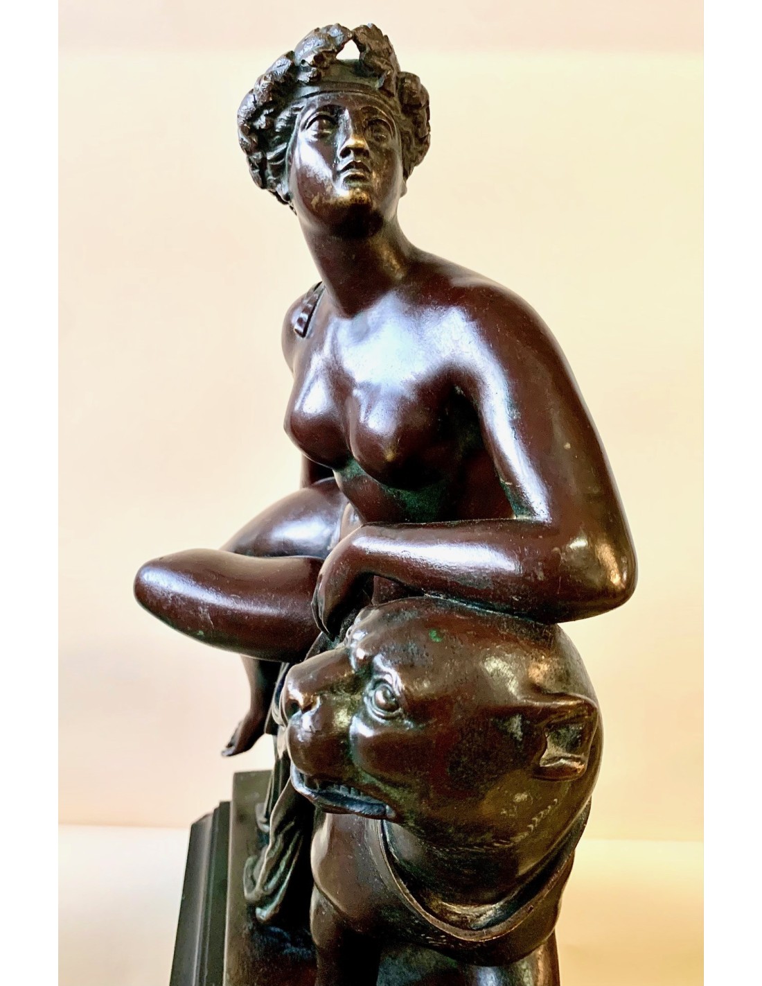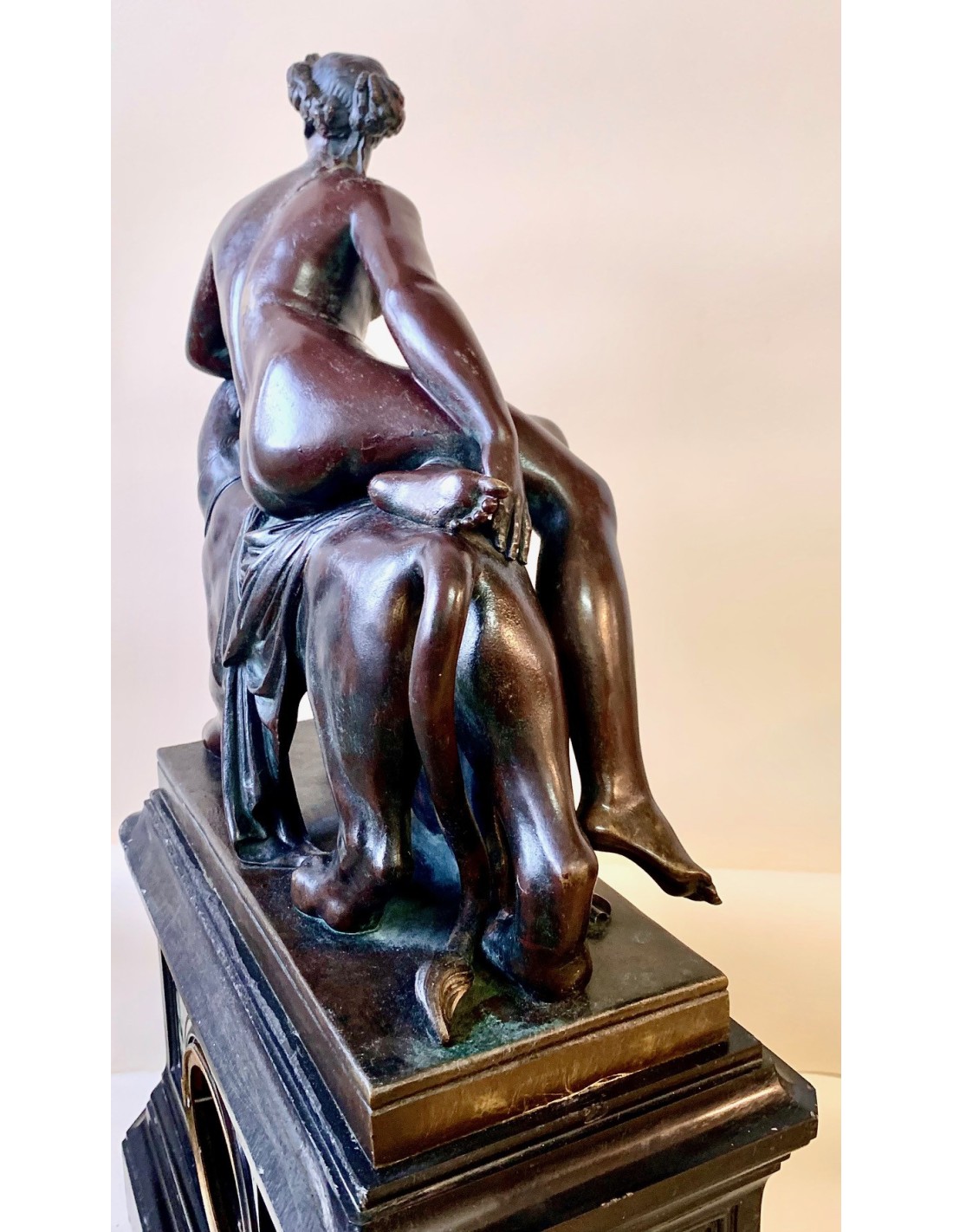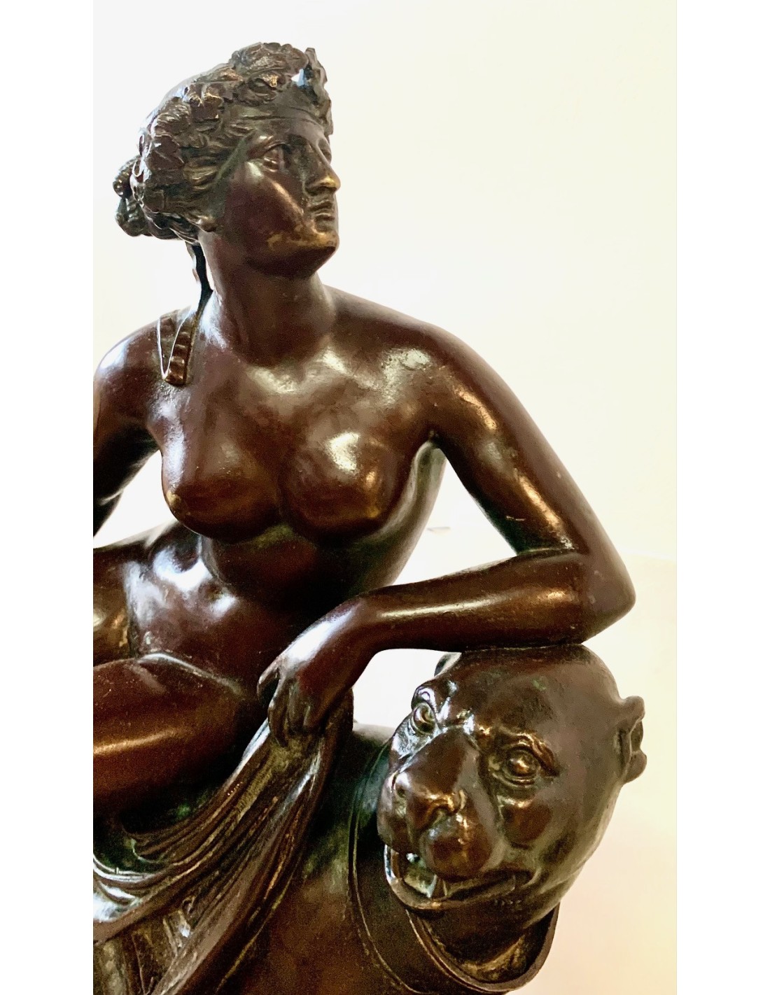 Reloj de sobremesa, escultura de bronce “Ariadna sobre la pantera”, firmada Jules Graux Marly. Segunda mitad del Siglo XIX.