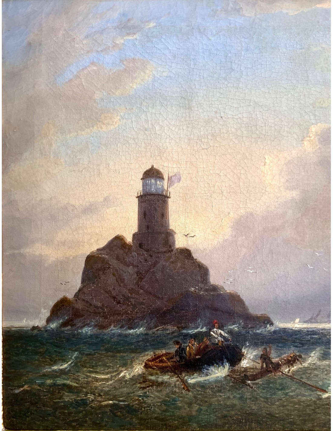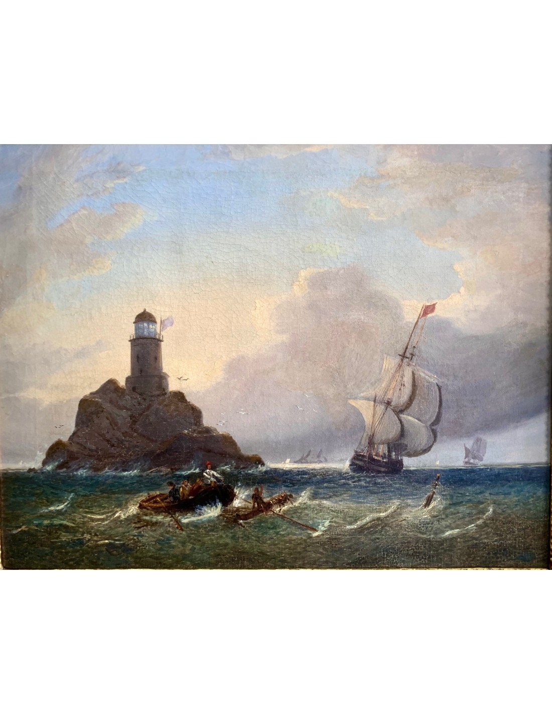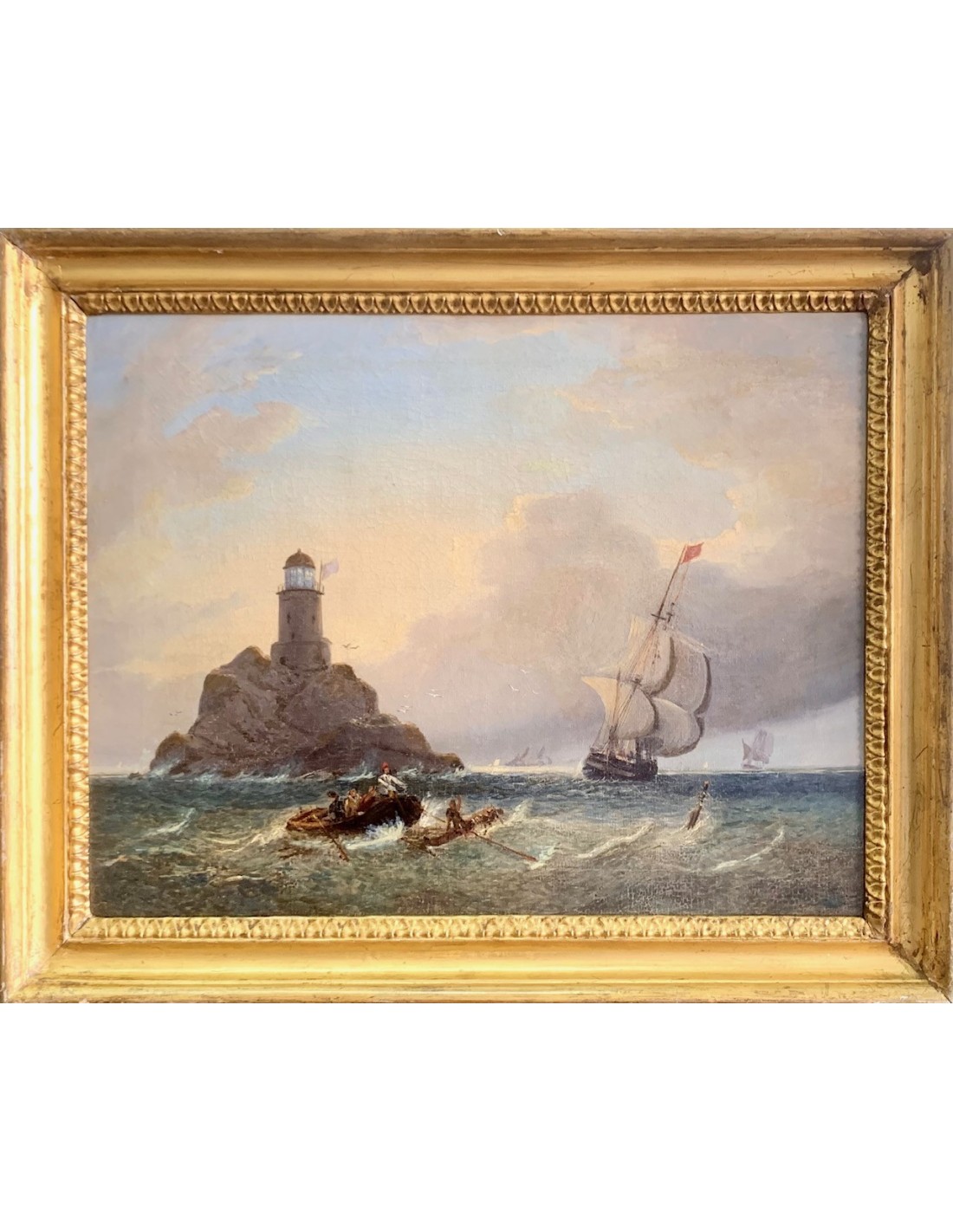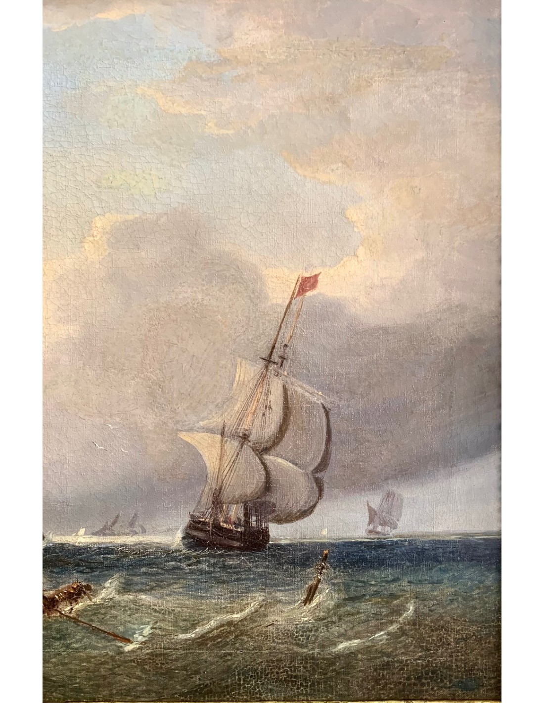 Marina, olio su tela. Scuola francese della metà del XIX secolo.
